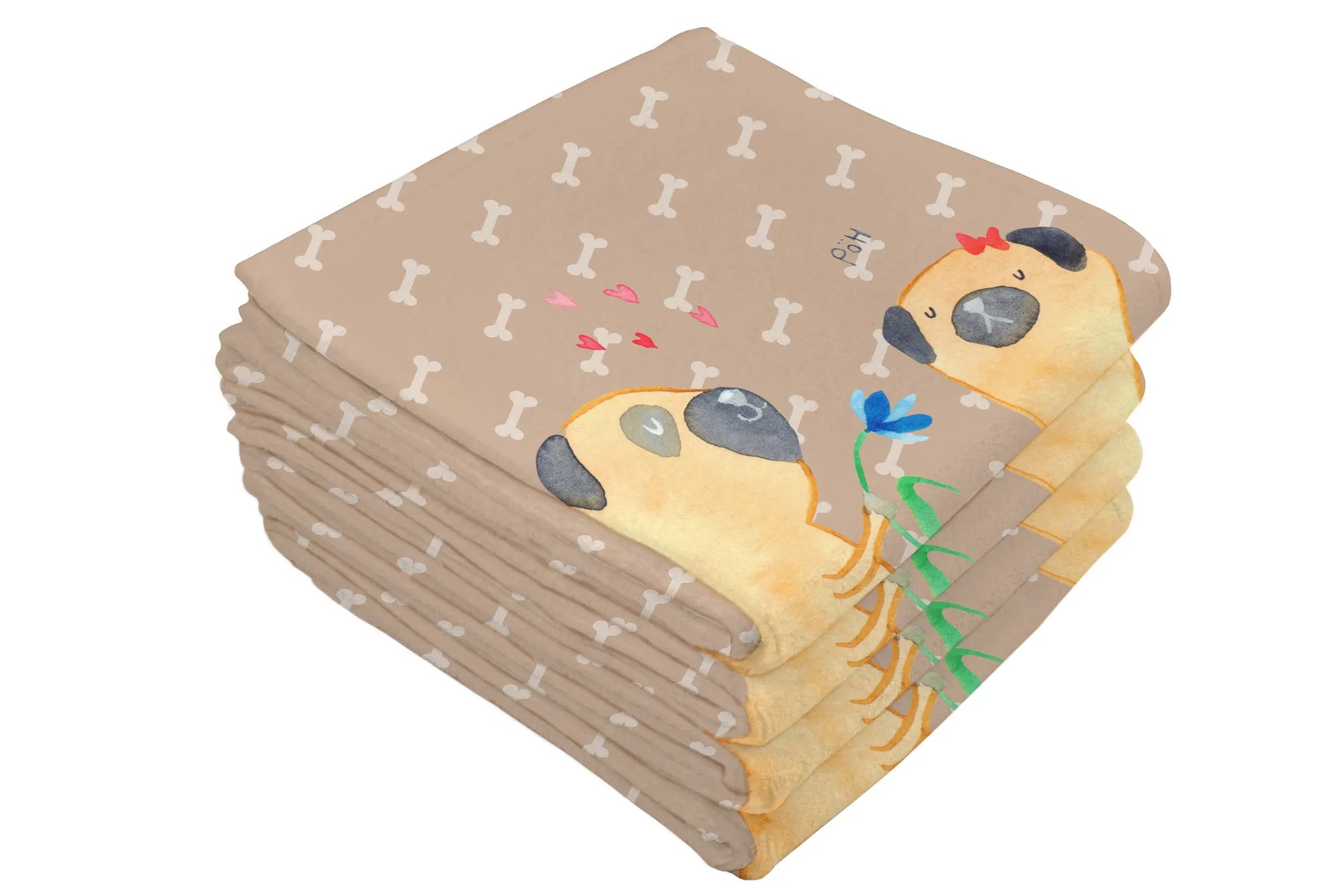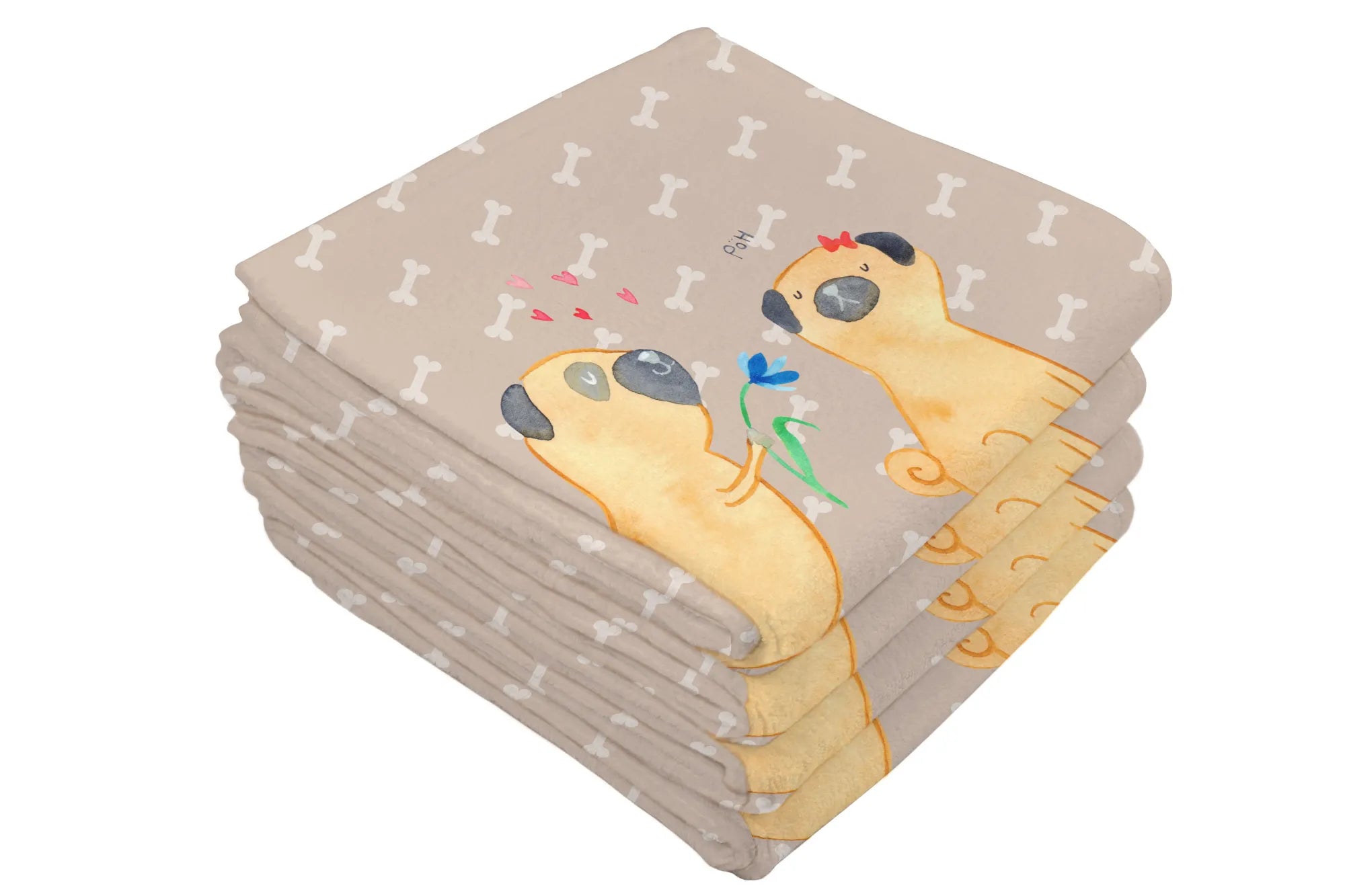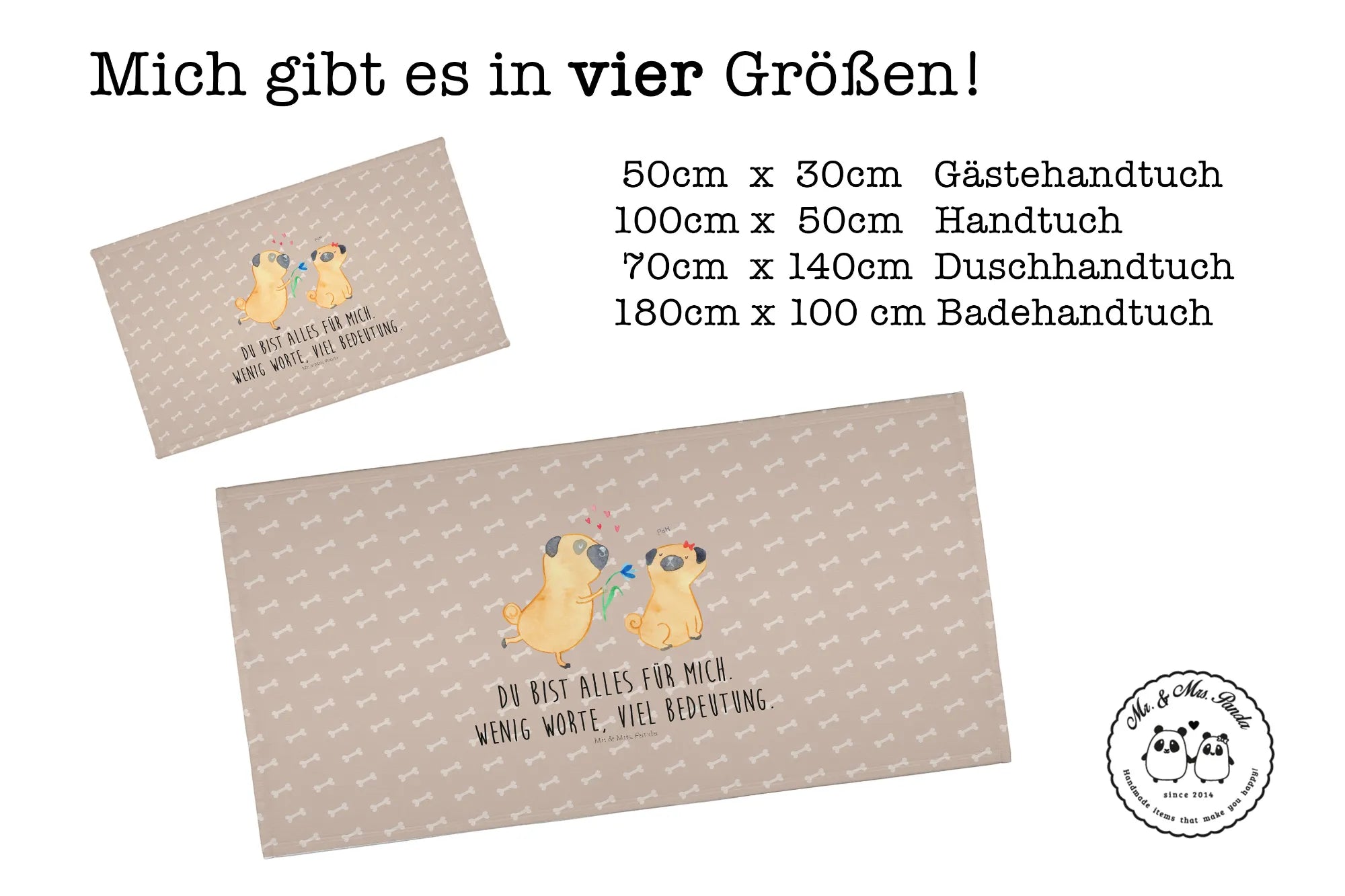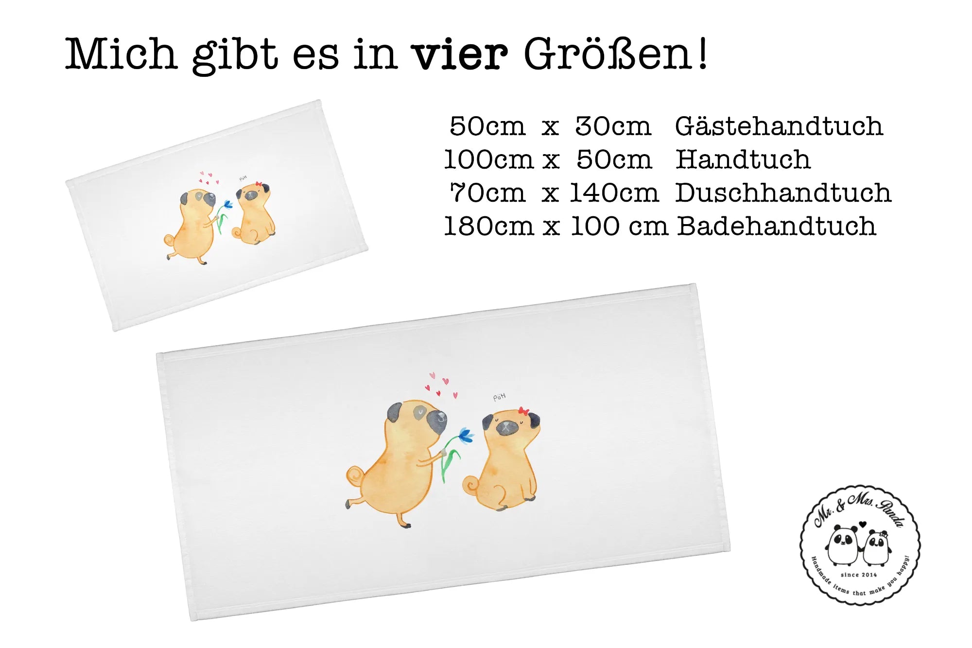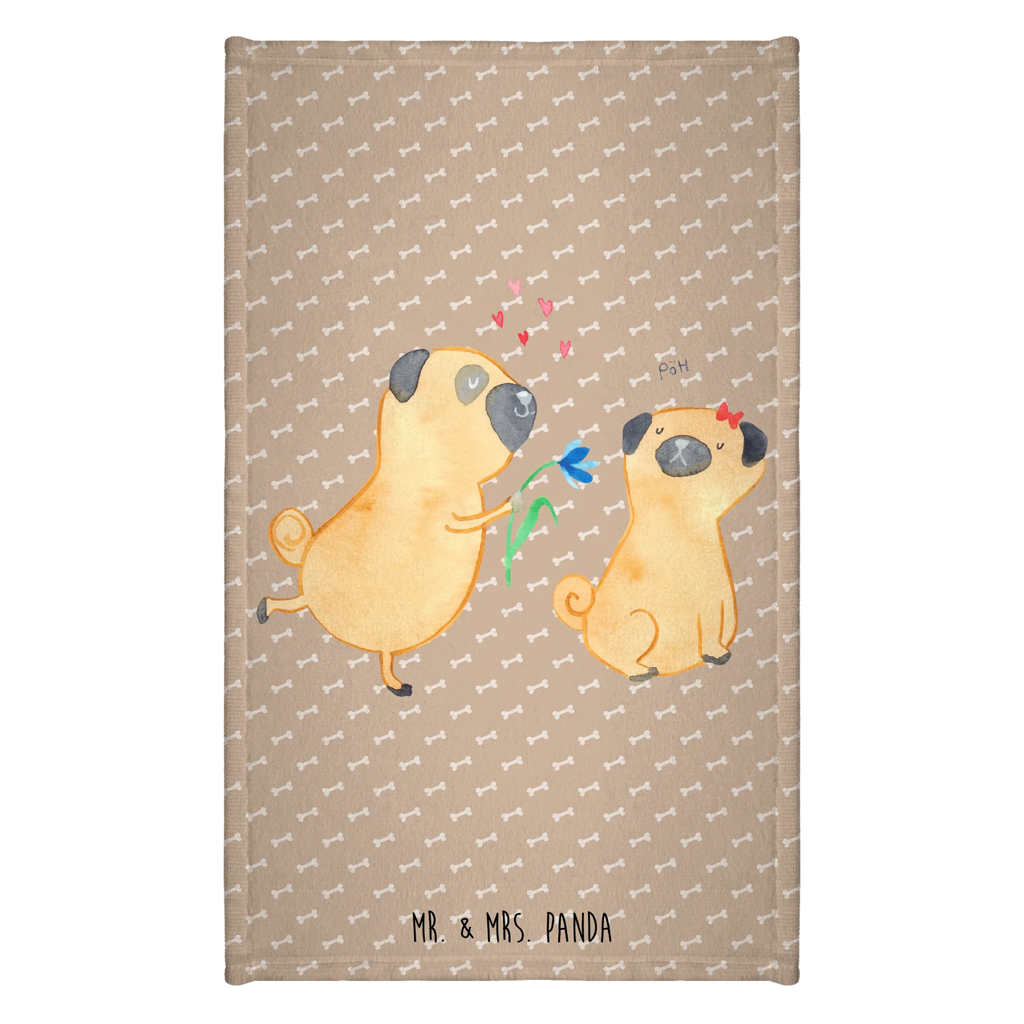 Hand towel pug In love - 50 x 100 Towel - with a saying - White