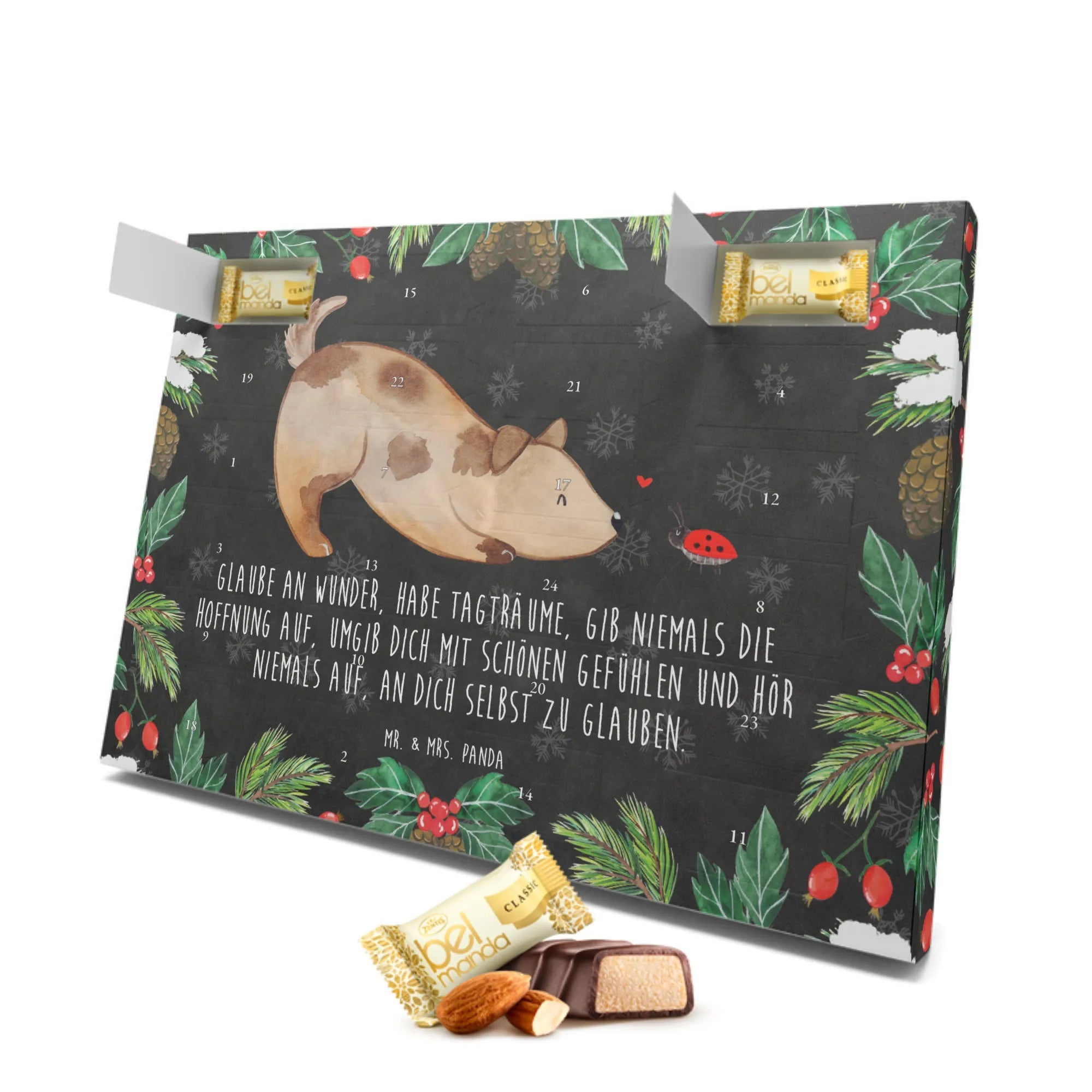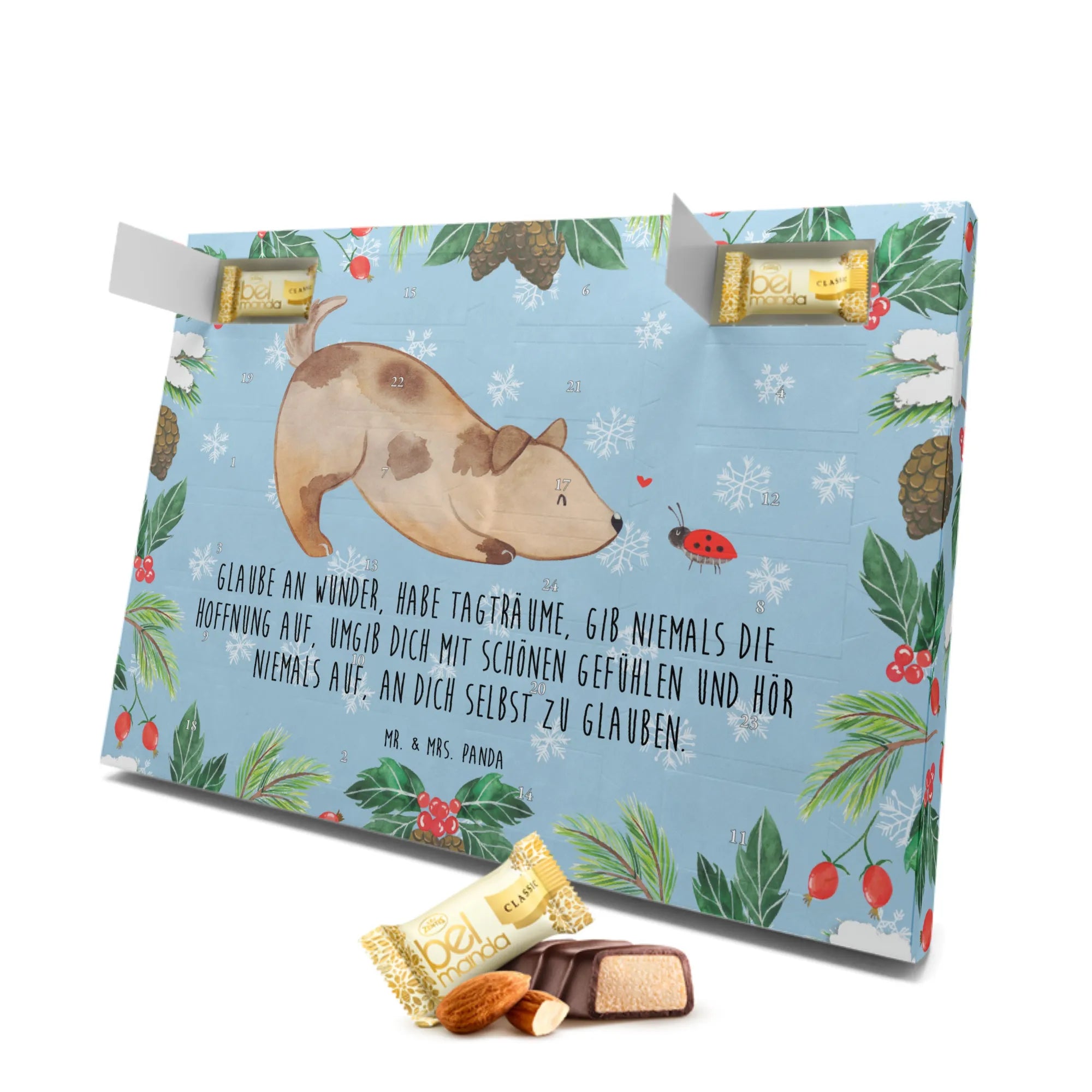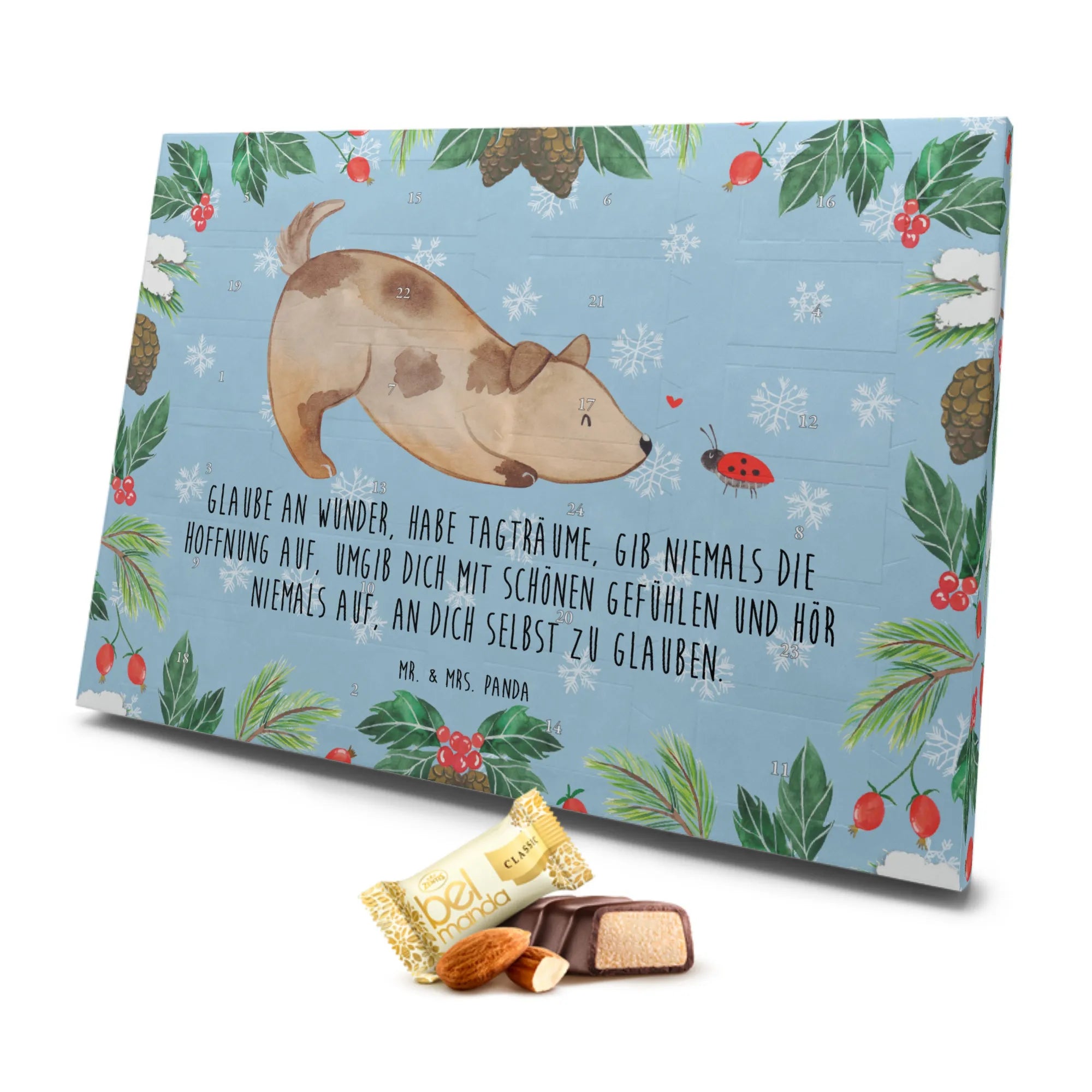 Der Marzipan Adventskalender mit dem süßen Motiv "Hund Marienkäfer" aus der Hunde Kollektion von Mr. & Mrs. Panda ist das perfekte Geschenk für alle Tierliebhaber und Hundebesitzer. Er versüßt dir die Vorweihnachtszeit mit 24 köstlichen, einzeln verpackten Edelmarzipan Pralinés, die in einer wunderschönen Verpackung aus hochwertigem 300 Gramm Papier präsentiert werden. Auf der Vorderseite prangt ein niedlicher Hund, der begeistert vor einem kleinen Marienkäfer sitzt und dein Herz im Nu erobert. Diese liebevolle Gestaltung ist nicht nur eine Augenweide, sondern sendet auch eine positive Botschaft: "Glaube an Wunder, habe Tagträume, gib niemals die Hoffnung auf, umgib dich mit schönen Gefühlen und hör niemals auf, an dich selbst zu glauben."