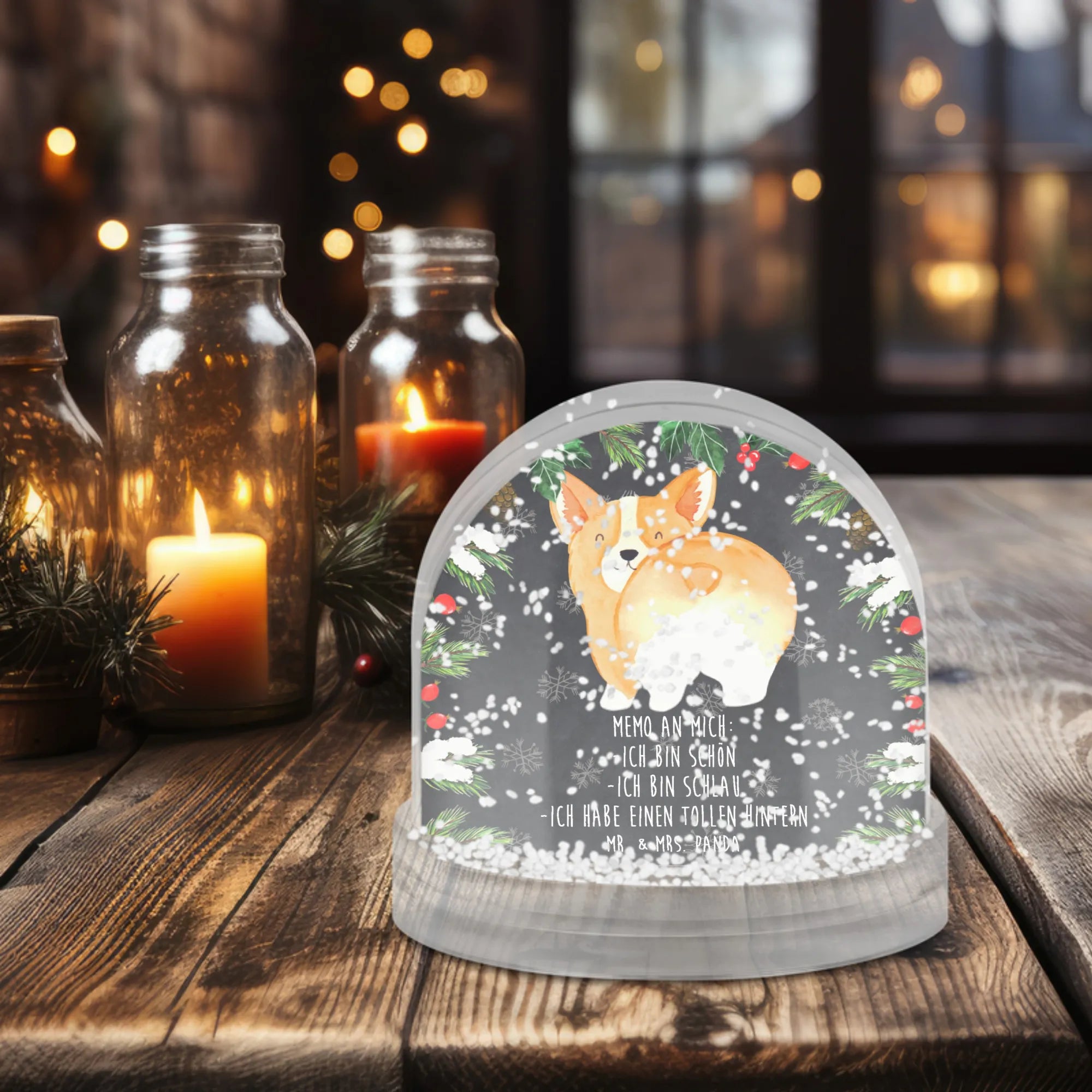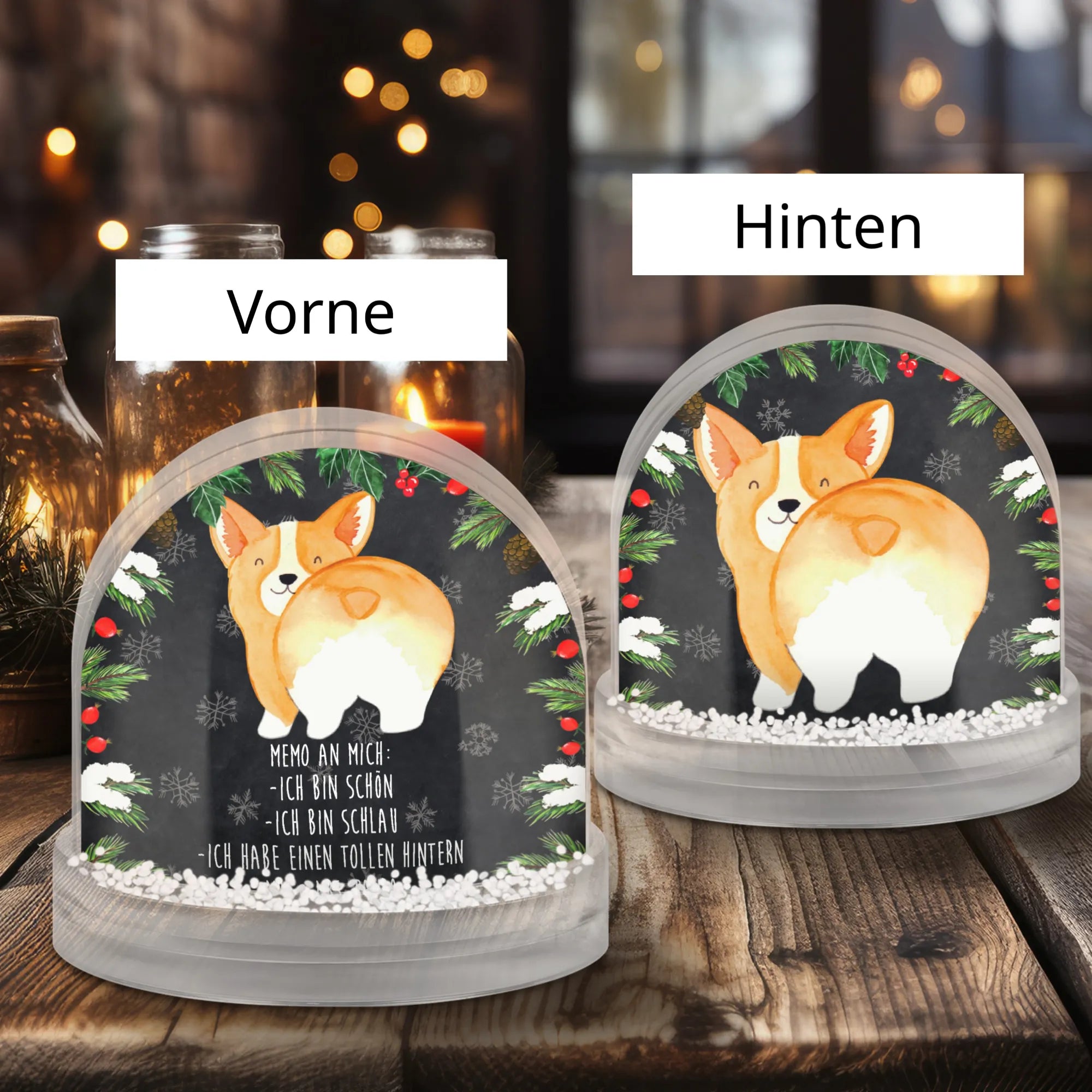 Snow globe corgi buttocks - natural paper