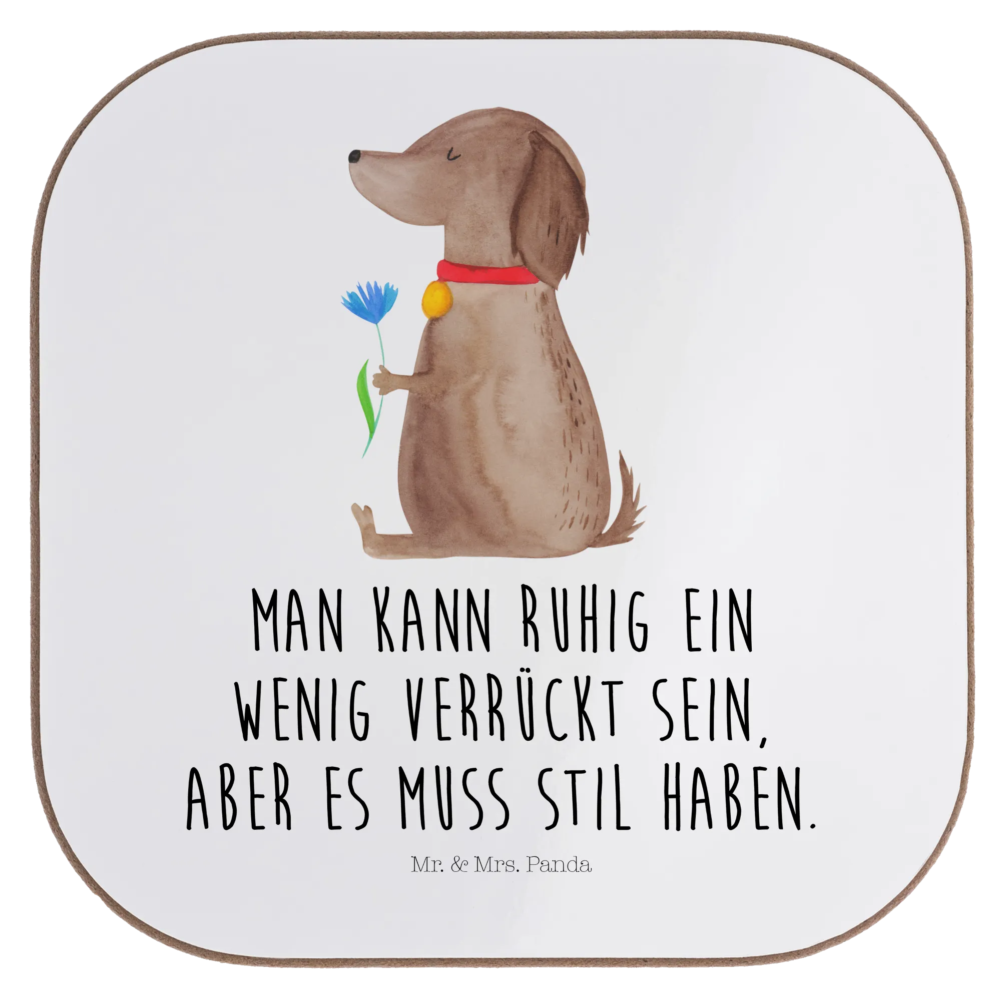 Introducing the delightful Square Coaster featuring an adorable Dog with a flower from the charming Dog Collection by Mr. & Mrs. Panda! If you're searching for the perfect gift for dog lovers, look no further! This exquisite coaster is designed not just for practicality but also to bring joy and a splash of personality into any home.