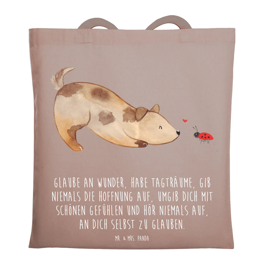 Tote bag Dog ladybug - with saying - Pastel Brown