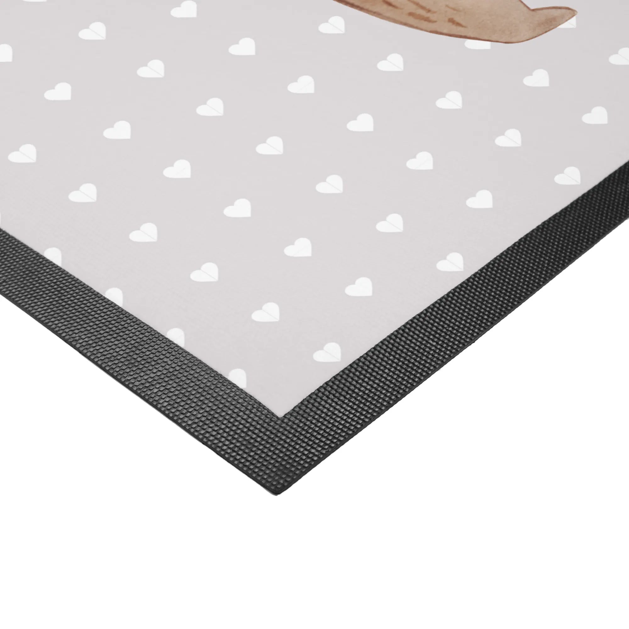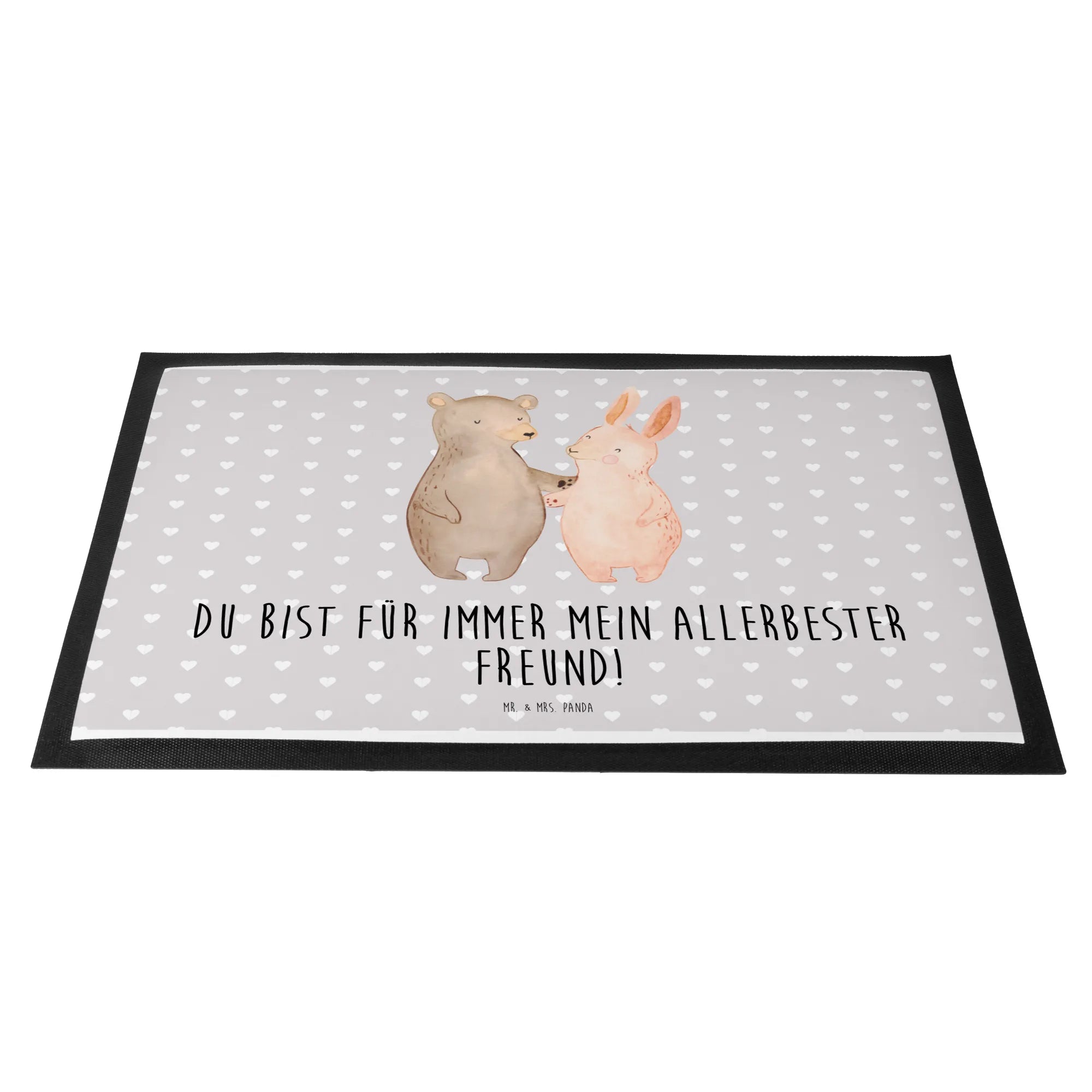 Doormat bear and rabbit Embrace - 60 x 90 cm - with saying - Grey Pastel