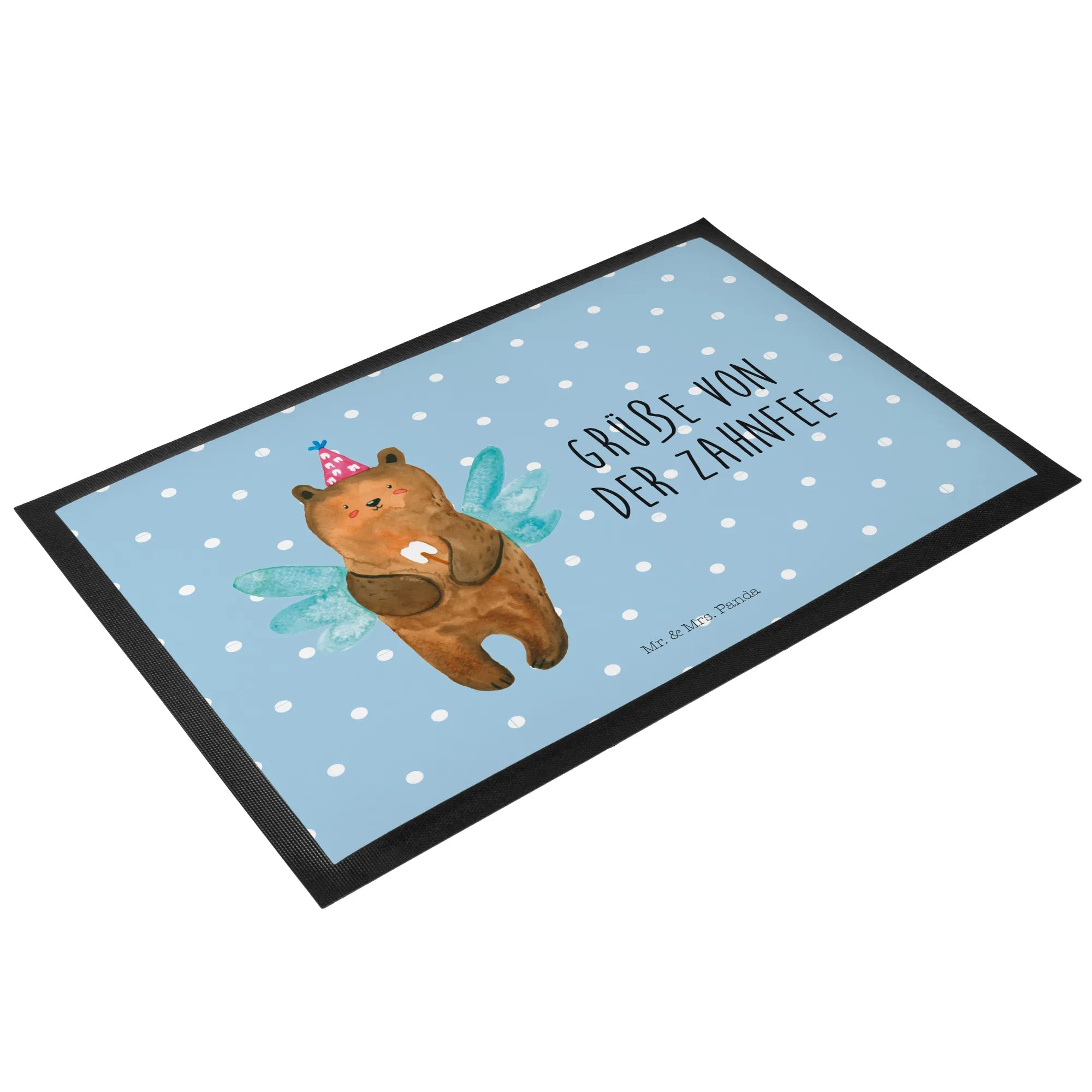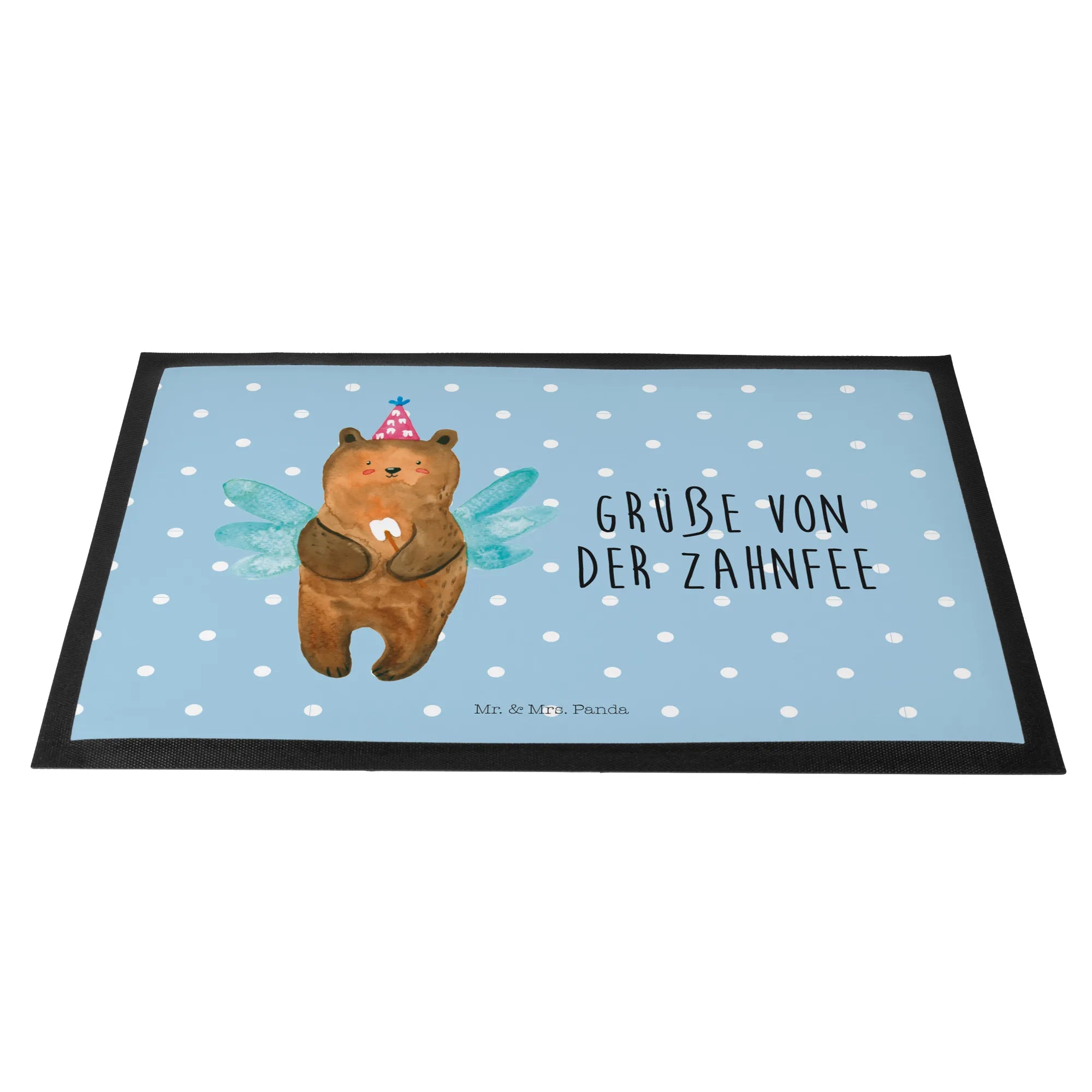 Doormat bear tooth fairy - 60 x 90 cm - with a saying - Pastel Blue