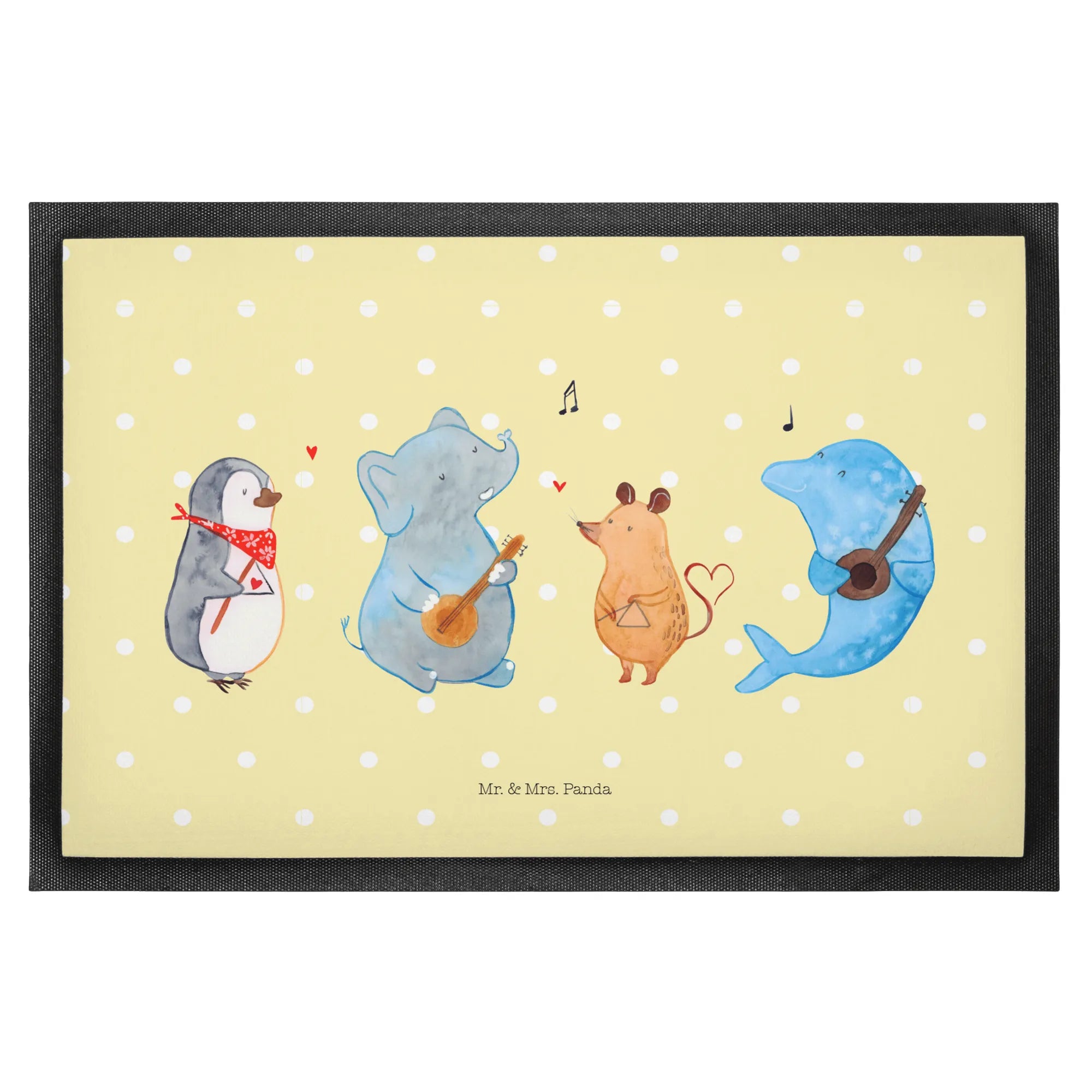 Introducing the delightful Mr. & Mrs. Panda Doormat featuring the charming "Big Band" design from the enchanting Small World collection! This isn’t just a plain doormat; it’s a warm welcome that sets the tone for your home. Picture this: a whimsical penguin, a cheerful mouse, a playful dolphin, and an adorable elephant, all decked out in their best musical attire, serenading your guests as they arrive. With the cheerful motif and vibrant colors, this doormat is sure to bring smiles and good vibes right at your doorstep.