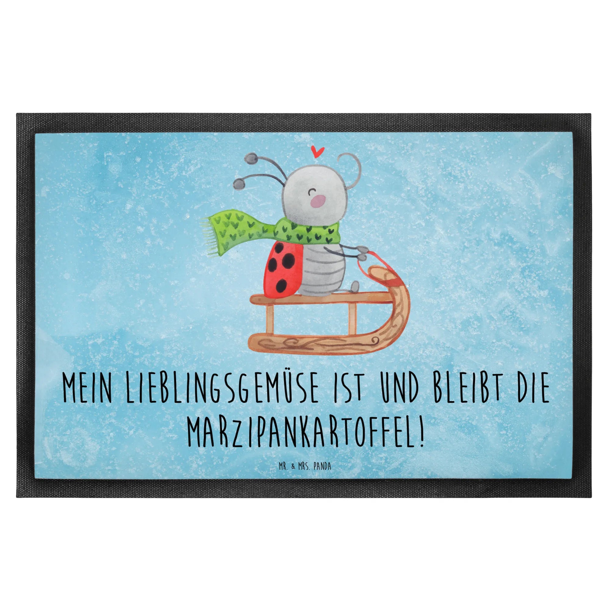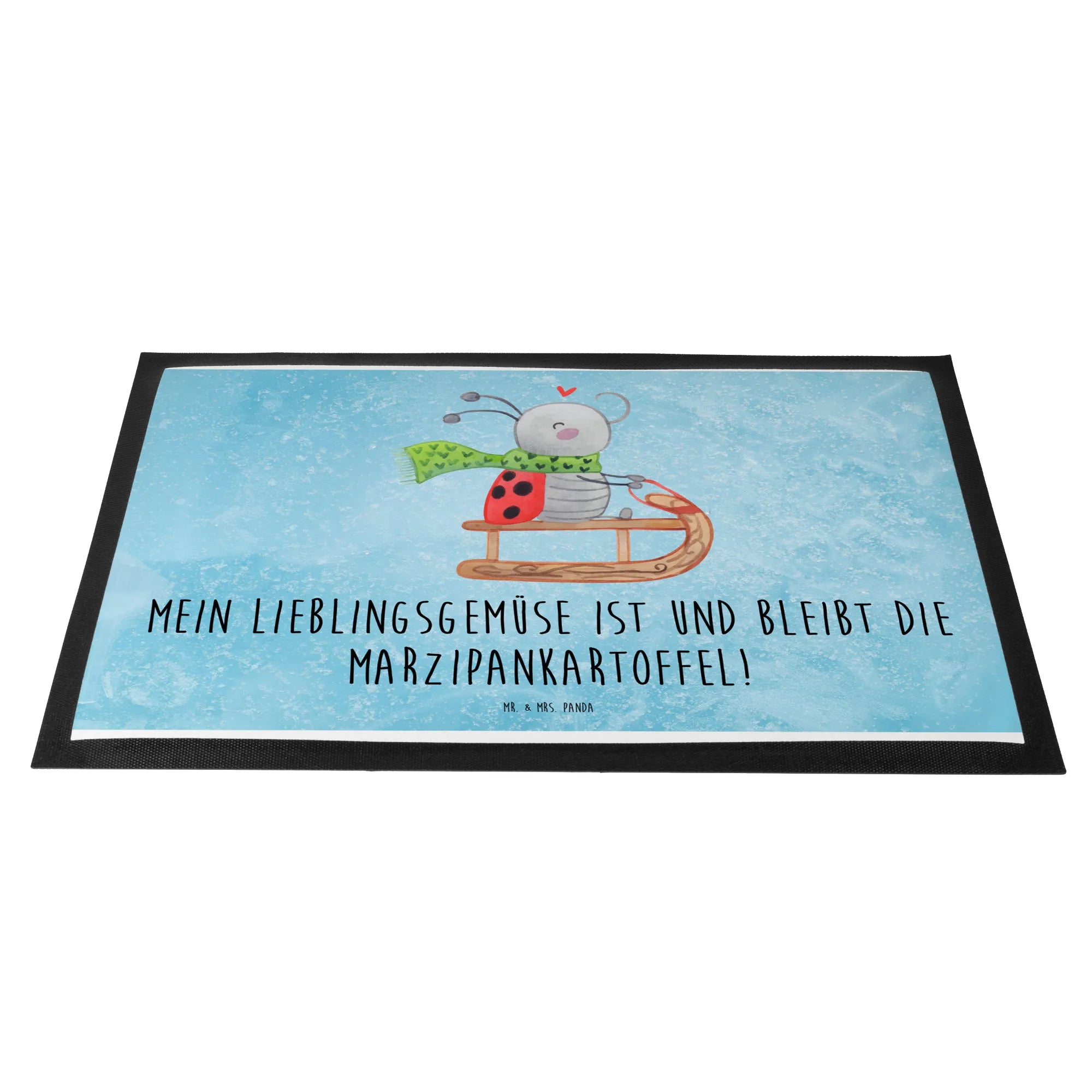 Die Fußmatte 'Smörle Rodeln' von Mr. & Mrs. Panda ist der perfekte Begleiter für die winterliche Zeit! ❄️ Mit einem strahlenden Lächeln und einem grünen Schal steht unser kleiner Marienkäfer bereit, um dich beim Betreten deines Zuhauses willkommen zu heißen.