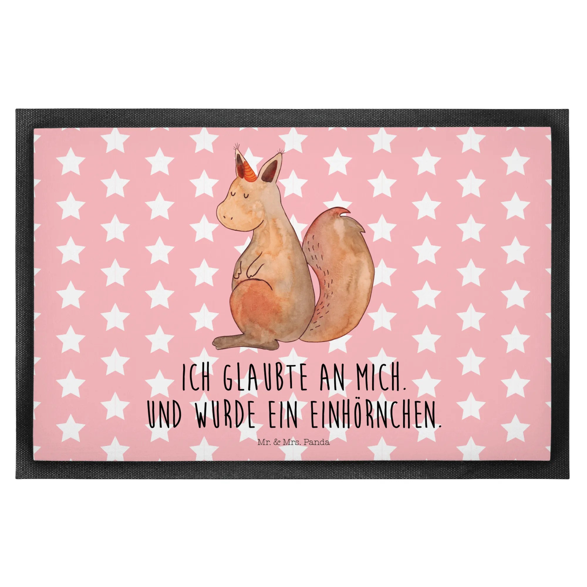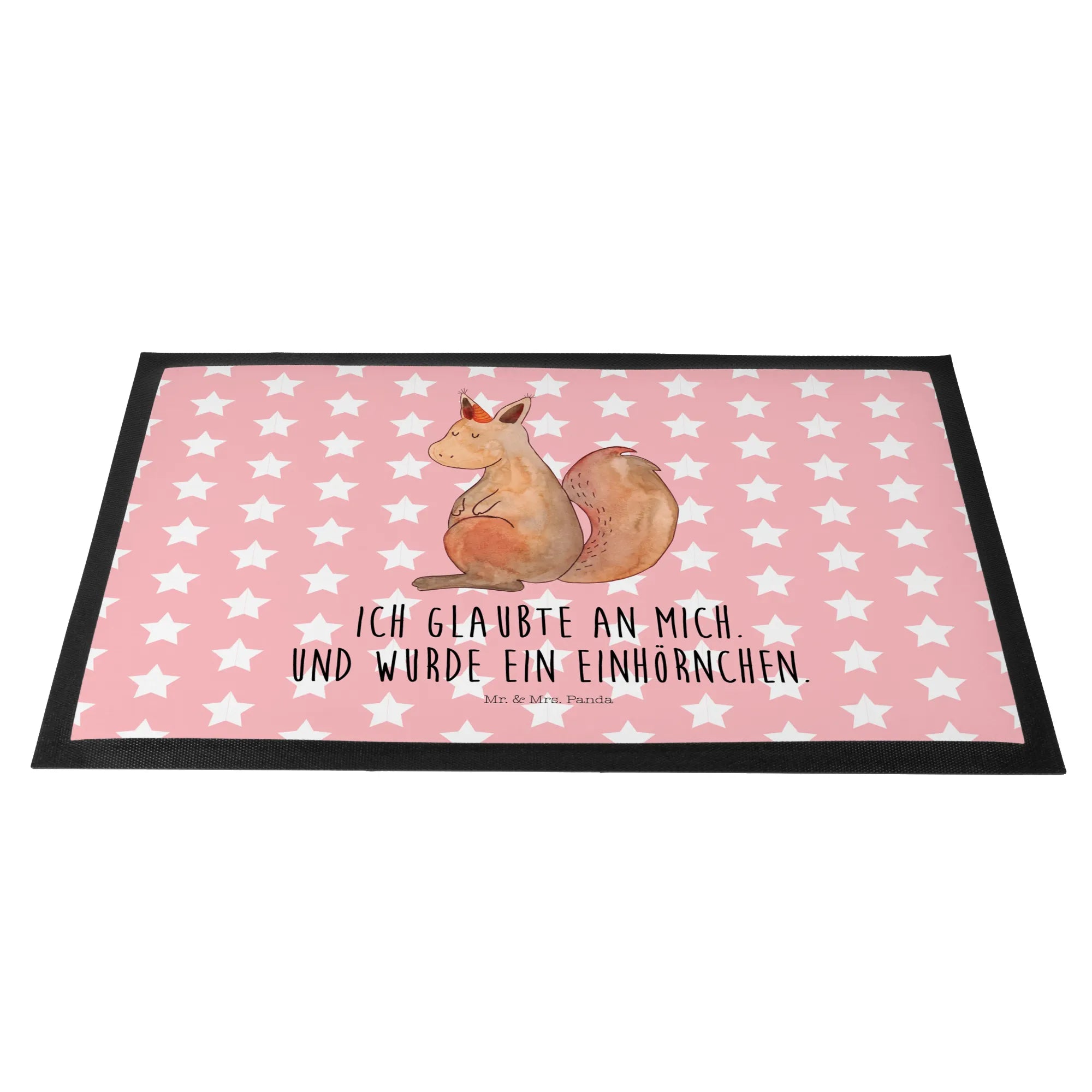 Imagine stepping into your home and being welcomed by this playful squirrel, reminding you to believe in yourself just like the slogan 'Ich glaubte an mich. Und wurde ein Einhörnchen.' This motivational quote resonates with both young and old, inspiring confidence and positivity every time you walk through your door. This doormat measures 60 x 90 cm, which makes it an excellent fit for various entryways, adding a touch of magic to your home entrance.