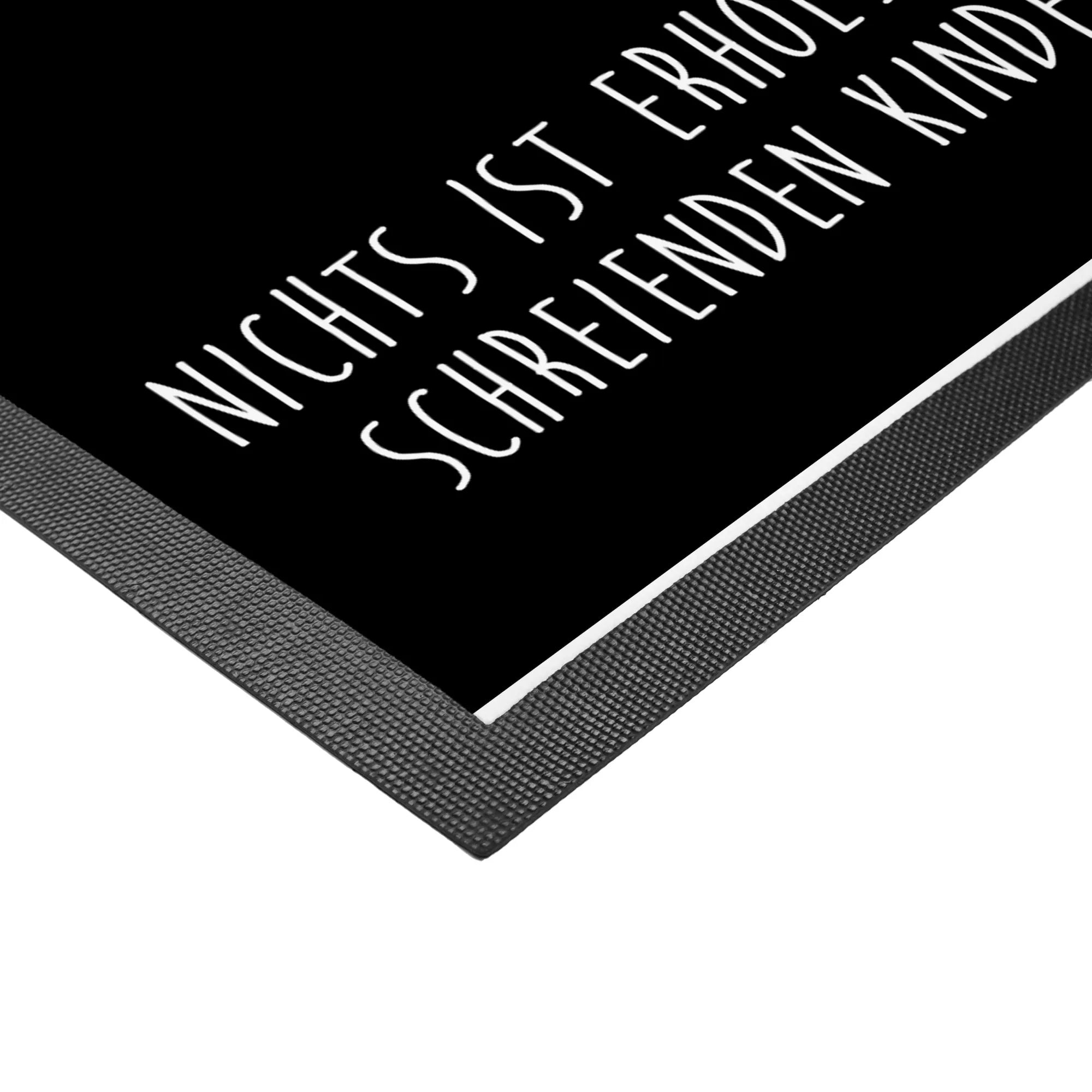 Die Fußmatte Sommer von Mr. & Mrs. Panda ist das perfekte Geschenk für alle Sonnenanbeter, die den Sommer in ihr Zuhause bringen möchten. Sie hat ein wundervolles Design, das mit dem Spruch 'Nichts ist erholsamer als ein Strandurlaub mit schreienden Kindern und Sand in jeder Ritze.' versehen ist und mit viel Liebe zum Detail gefertigt wurde.