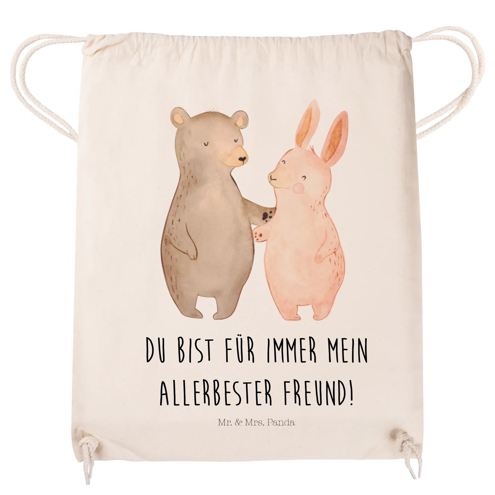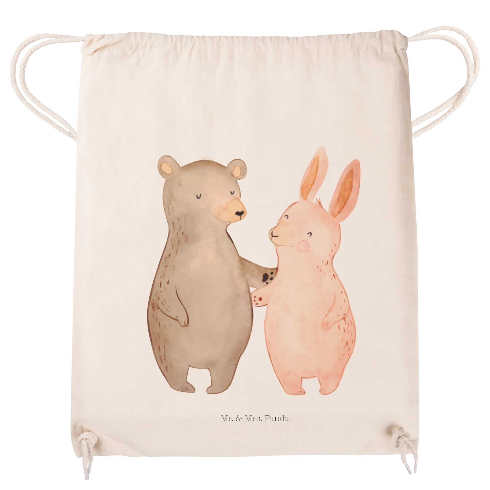 Drawstring bag bear and rabbit Embrace - with saying - Transparent