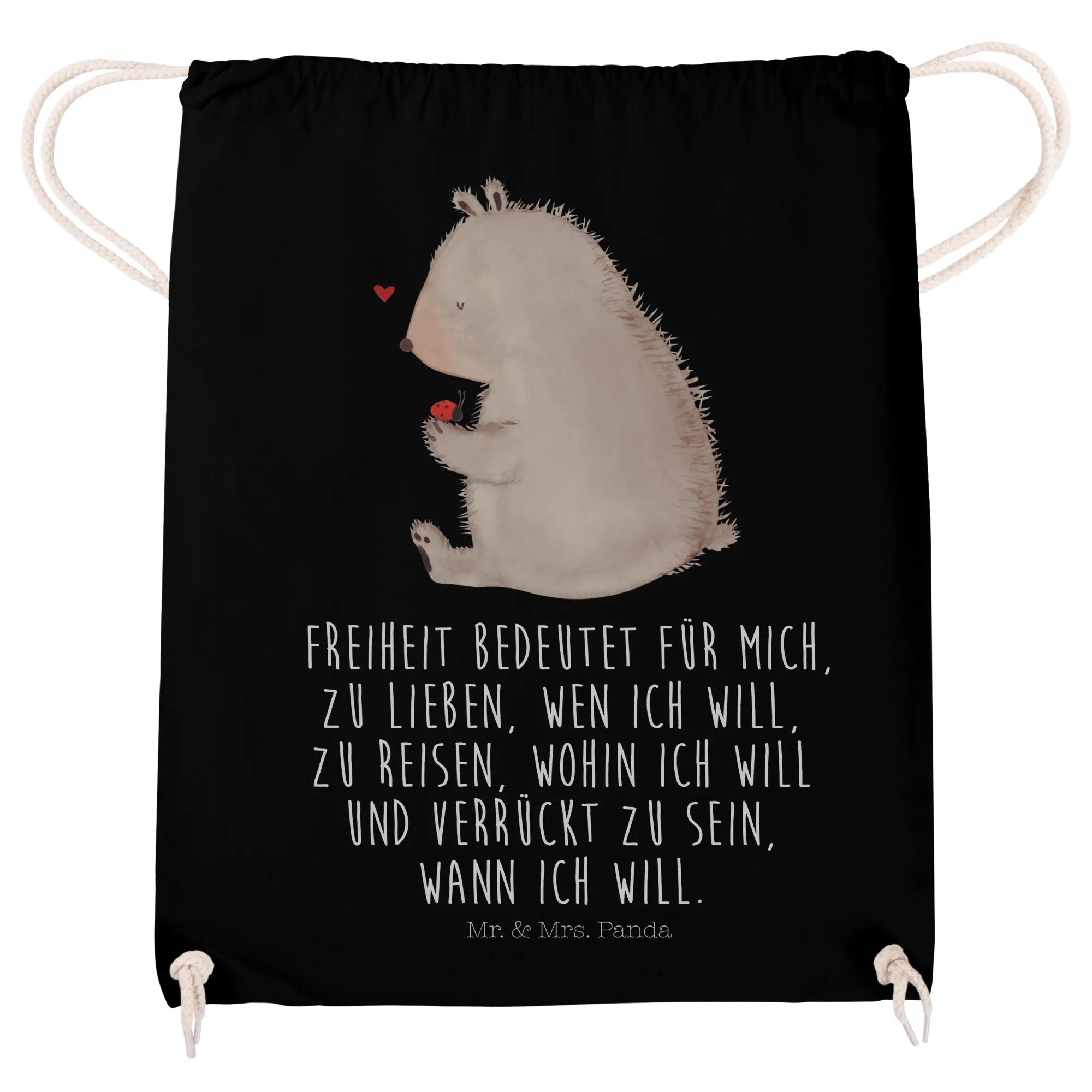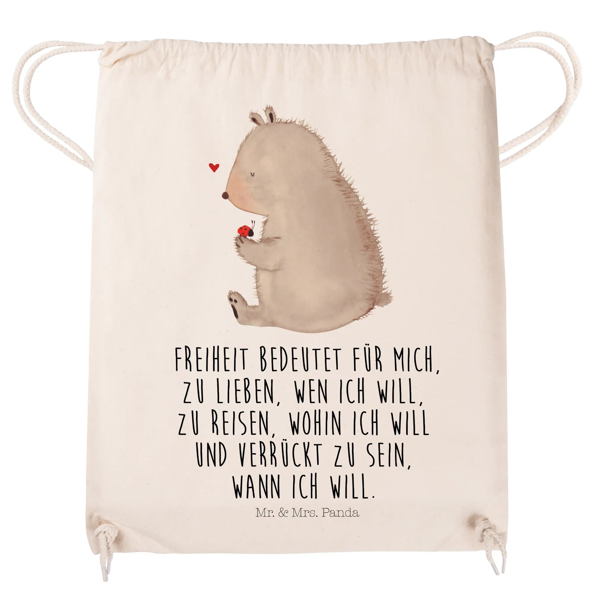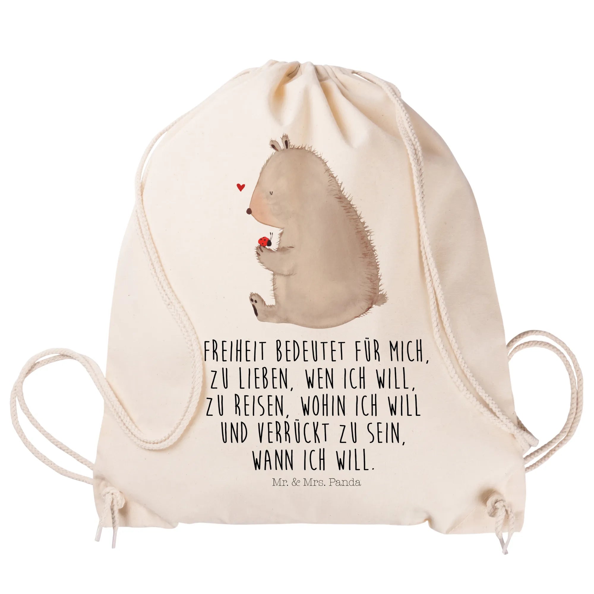 The Mr. & Mrs. Panda Drawstring Bag featuring the delightful Bear with Ladybird design is not just any sports bag; it's a charming piece of art that speaks to the hearts of all animal lovers!