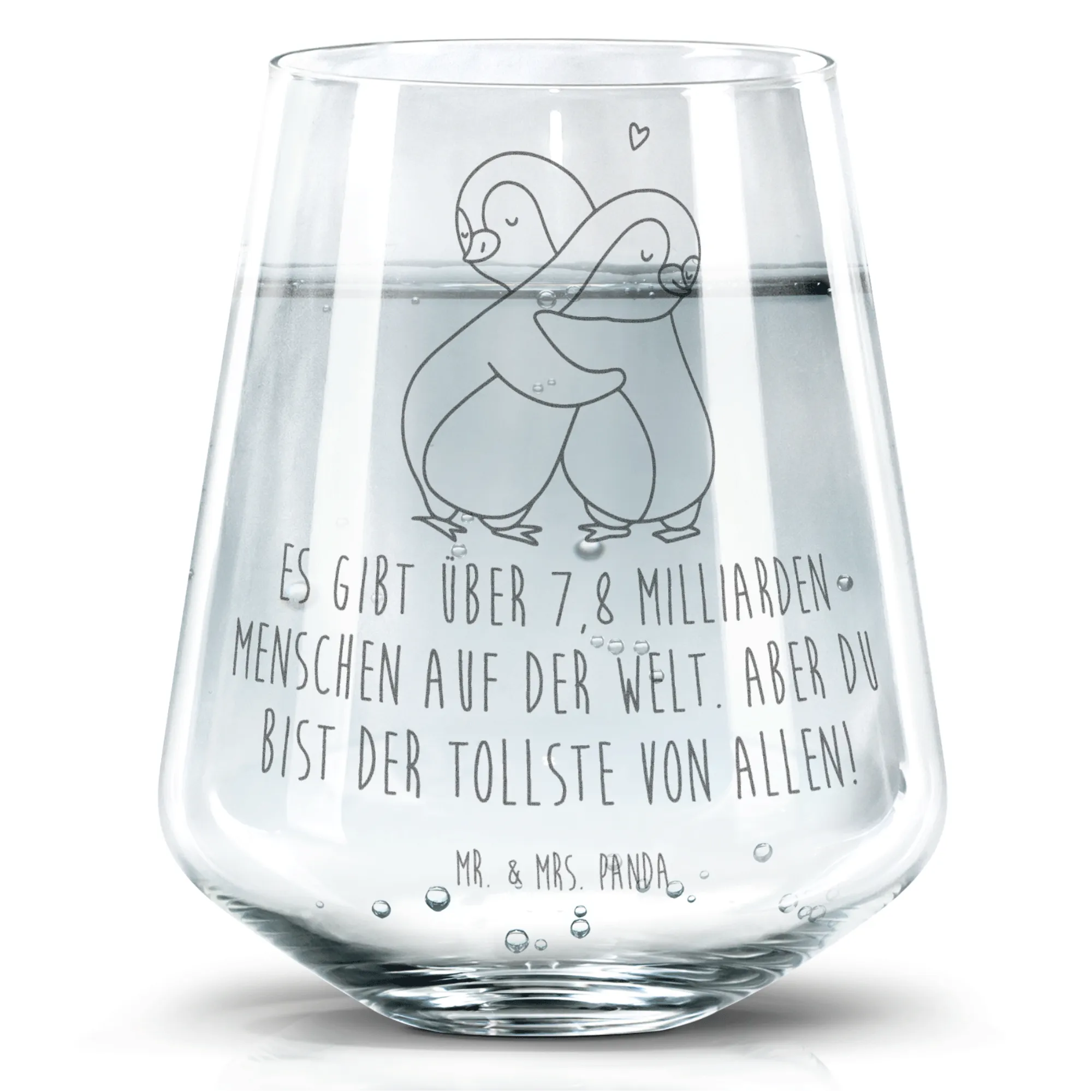 Introducing the beautiful Trinkglas from Mr. & Mrs. Panda, designed to elevate your drink experience! With a height of 103 mm (4 inches) and a diameter of 88 mm (3 inches), this sturdy glass can hold up to 400 ml (14 oz) of your favorite beverage. Perfect for serving water, juice, or even cocktails, it features exquisite engravings with lovely quotes and motifs that add a touch of charm to any occasion. The high-quality laser engraving provides a matte effect, making each sip special. This glass is also dishwasher safe for easy cleaning. So whether you're entertaining guests or enjoying a quiet moment at home, this Trinkglas is the perfect companion for all your drinking needs!