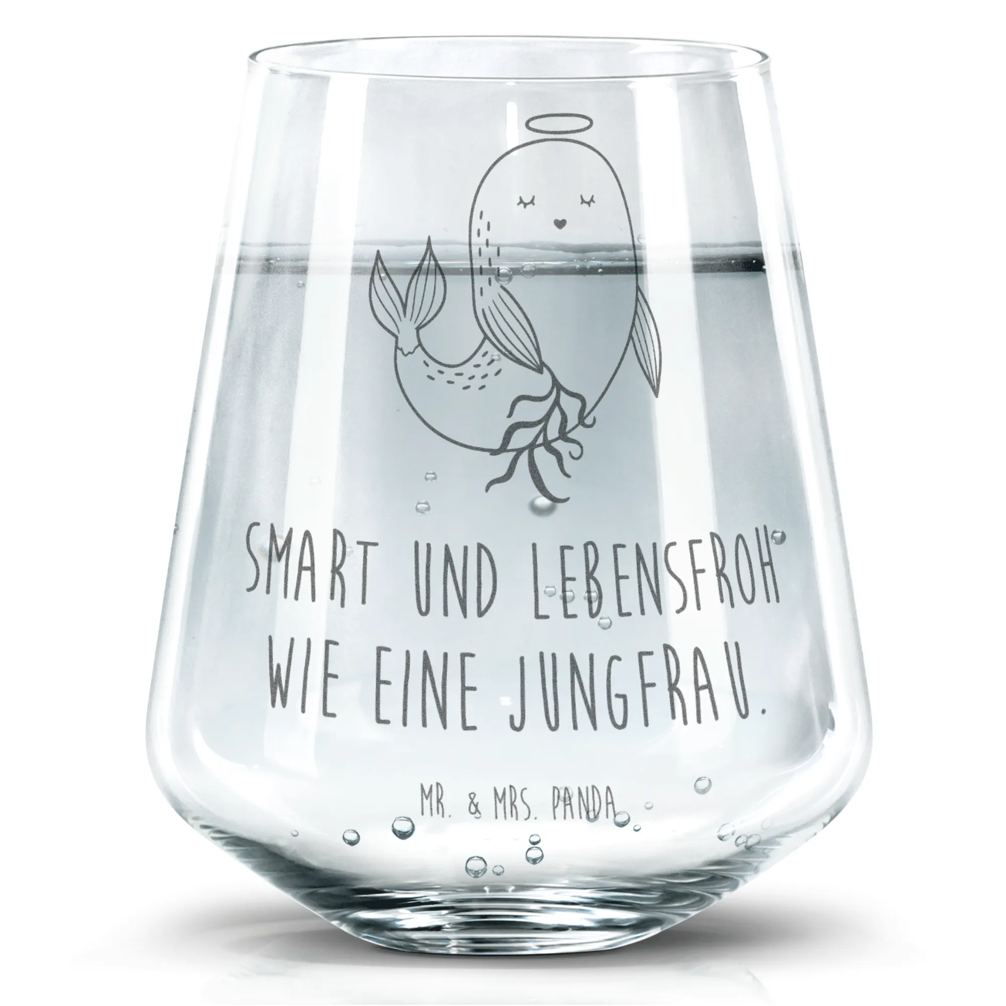 Mr. & Mrs. Panda Trinkglas Sternzeichen Jungfrau – ein klares, liebevoll gestaltetes Becherglas mit dem fröhlichen Spruch „Smart und lebensfroh wie eine Jungfrau.“ Dieses Glas verbindet Stil und Alltagstauglichkeit und ist das ideale Geschenk für alle Jungfrau-Geborenen und Sternzeichen-Liebhaber.