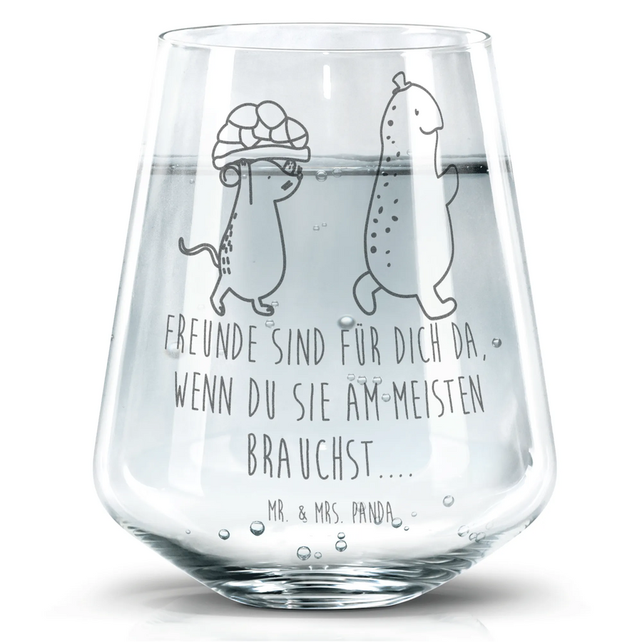 Das Trinkglas mit dem süßen Schildkröten- und Mäusmotiv von Mr. & Mrs. Panda ist das perfekte Geschenk für alle, die das Besondere lieben. Egal ob für Freunde, Freundinnen oder einfach nur für dich selbst, dieses wundervolle Trinkglas bringt Freude in jeden Schluck. Mit seiner hochwertigen Lasergravur, die das niedliche Design zeigt, verwandelt es jedes Getränk in ein besonderes Erlebnis.