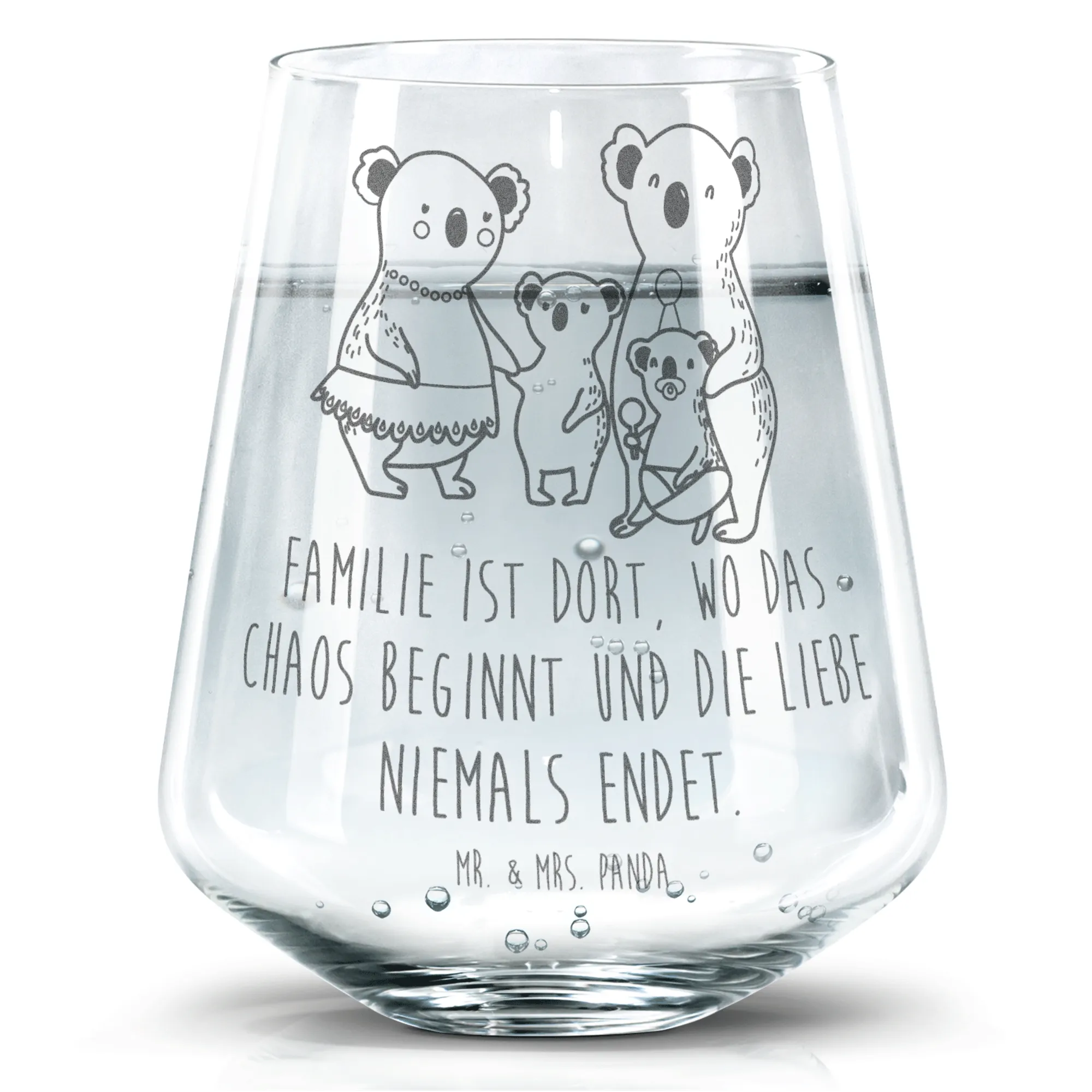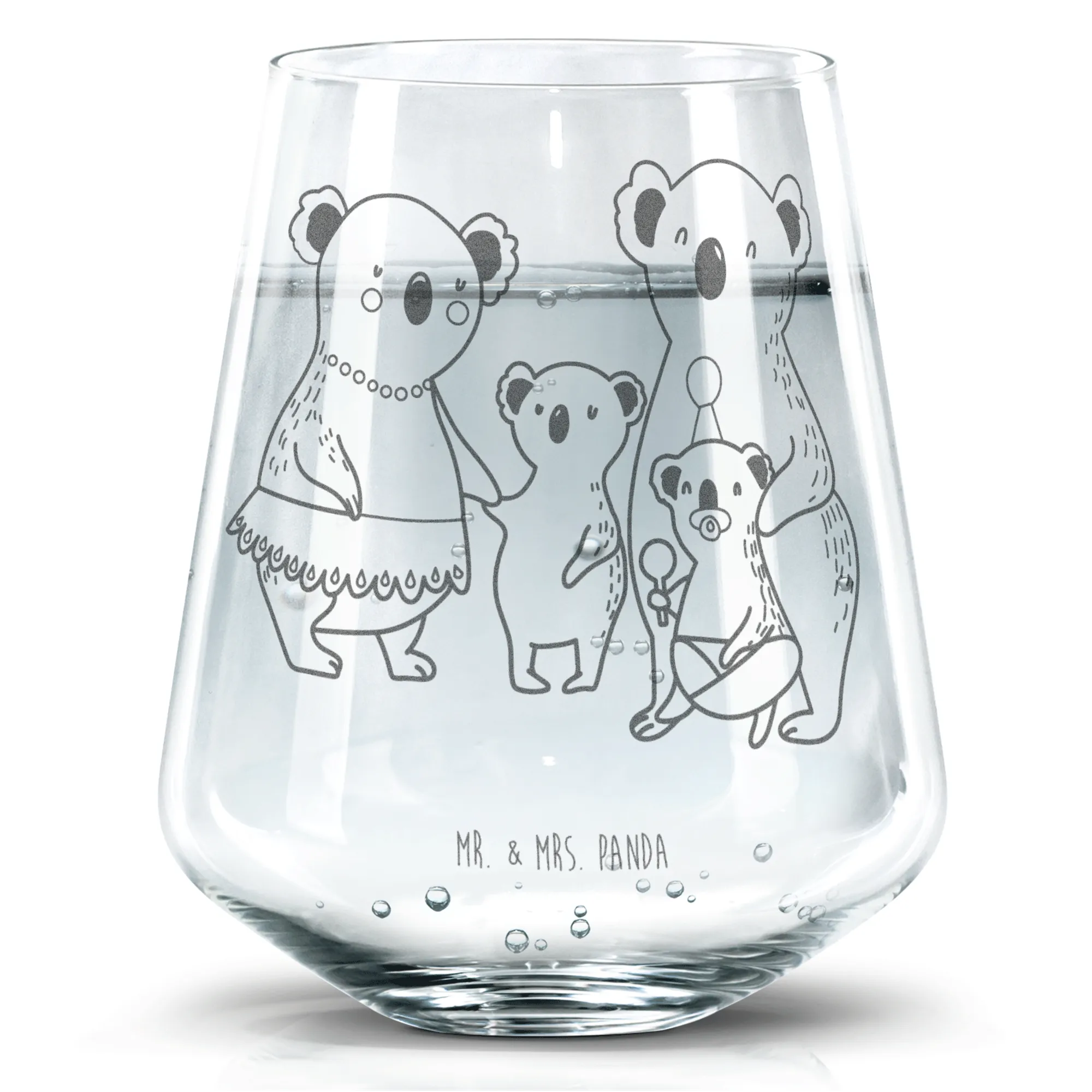 Entdecke das wunderschöne Trinkglas aus der Familie Kollektion von Mr. & Mrs. Panda, das mit einem liebevollen Koala Familienmotiv verziert ist.