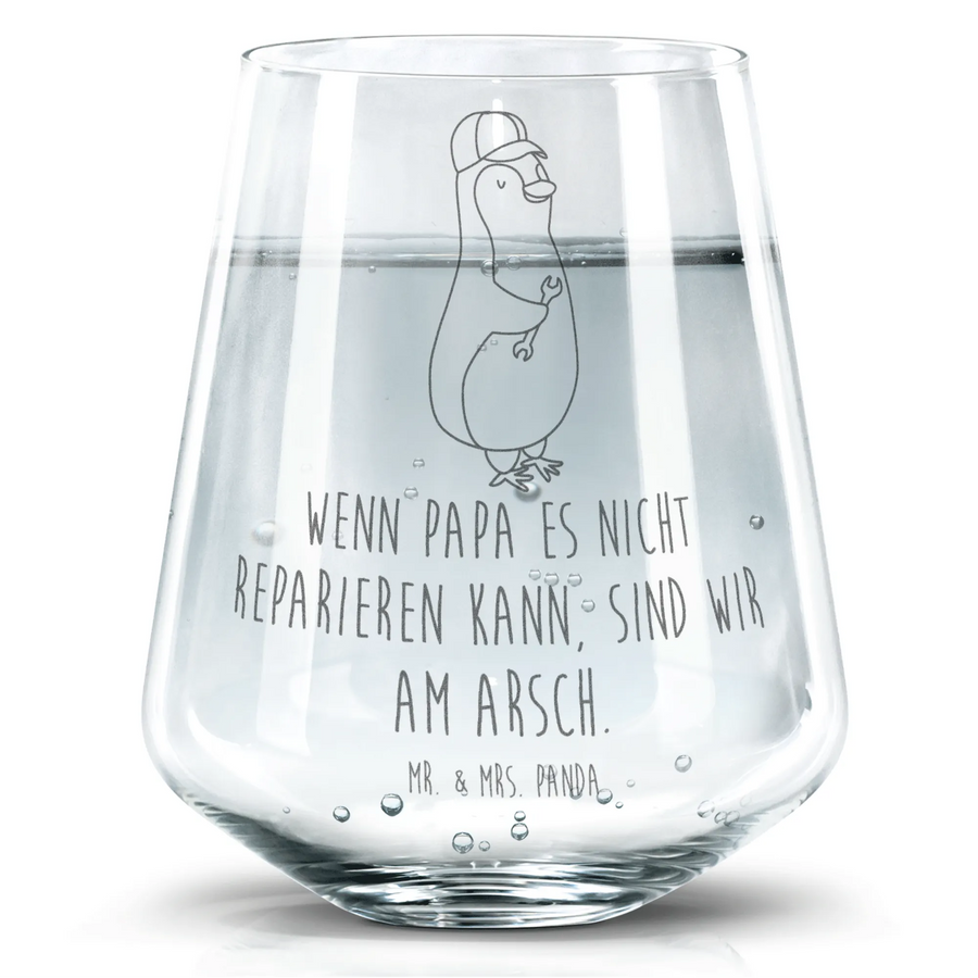 Das Trinkglas „Wenn Papa es nicht reparieren kann, sind wir am Arsch“ von Mr. & Mrs. Panda ist das perfekte Geschenk für alle Väter, die immer mit einem Lächeln und einem Werkzeugkasten bereitstehen, um das Leben ihrer Familie zu reparieren. Mit seiner hochwertigen Lasergravur und dem witzigen Pinguin-Motiv bringt dieses wunderschöne Wasserglas nicht nur Freude, sondern auch eine Portion Humor in den Alltag.
