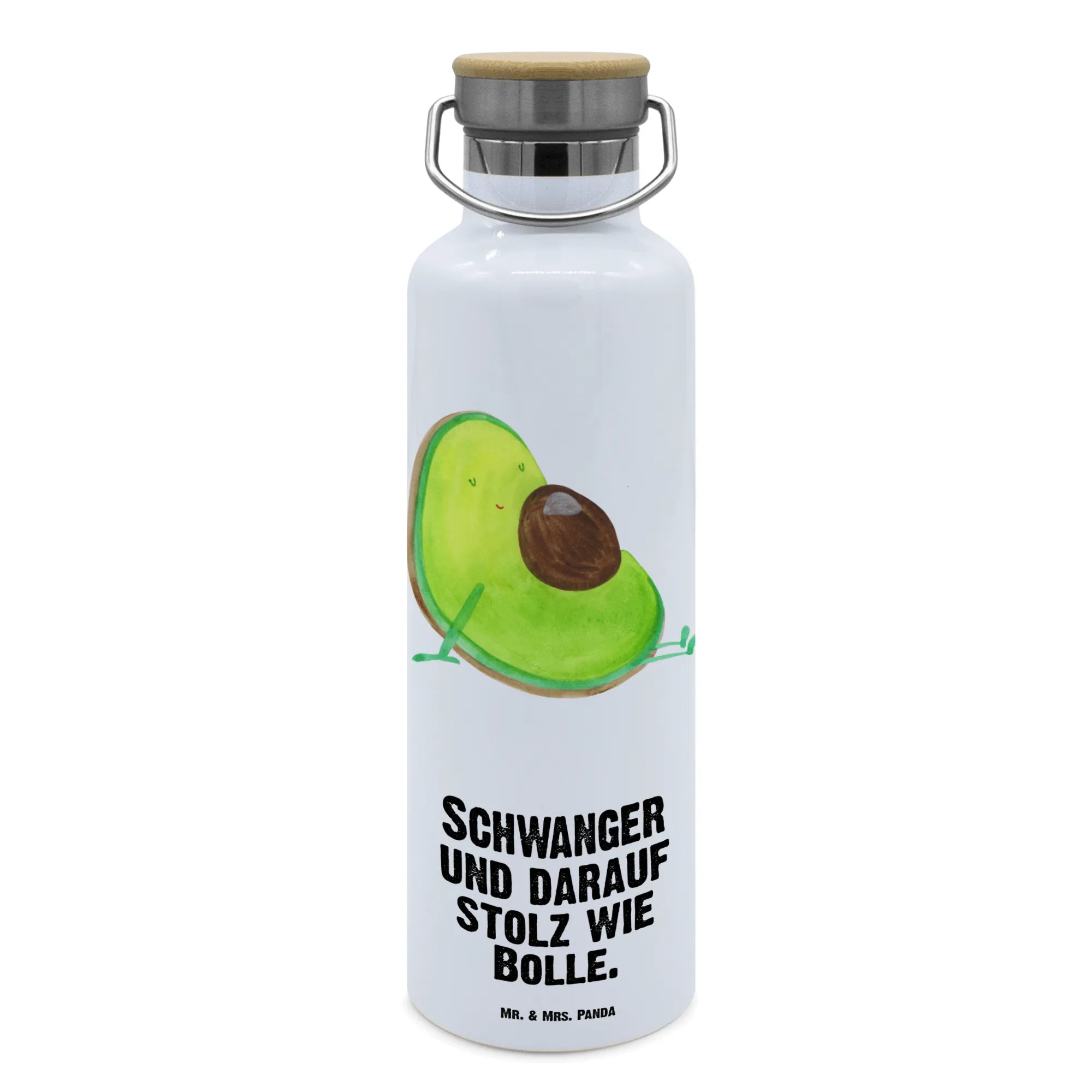 Mr. & Mrs. Panda Trinkflasche „Avocado schwanger“ – ein fröhliches Geschenk mit Herz. Die handgezeichnete Avocado sitzt stolz und schaut liebevoll auf ihren dicken Kern, der wie ein kleiner Babybauch aussieht. Der Slogan „Schwanger und darauf