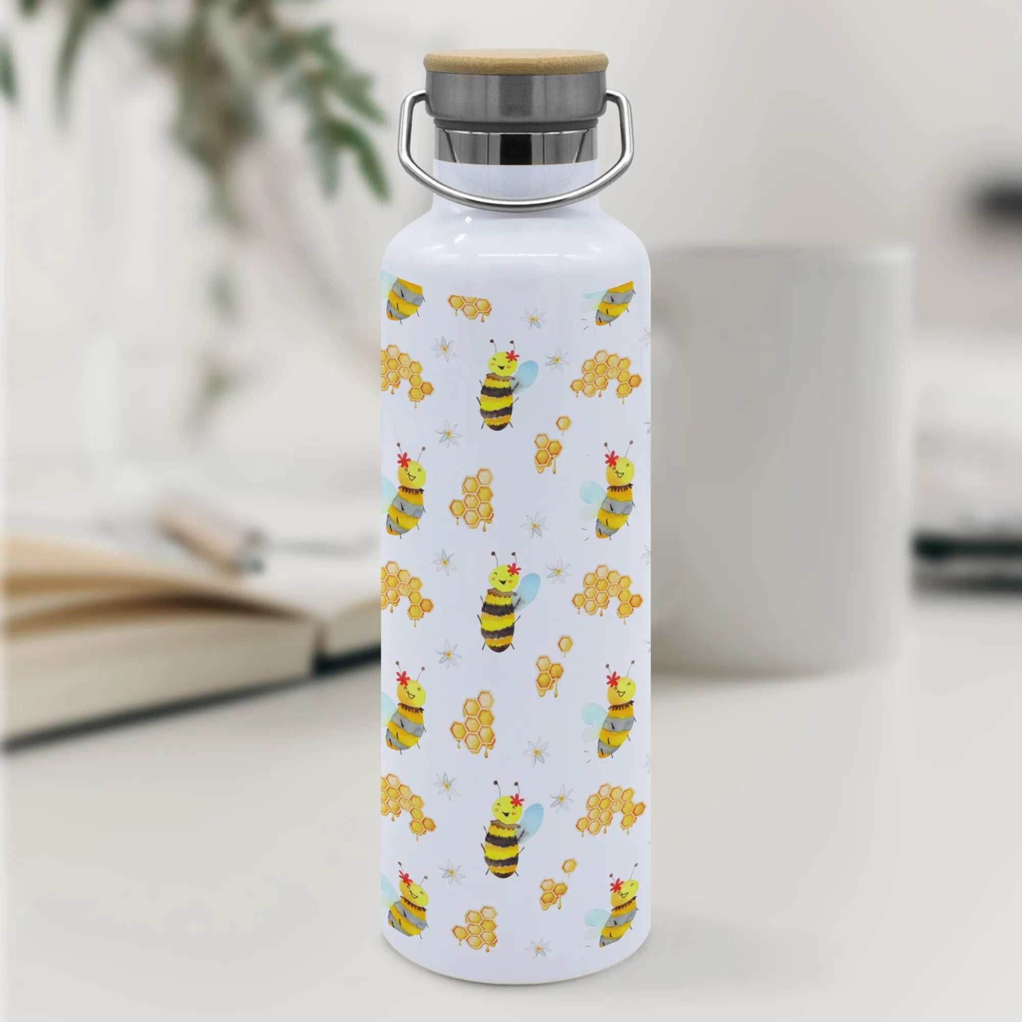 This stunning drink bottle features the charming 'Happy Bee' motif, intricately designed by Mrs. Panda, that will remind anyone using it to be joyful and optimistic in their daily life.