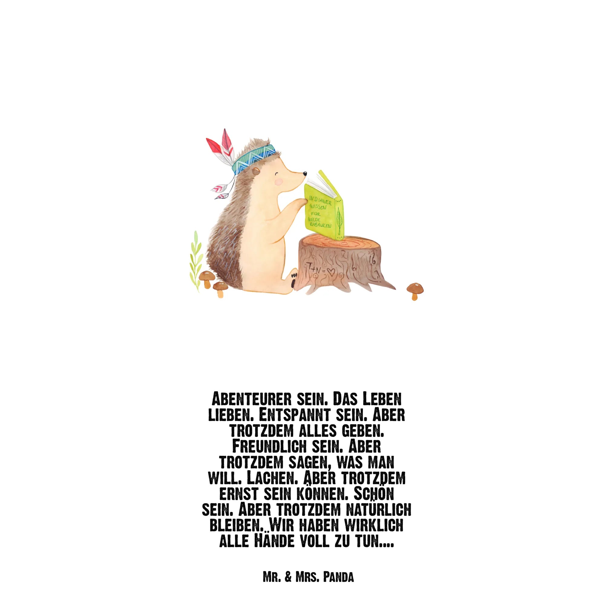 In the heart of the forest, our adventurous hedgehog, dressed in a feathered headdress, finds comfort on a rustic tree stump while flipping through a book of exciting tales. This enchanting motif captures the spirit of camping, exploration, and companionship. The saying 'Abenteurer sein. Das Leben lieben...' perfectly emphasizes the joy of living freely with a sense of wonder. It encourages us to delve into our own adventures, whether beneath the stars or in the warmth of a cozy campsite. With each page turned and each laugh shared, we build memories that last a lifetime. Adventure is about embracing the amazing journey of life, being kind but assertive, and letting your true self shine through with all your quirks. Let this charming hedgehog inspire you to find beauty in the wild, stay grounded amid the chaos, and cherish the moments spent with loved ones around the campfire.