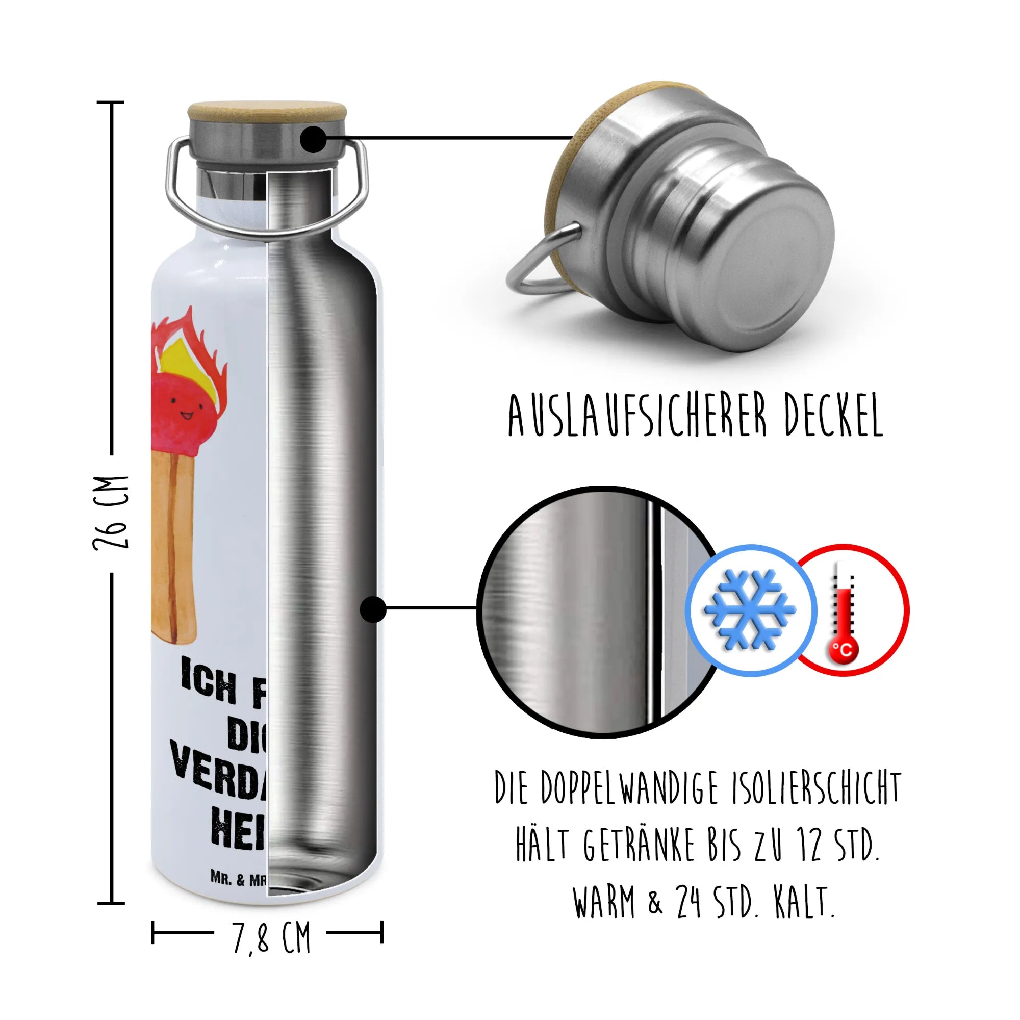Introducing the charming Drinks Bottle by Mr. & Mrs. Panda! This whimsical bottle is not only practical but adds a touch of fun to your hydration routine. Constructed with double-walled stainless steel and topped with a natural bamboo lid, it offers excellent insulation for both hot and cold drinks. Featuring a spacious capacity of 750 ml (25 oz), and measuring 255 mm (10 in) tall and 78 mm (3 in) wide, it is perfect for school, university, the office, or your next adventure. The inspiring quotes and creative designs will make drinking water feel like a treat! Ideal for bottled fizz too. Don’t forget to wash it by hand for longevity. Lightweight yet durable, it’s the perfect partner wherever you go!