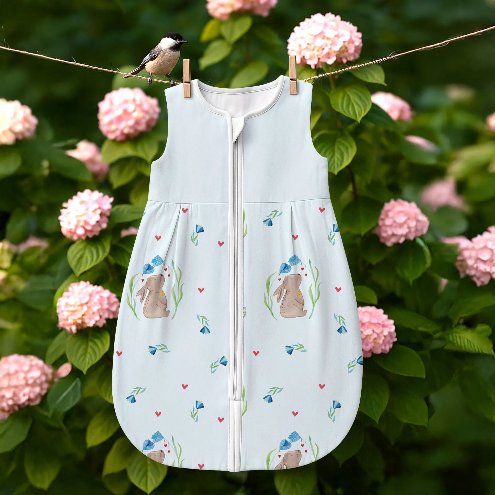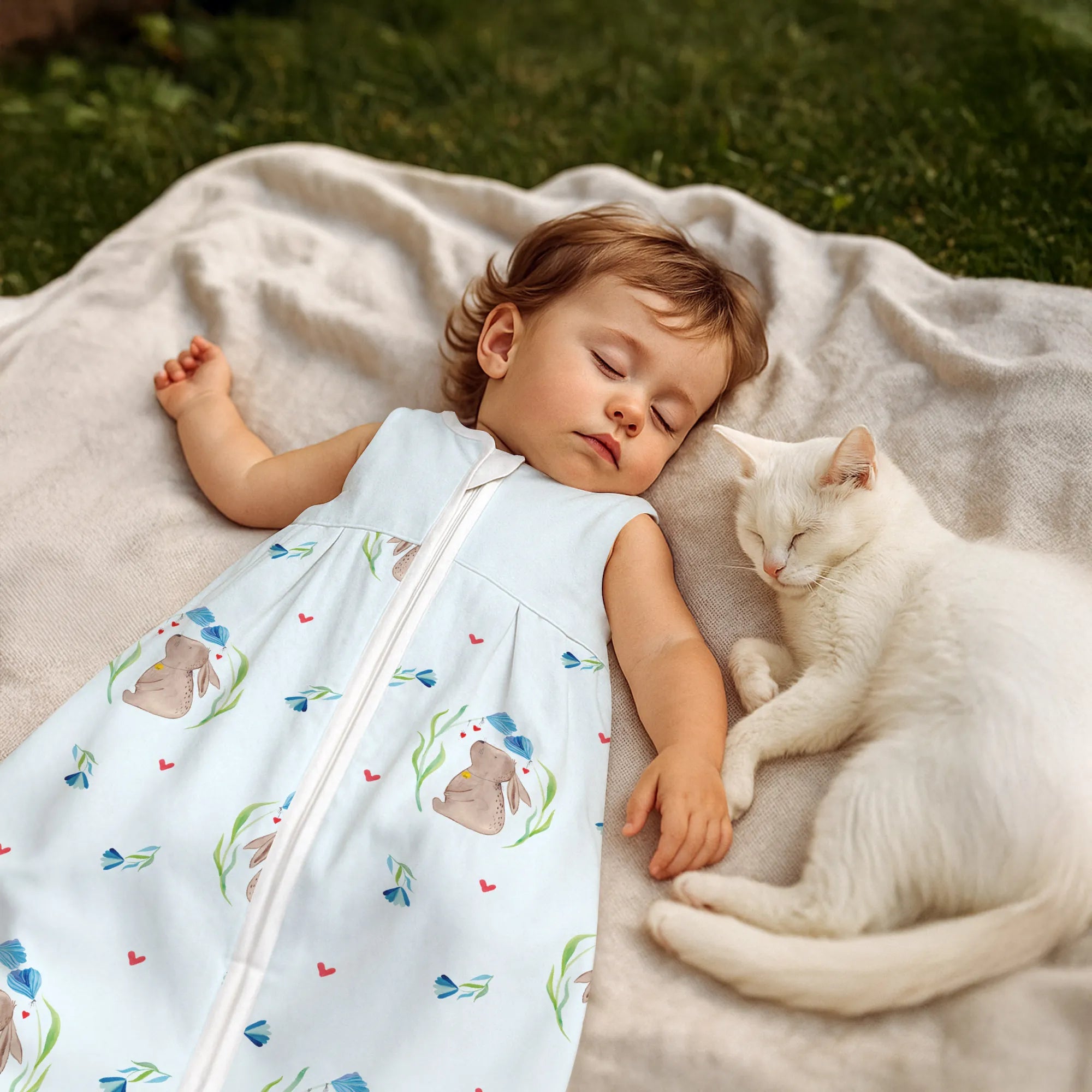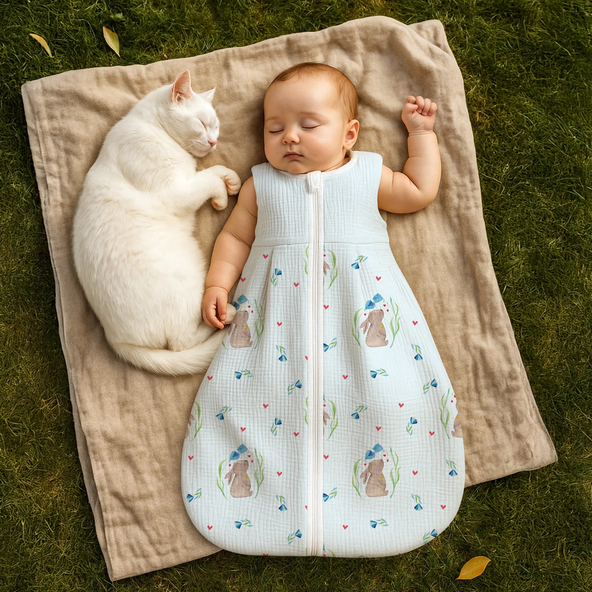 The baby sleeping bag from Mr. & Mrs. Panda combines charming design with maximum comfort. As a baby sleeping bag, it is printed with cute motifs and sayings from Mr. & Mrs. Panda and delights with very bright colors. The soft, breathable fabric ensures a high level of wearing comfort and a pleasant fit that makes dressing and undressing easier. A practical zipper allows quick diaper changes, while the fine binding at the neckline, sleeves and leg openings is gentle on the skin. Depending on the variant, it is available in different materials, including skin-friendly cotton, and comes in many sizes — please refer to the size chart. Not customizable and handmade for you. Easy care: machine washable at a maximum of 30 °C; gentle detergents recommended.