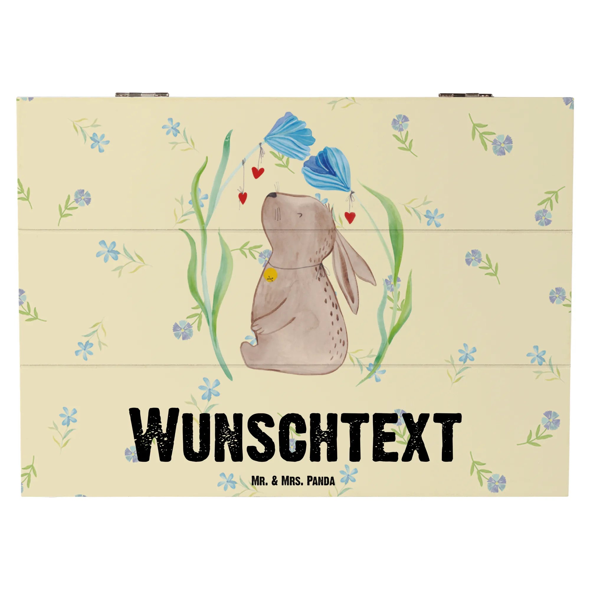 Personalised wooden chest Hare flower - 22 x 15 cm - Blumig
