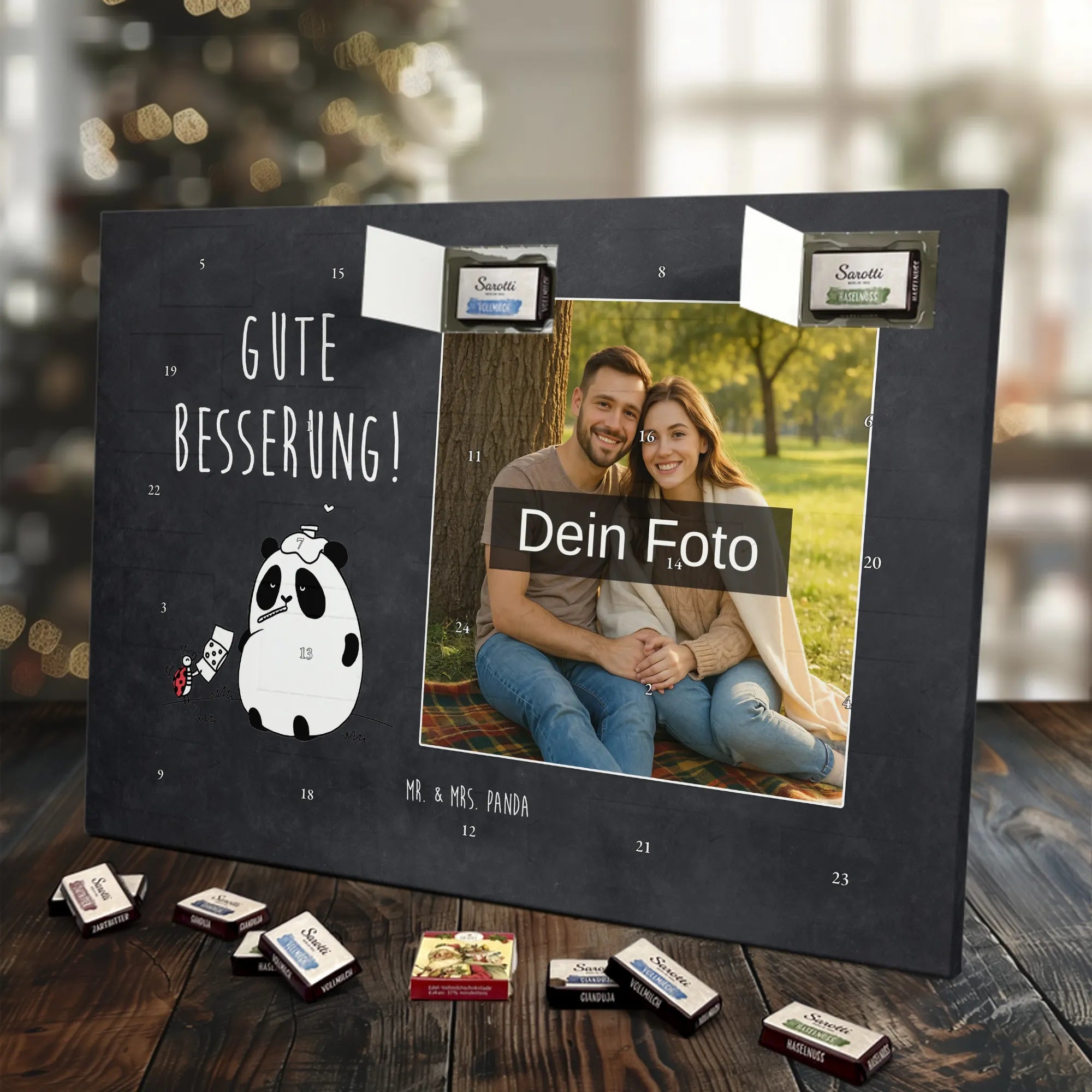 🐼 Personalisierter Schoko Foto Adventskalender mit deinem Foto, Mr. & Mrs. Panda Sprüchen und kinder® Schokolade.