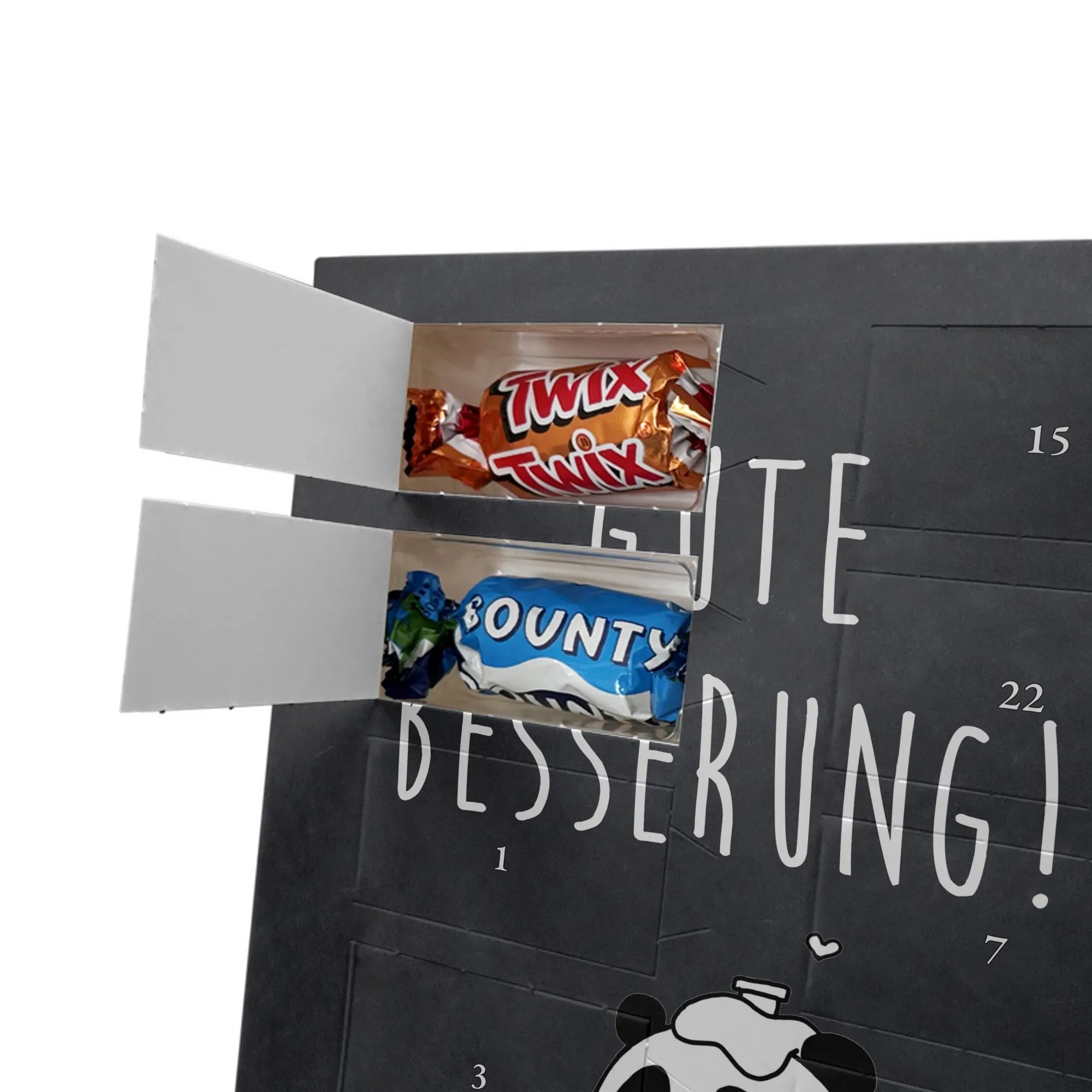 🐼 SCHOKO ADVENTSKALENDER: Personalisierter Kalender mit 24 Schokotäfelchen und Panda-Motiven.
