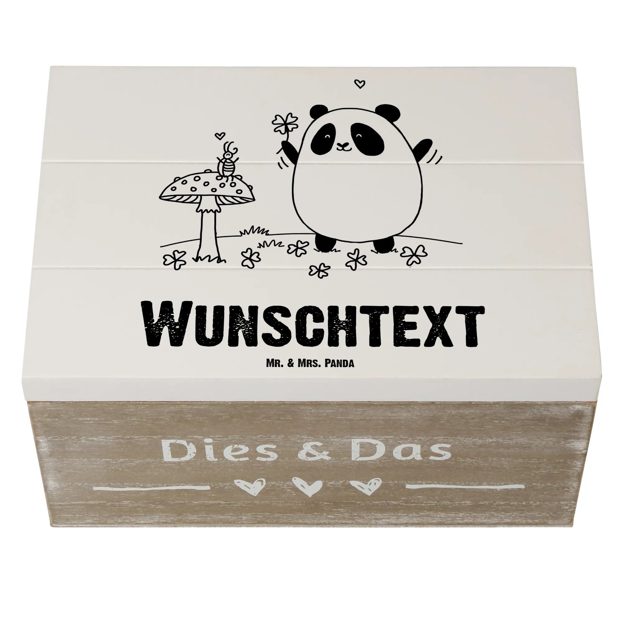 Personalised wooden chest Panda Happiness - 22 x 15 cm