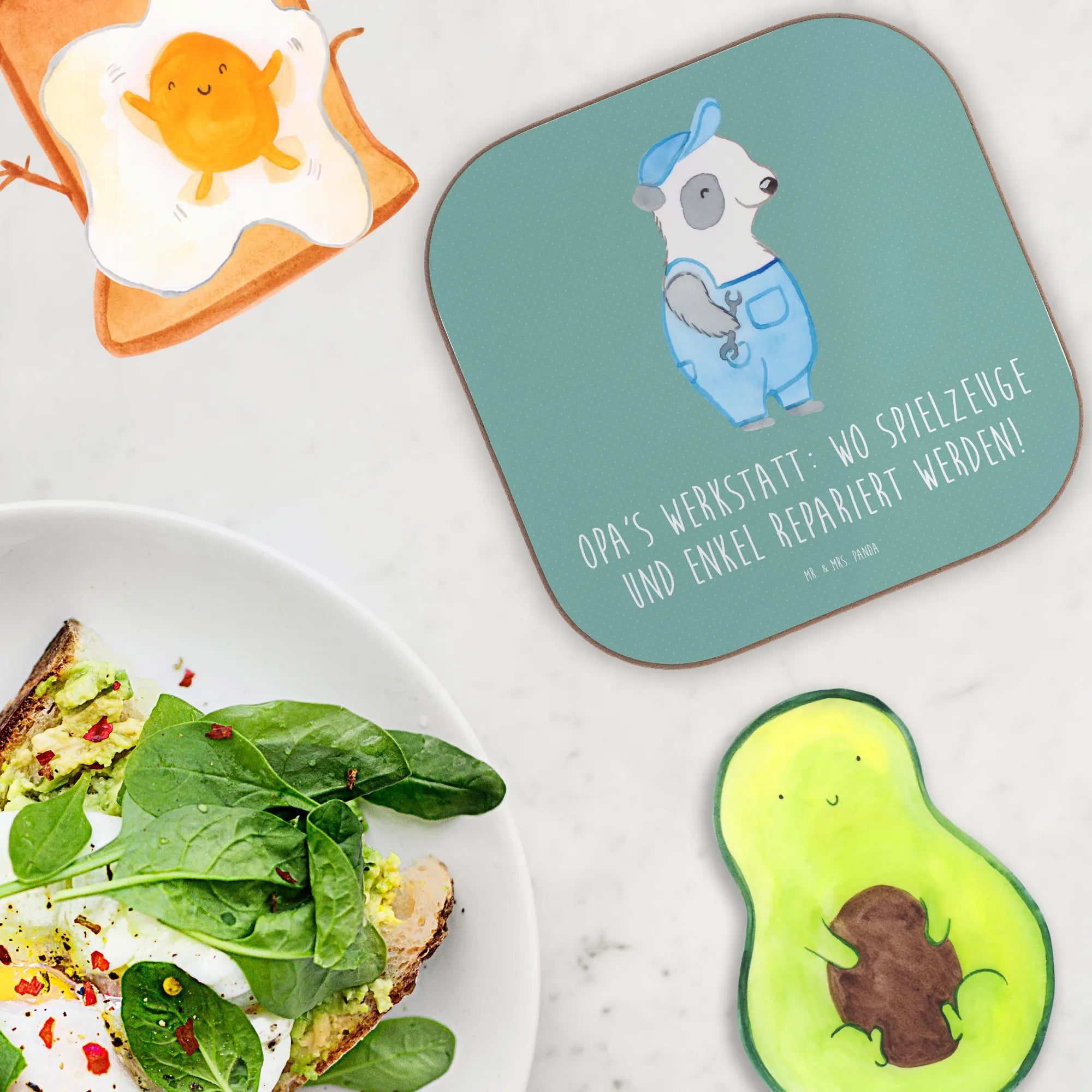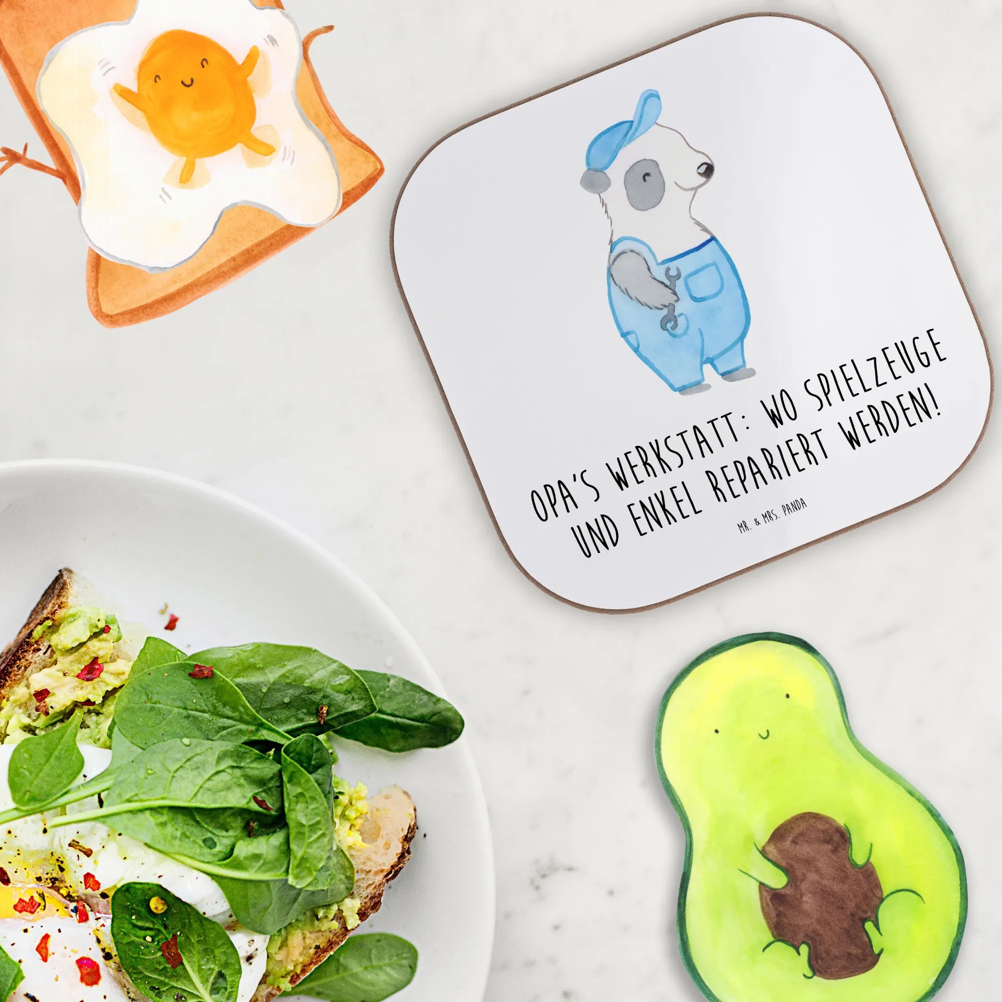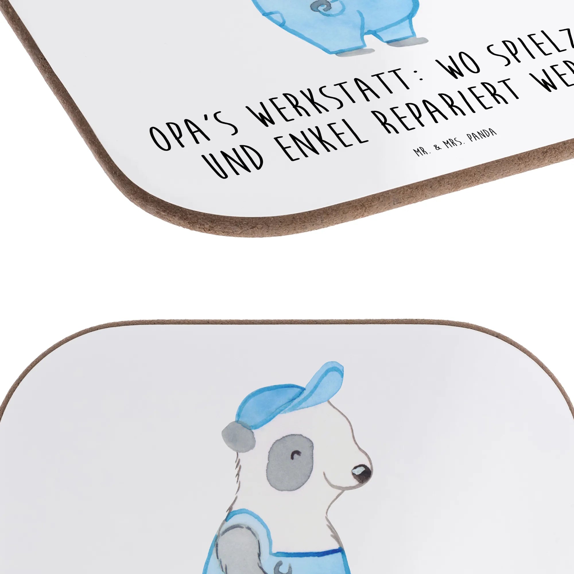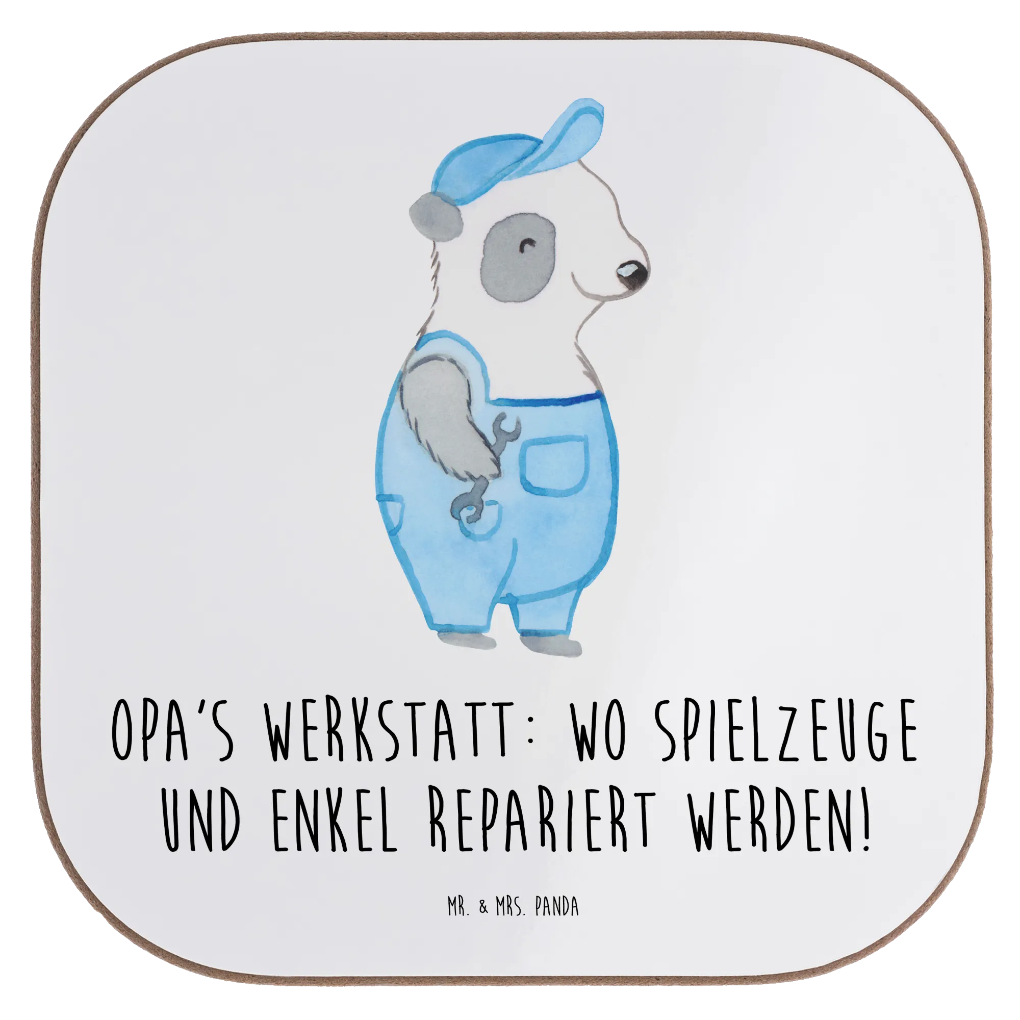 Square coaster Opa's Werkstatt: wo Spielzeuge und Enkel repariert werd – Mr. & Mrs. Panda