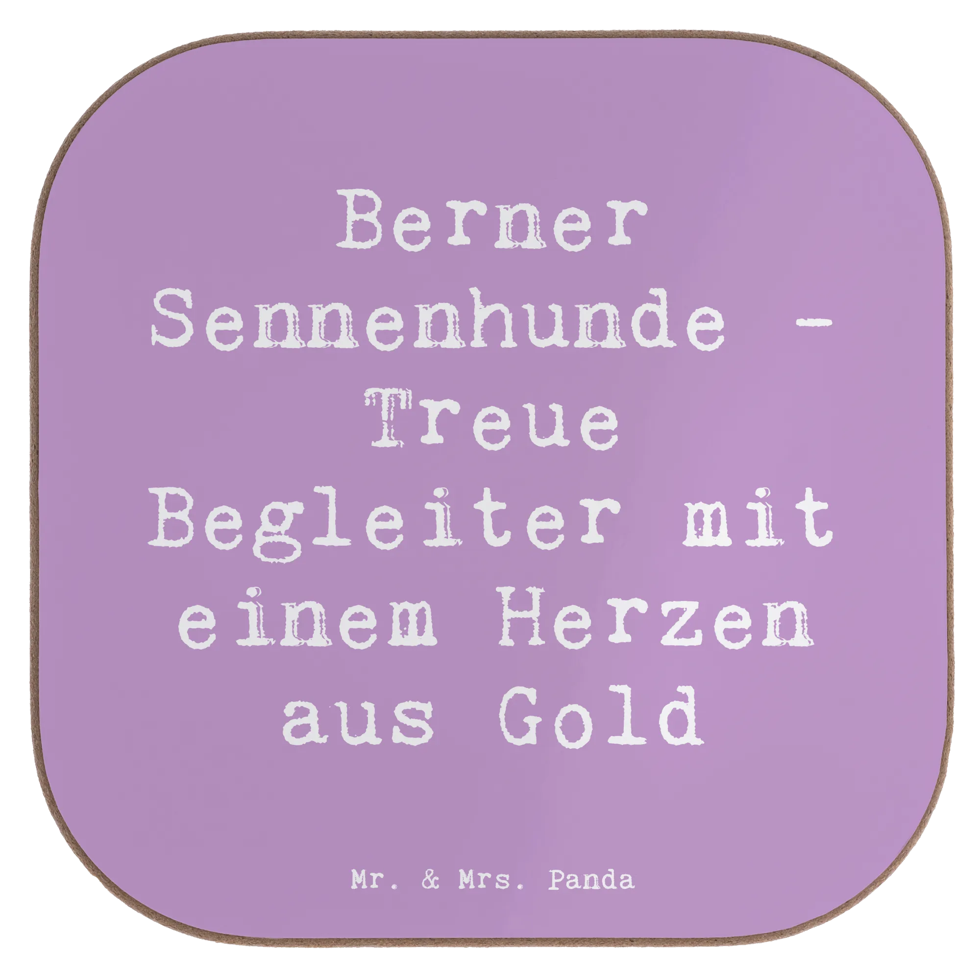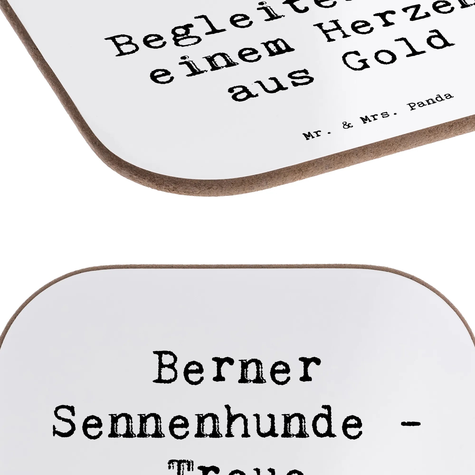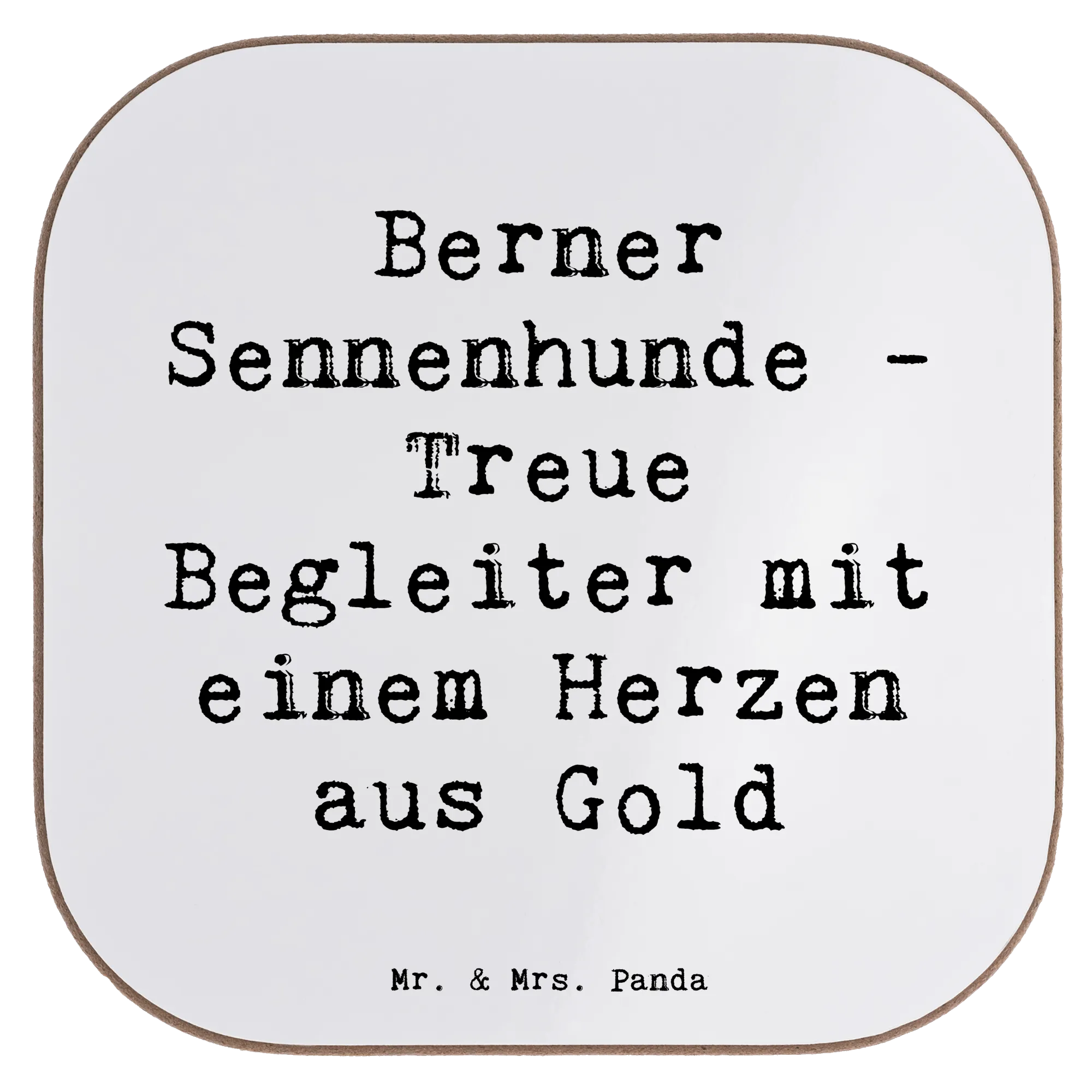 Ein liebevoller Untersetzer für alle Berner Sennenhund-Freunde. Unser quadratischer Untersetzer von Mr. & Mrs. Panda trägt den warmen Spruch „Berner Sennenhunde - Treue Begleiter mit einem Herzen aus Gold“ und zeigt eine handgezeichnete Aquarell-Illustration aus der Hunderassen-Kollektion. Er vereint praktischen Schutz für deinen Tisch mit dekorativem Charme.