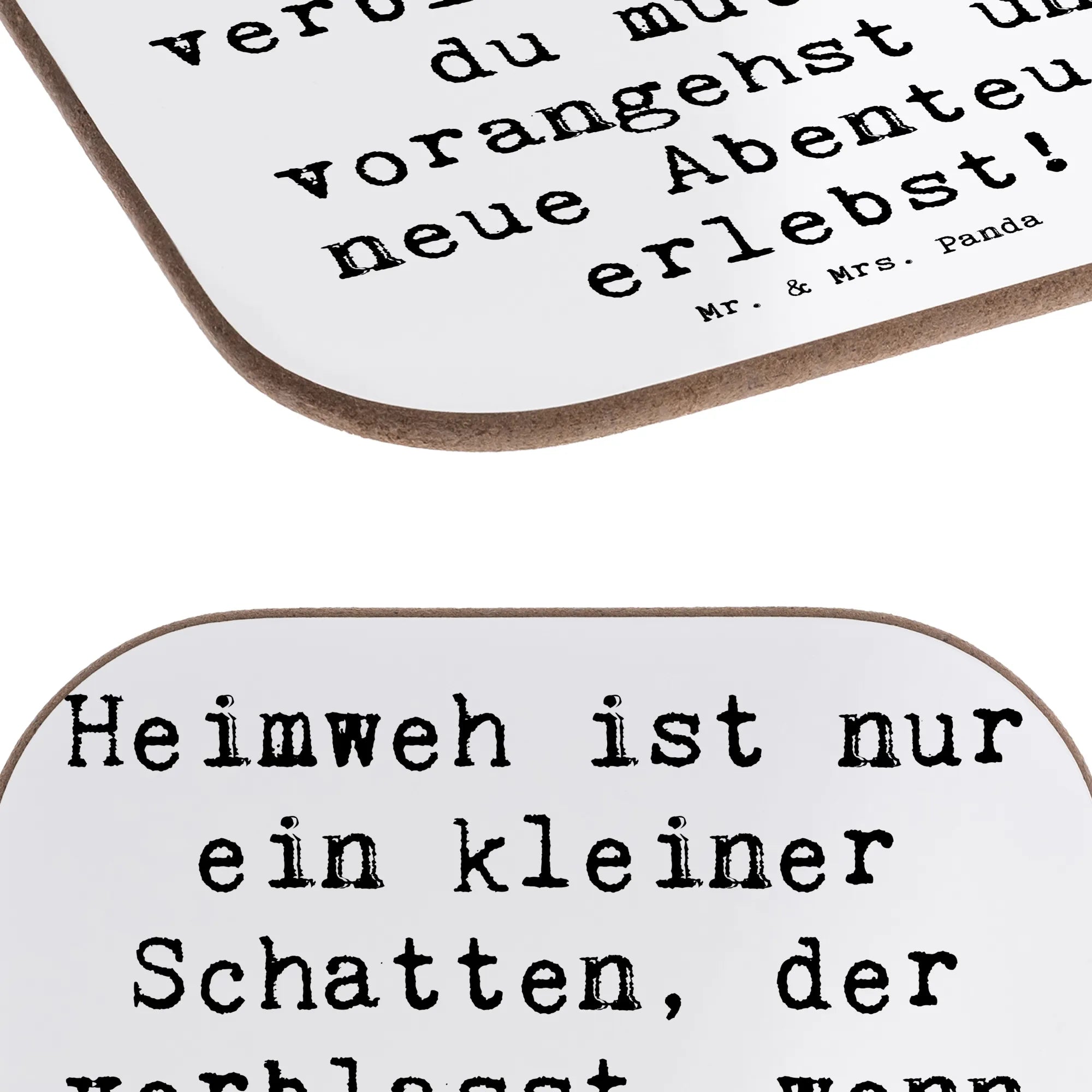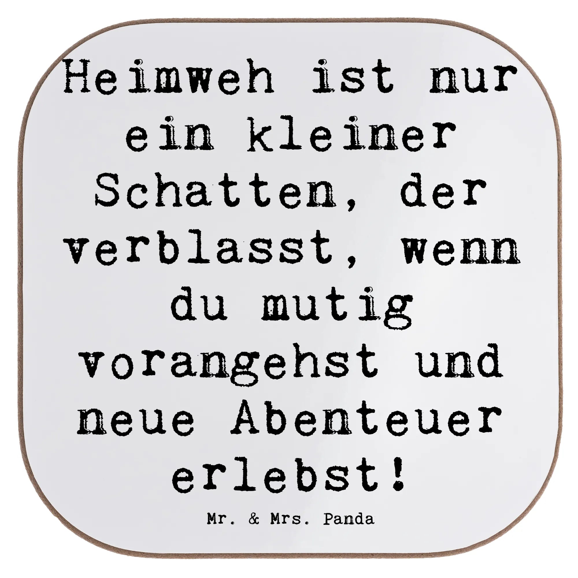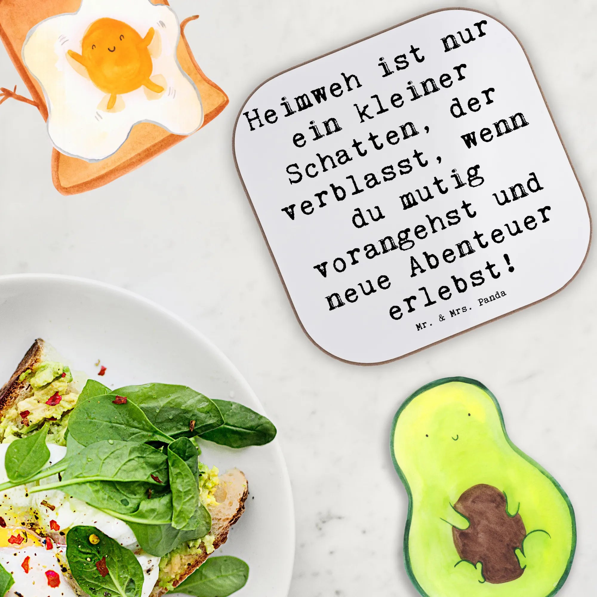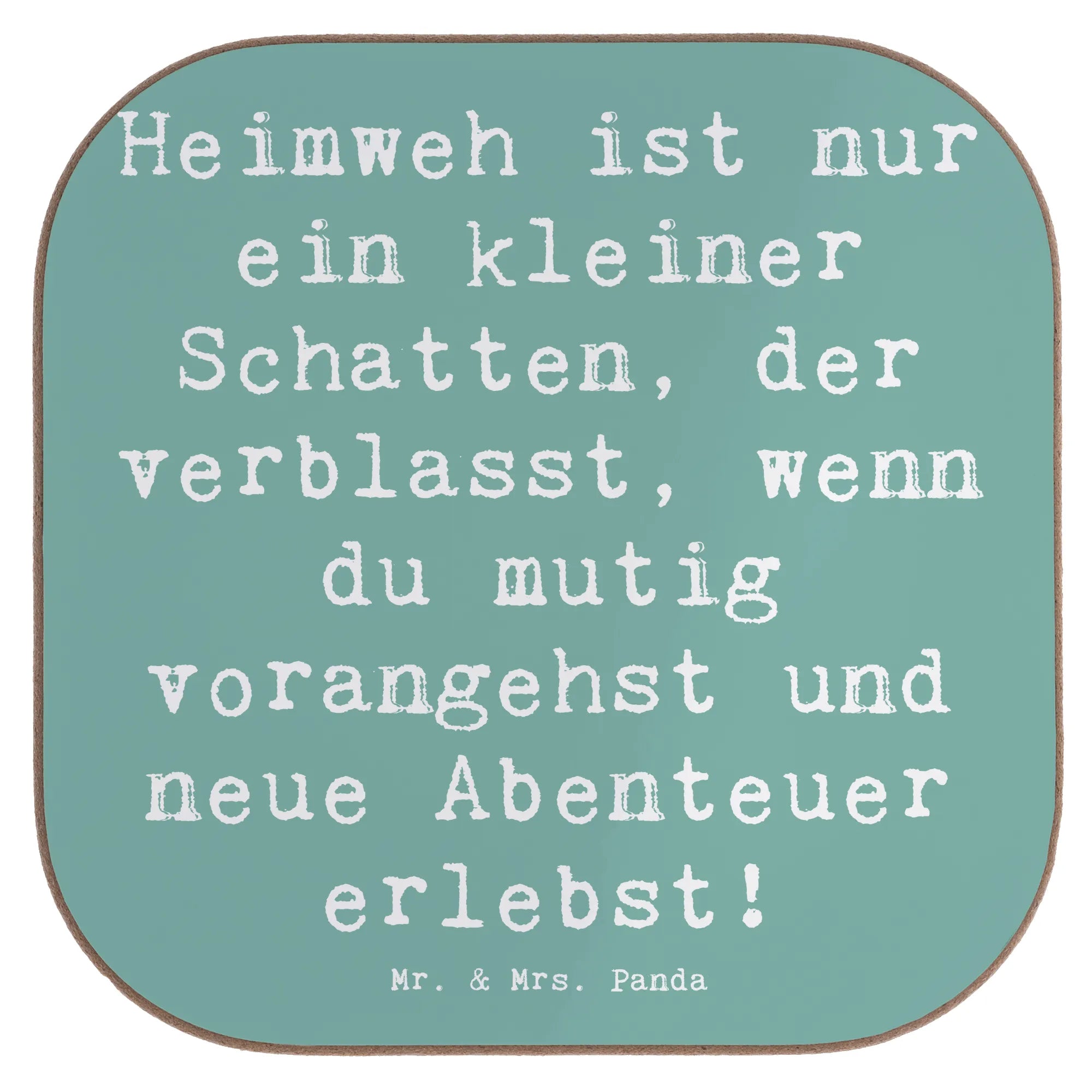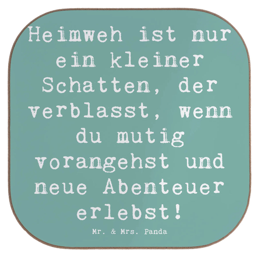 Square coaster Saying Heimweh ist nur ein kleiner Schatten, der verblasst, wenn du mutig vorangehst und neue Abenteuer erlebst! - Carton 300 grams - Sea Breeze