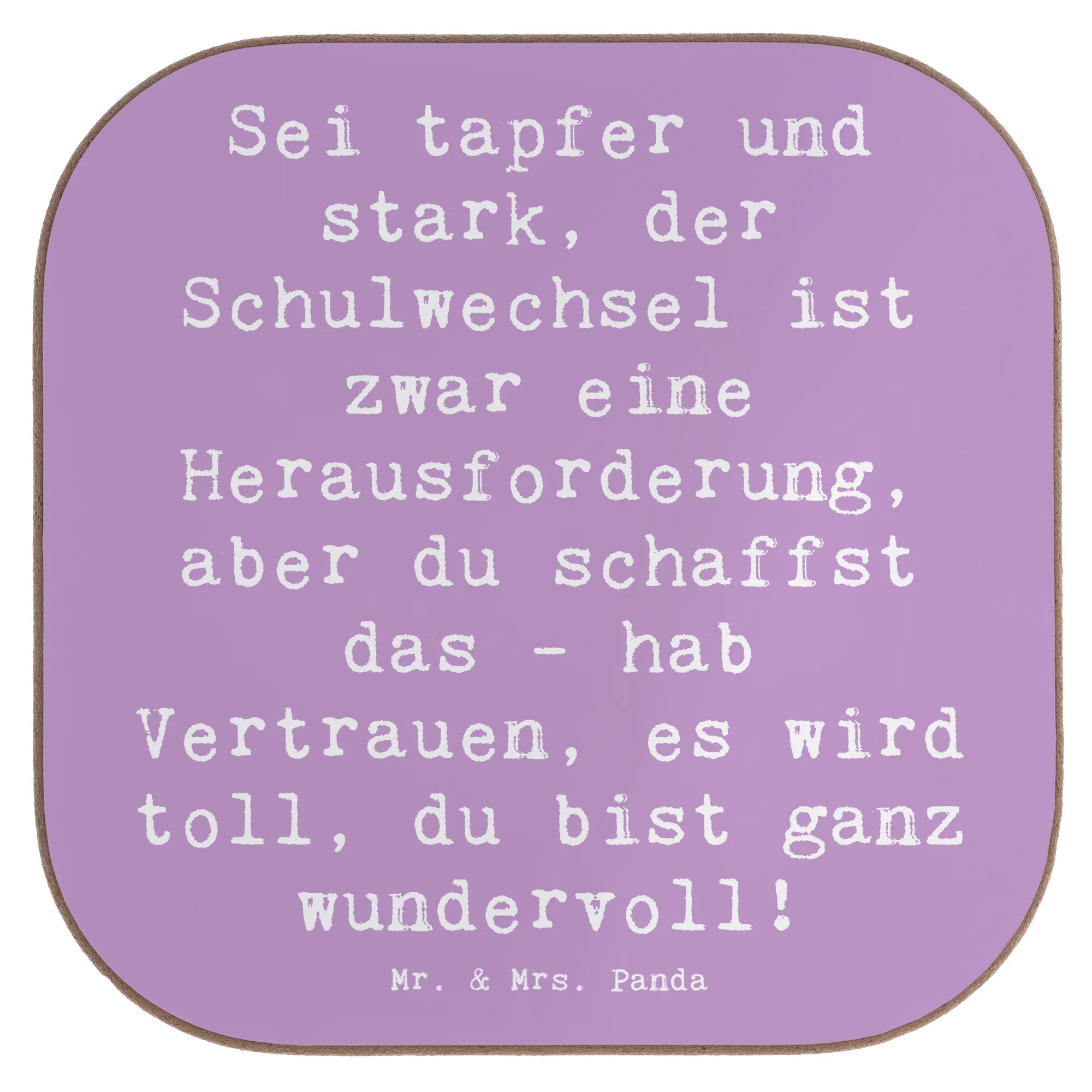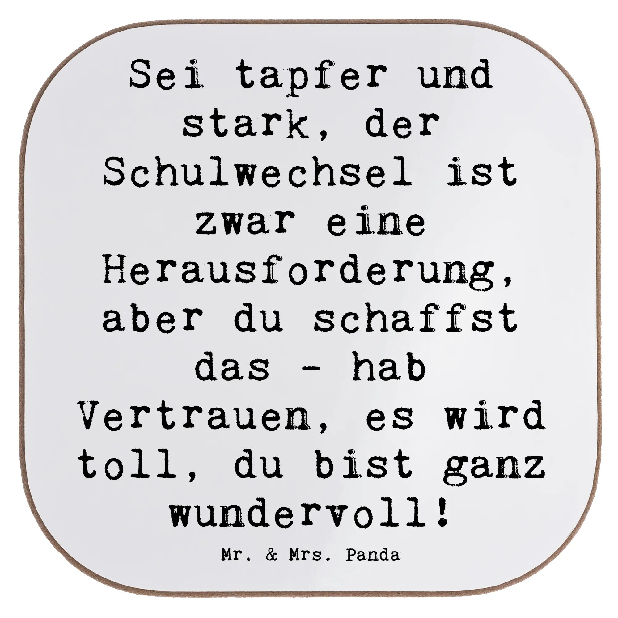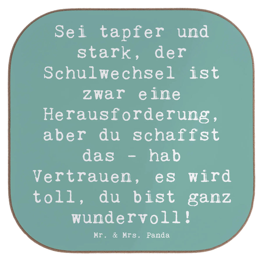 Square coaster Saying Sei tapfer und stark, der Schulwechsel ist zwar – Mr. & Mrs. Panda