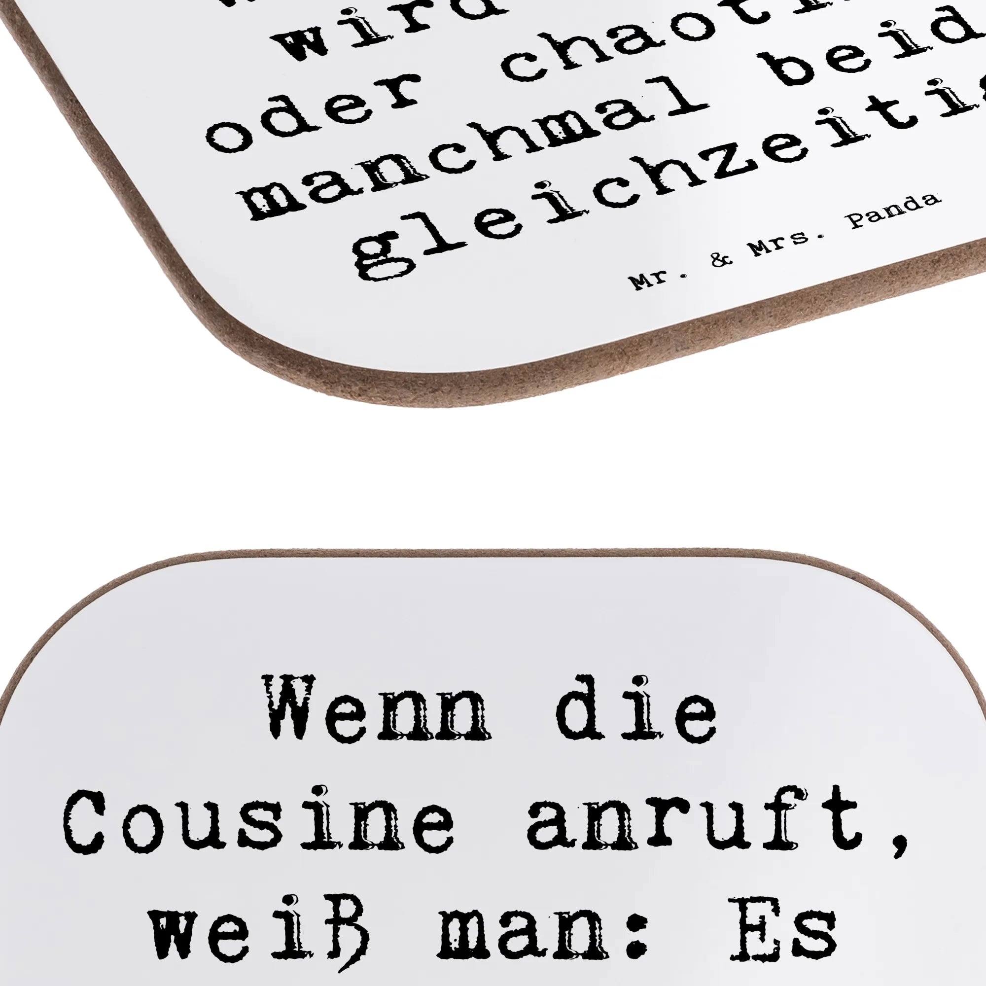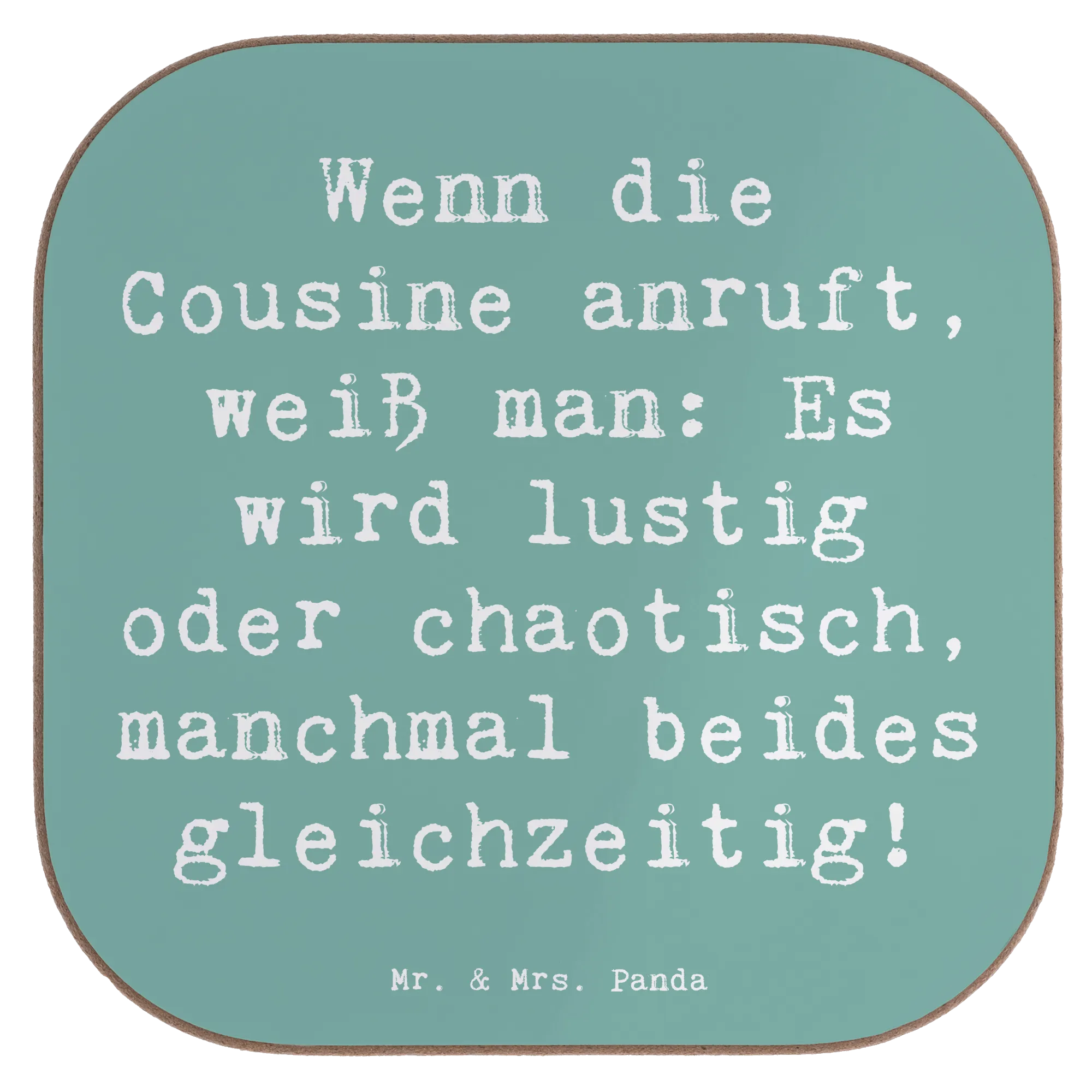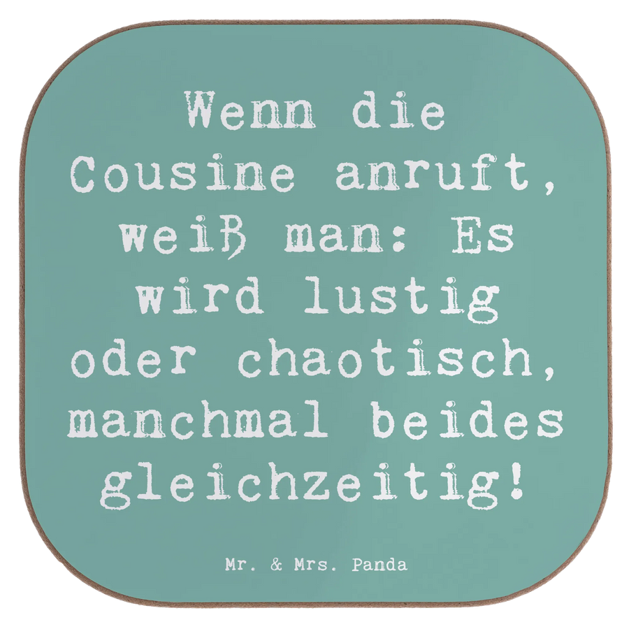 Square coaster Saying Wenn die Cousine anruft, weiß man: Es wird lustig oder chaotisch, manchmal beides gleichzeitig! - Sea Breeze