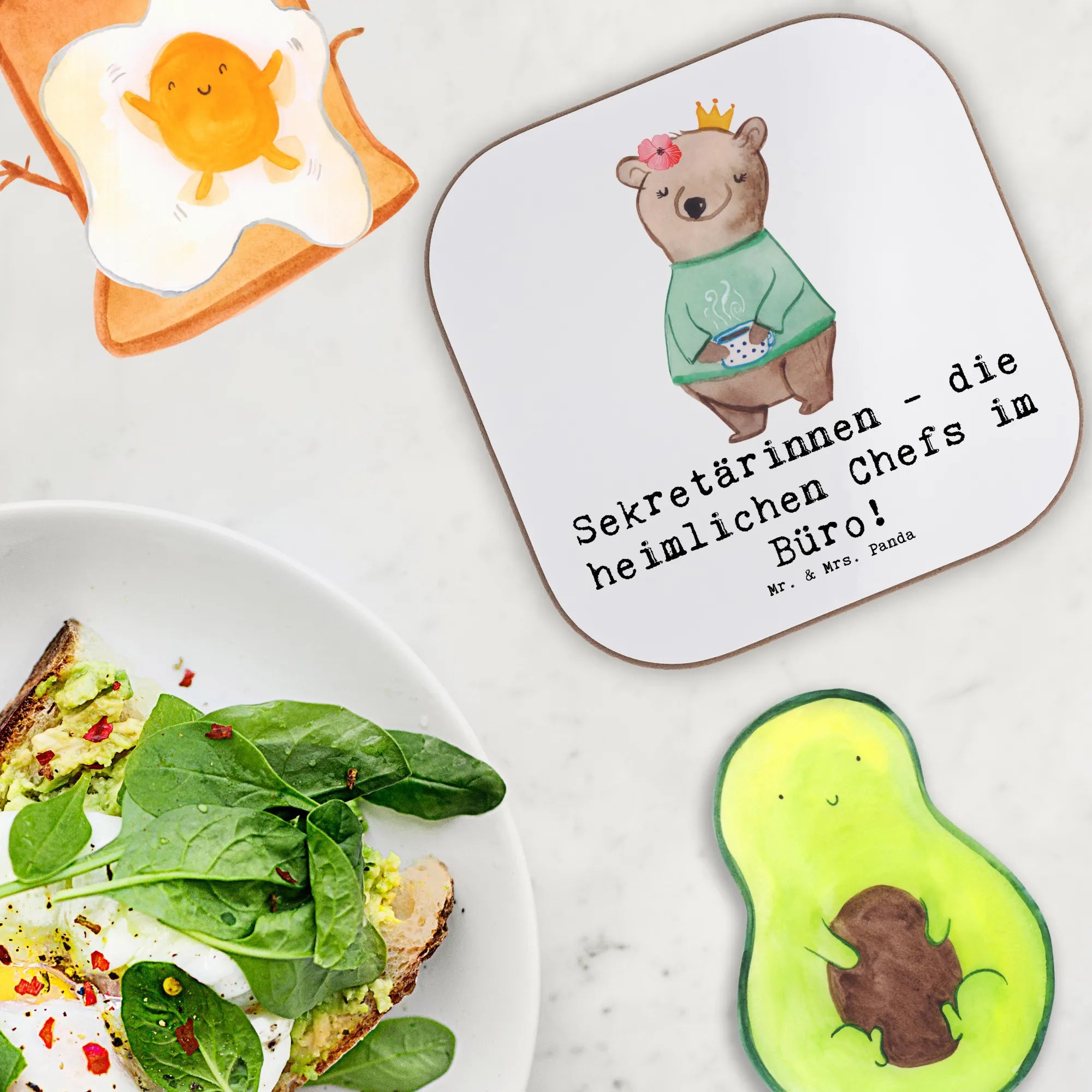 Square coaster Sekretärinnen - die heimlichen Chefs im Büro! - with a saying - White