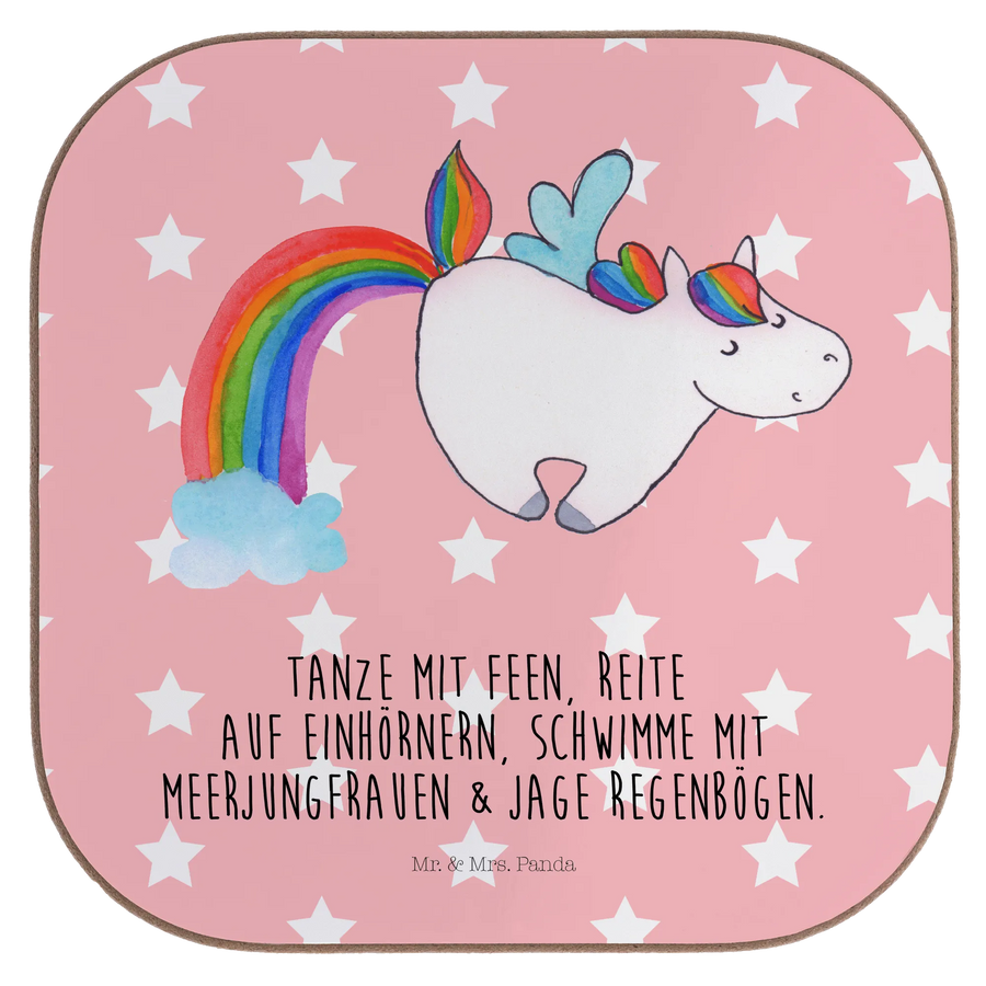 Square coaster unicorn Pegasus - with saying - Pastel Red