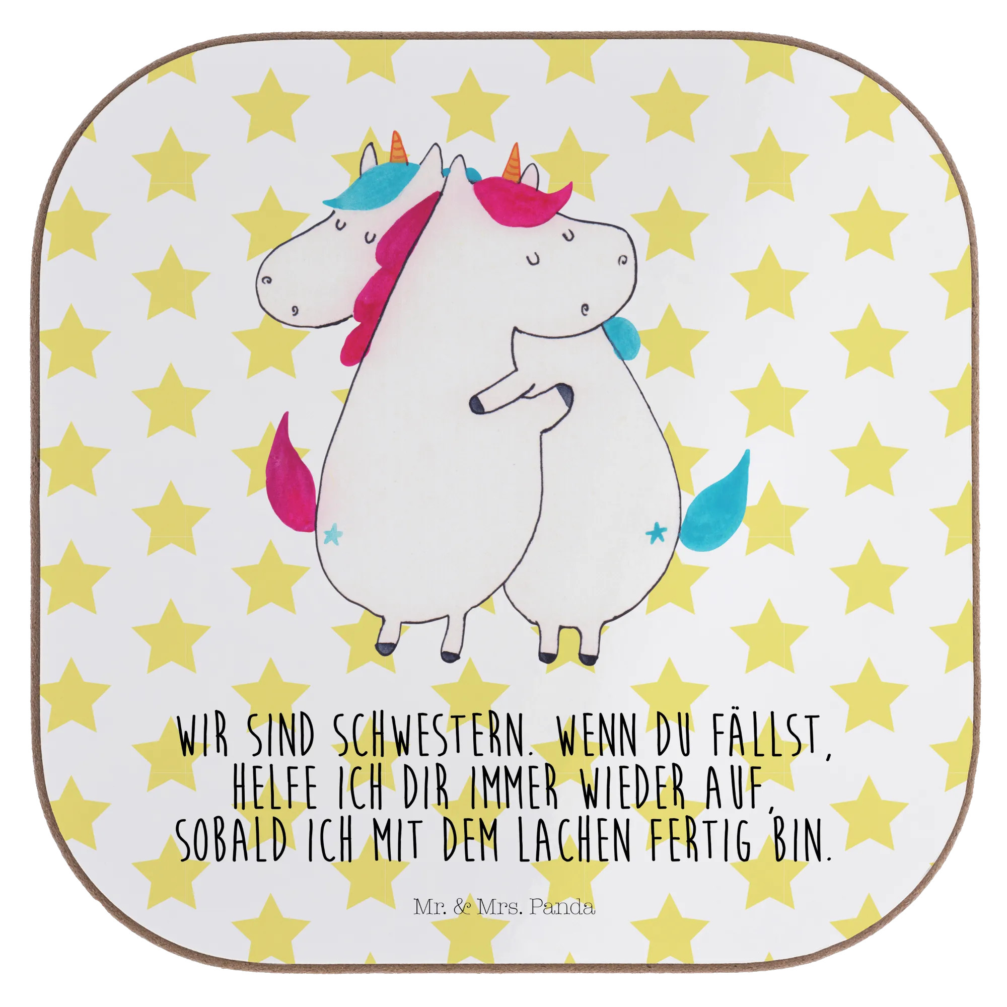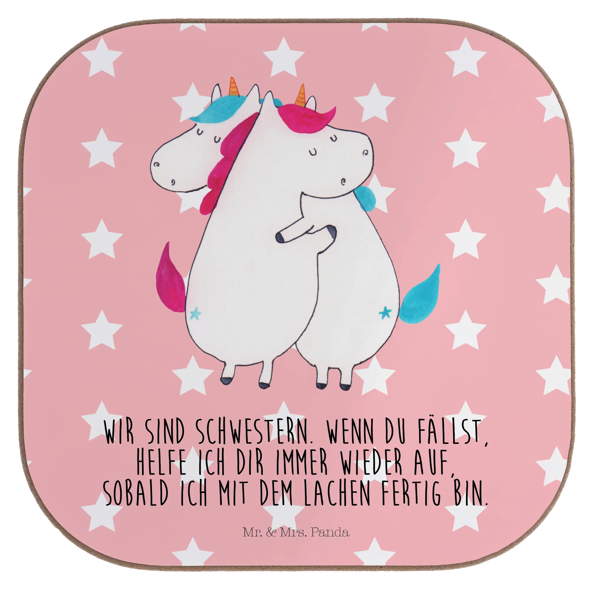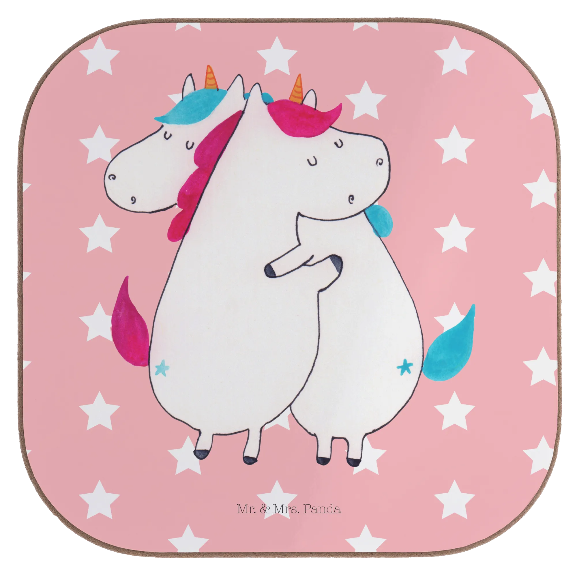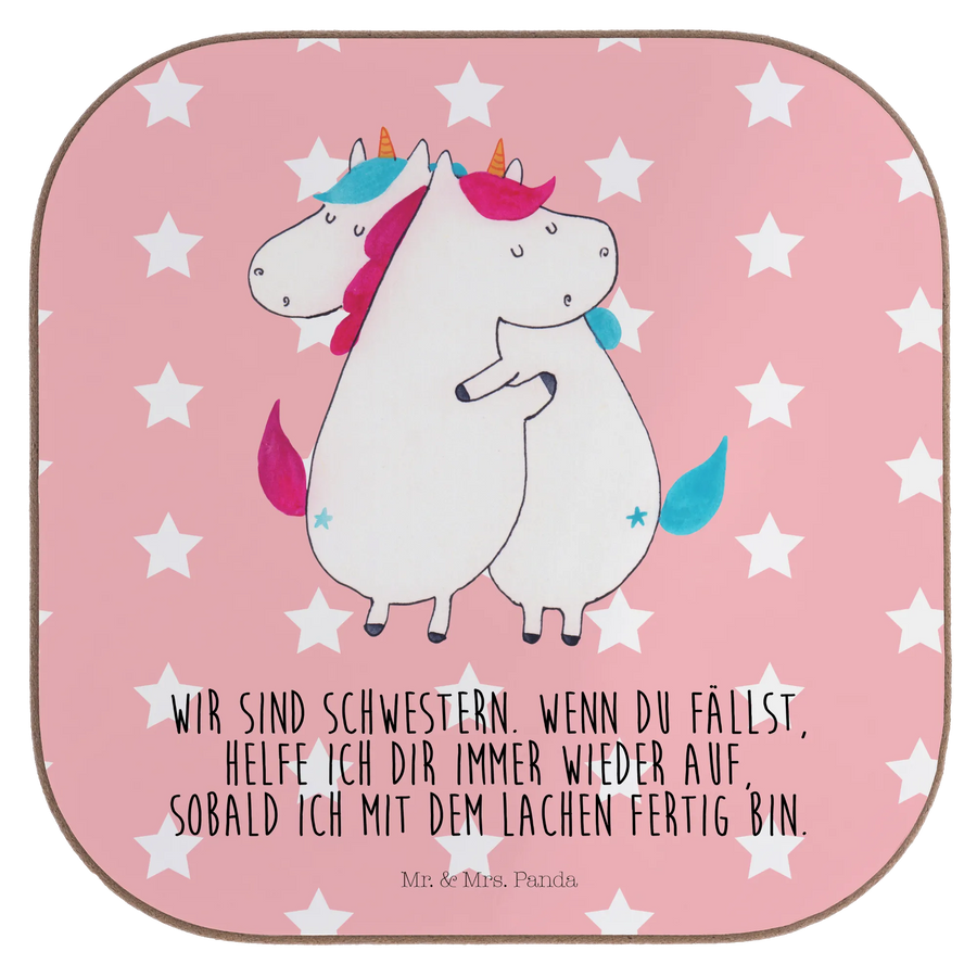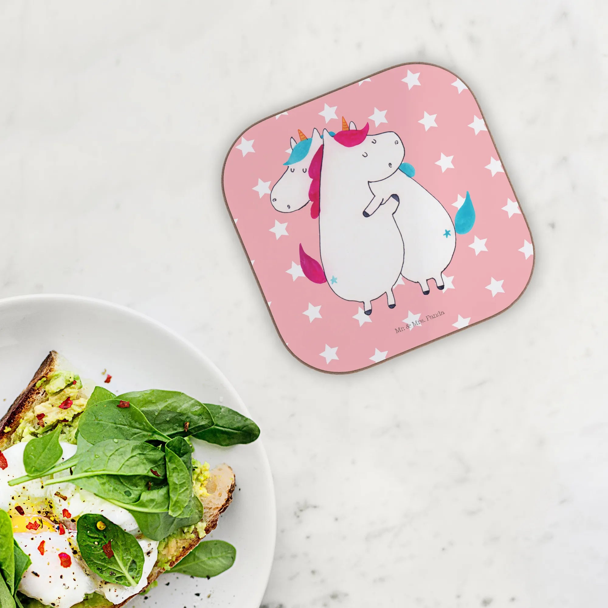 Square coaster unicorns Embrace - with a saying - Pastel Red