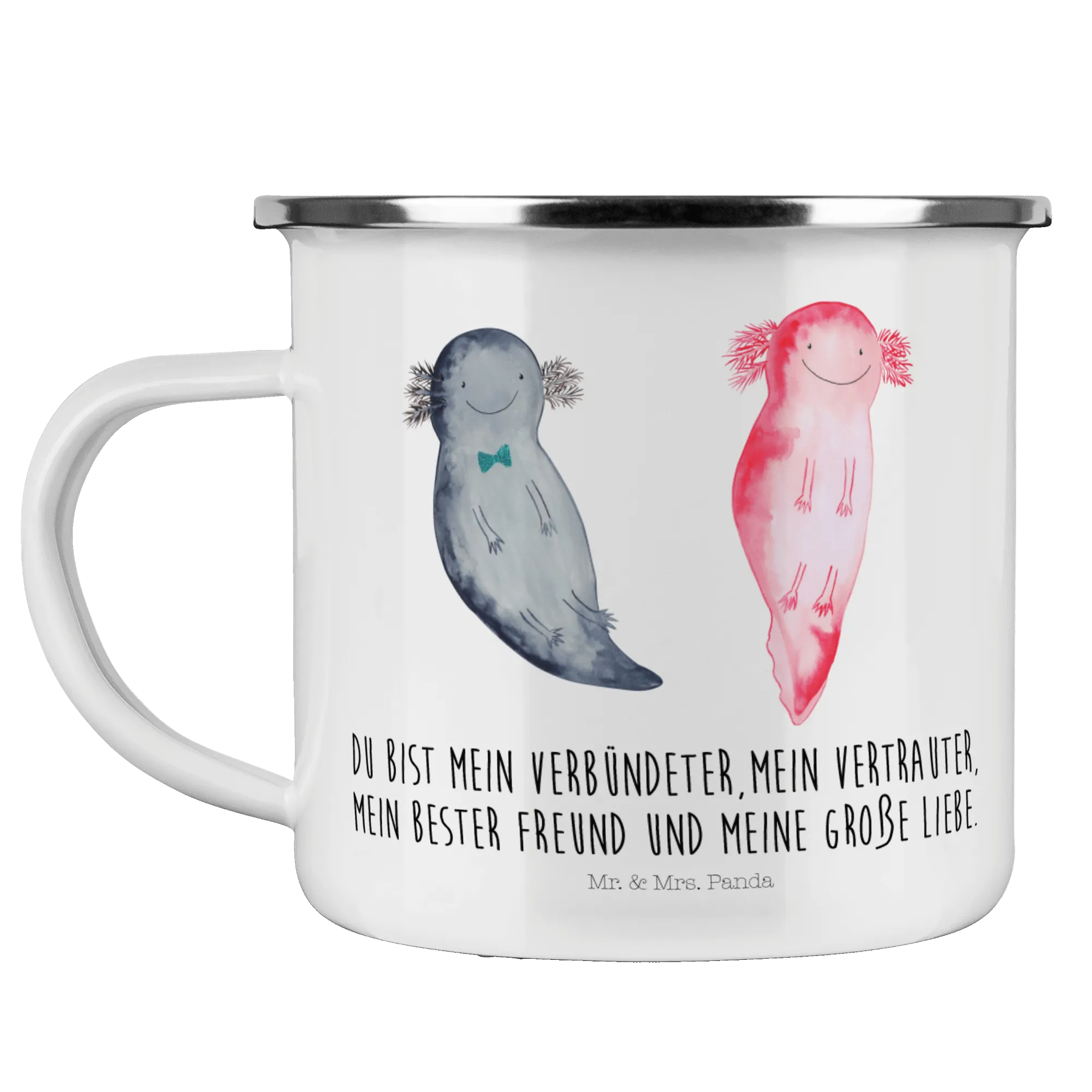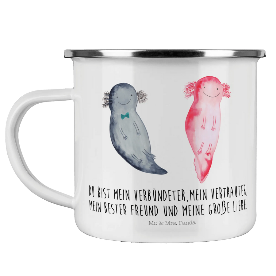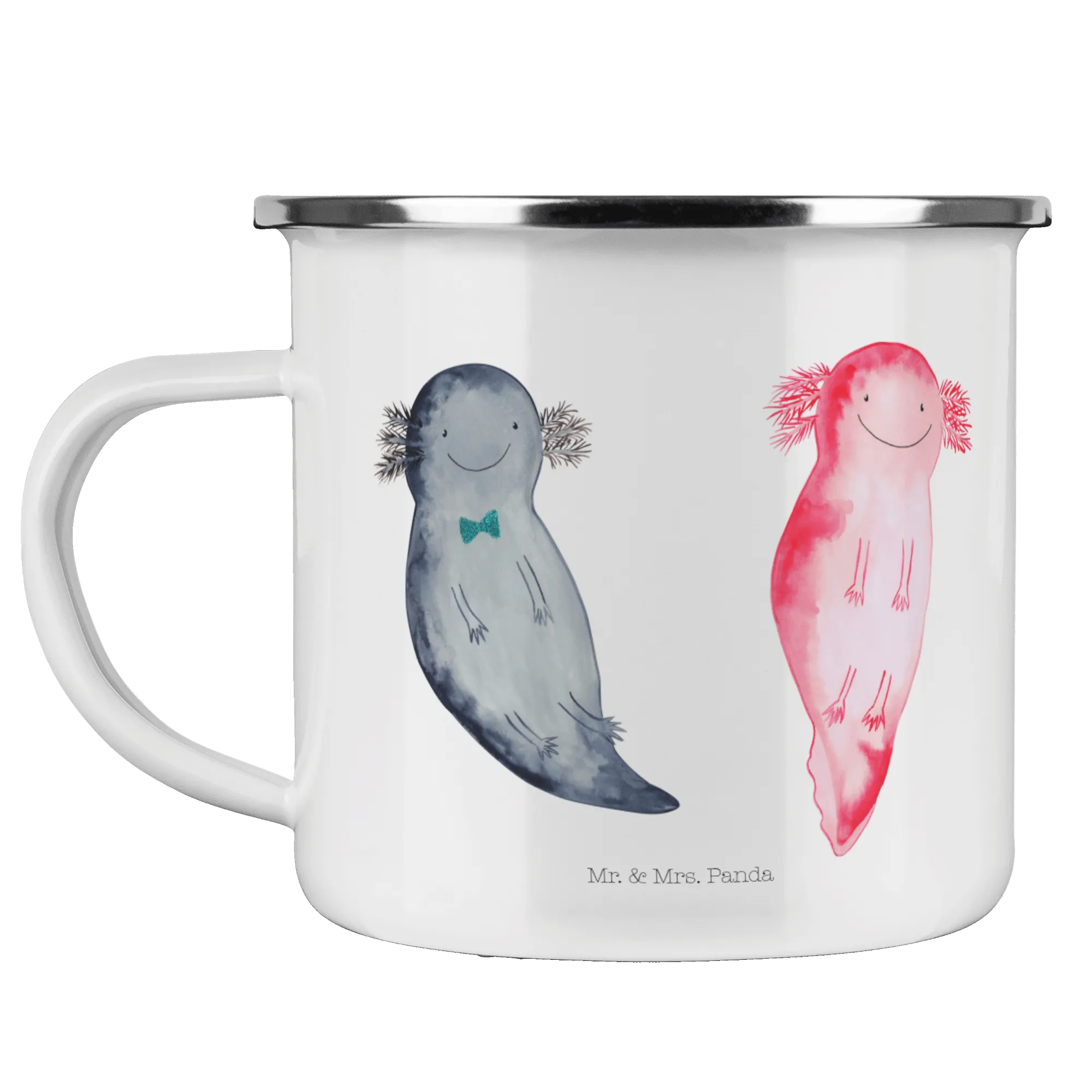 Looking for the perfect gift for that special someone who loves adventure and quirky creatures? Meet our enchanting Enamel Camping Mug featuring the delightful Axolotl couple from Mr. & Mrs. Panda!