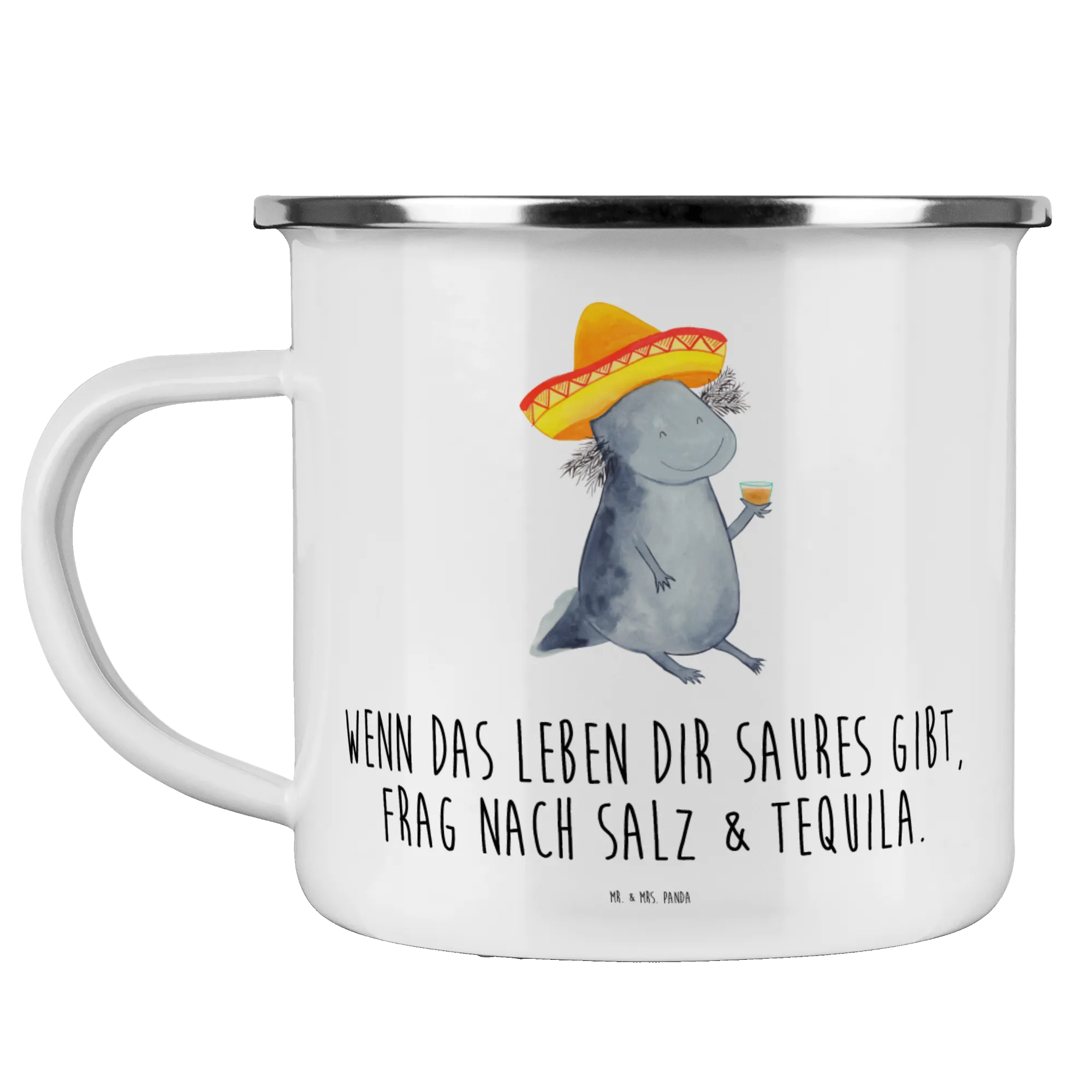 Enamel camping mug axolotl tequila - with saying - White