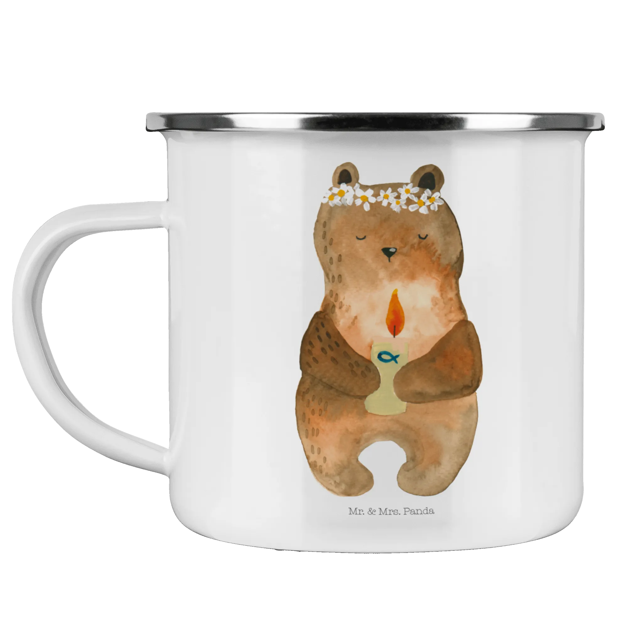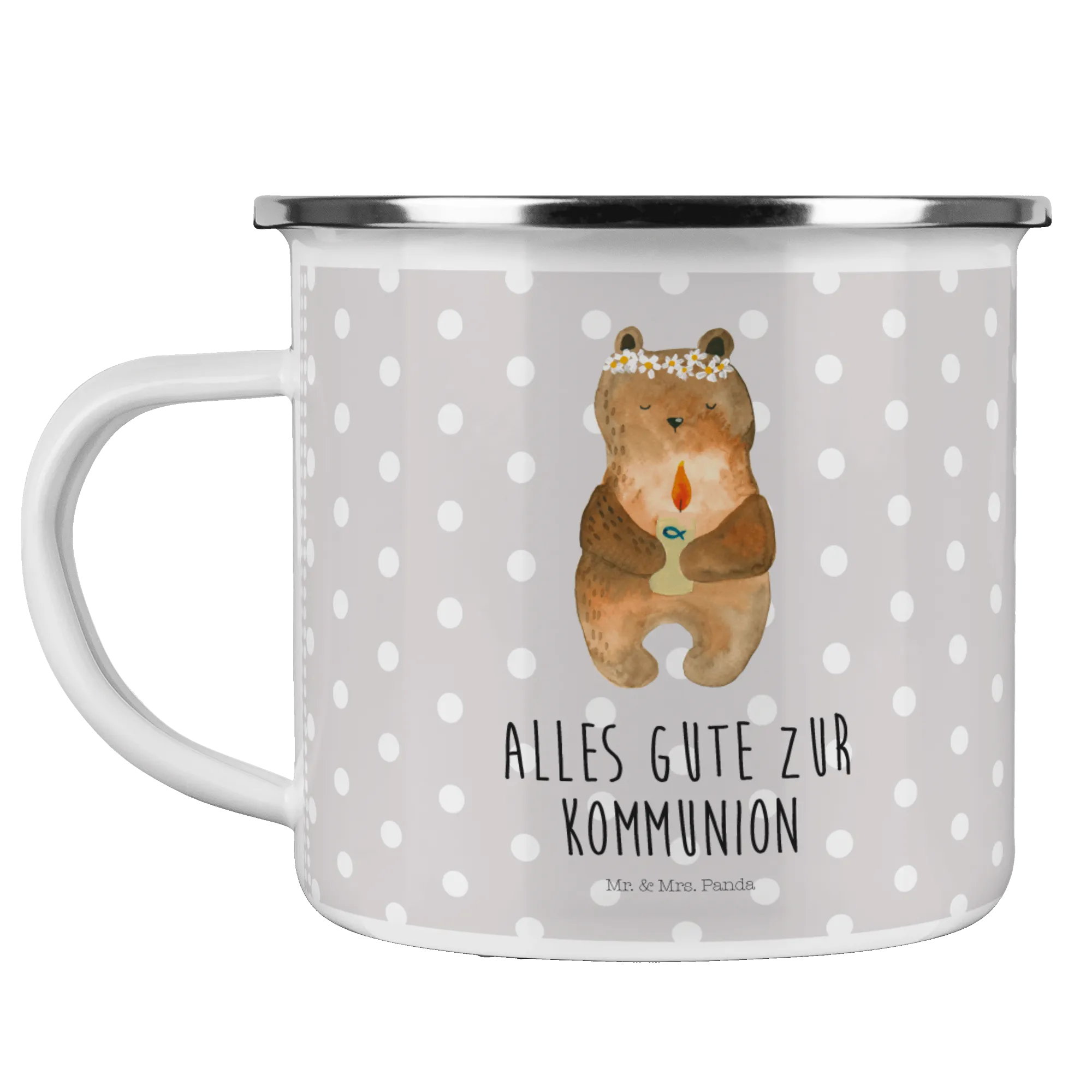 In our lovely bear collection, this enamel camping mug stands out for its adorable design and heartfelt sentiment. Each product in the Mr. & Mrs. Panda collection is crafted with care and love, ensuring you receive only the highest quality. Whether you are looking for a gift for a loved one or simply treating yourself to something special, the Communion Bear Mug makes a wonderful choice. Celebrate life and all its adventures with this charming mug by your side!