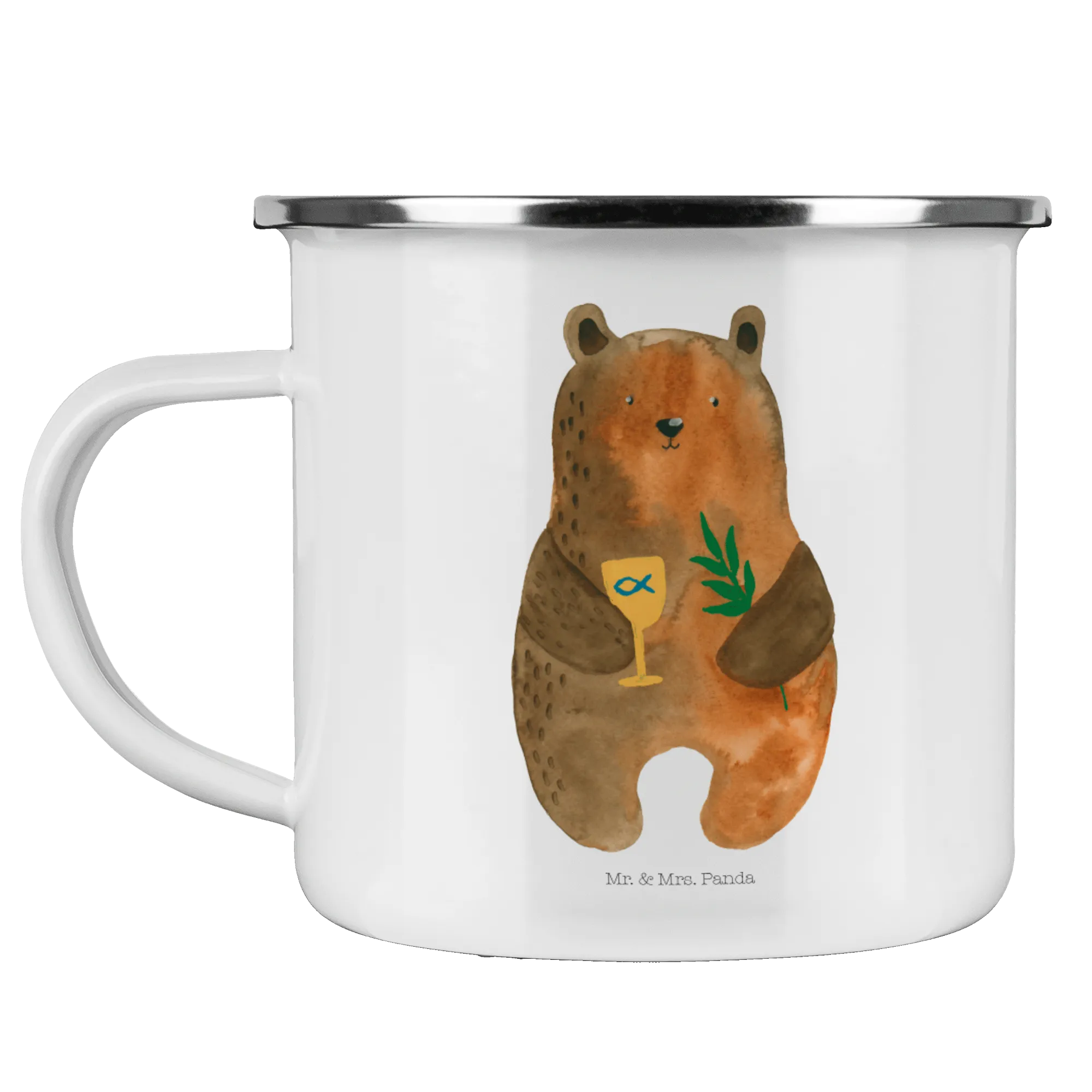 Introducing the enchanting Enamel Camping Mug featuring the delightful Confirmation Bear from our beloved Bear collection by Mr. & Mrs. Panda! This charming outdoor cup is perfect for those who are on the go, whether you're embarking on an adventure in the great outdoors or simply enjoying a tranquil evening by the campfire. Each sip you take will remind you of the precious moments spent celebrating important milestones like confirmations, as this mug showcases a sweet bear joyfully holding a golden chalice in one paw and a branch in the other. It’s designed to make your camping experience even more special!