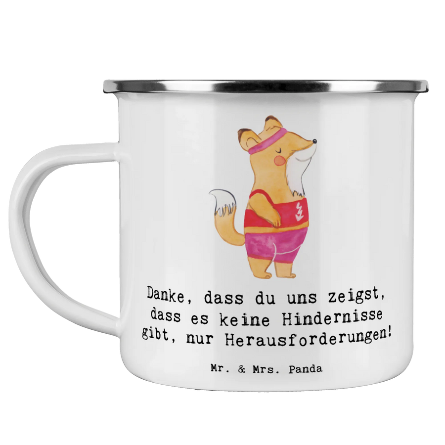 Enamel camping mug Danke, dass du uns zeigst, dass es keine Hindernisse gibt, nur Herausforderungen! - White