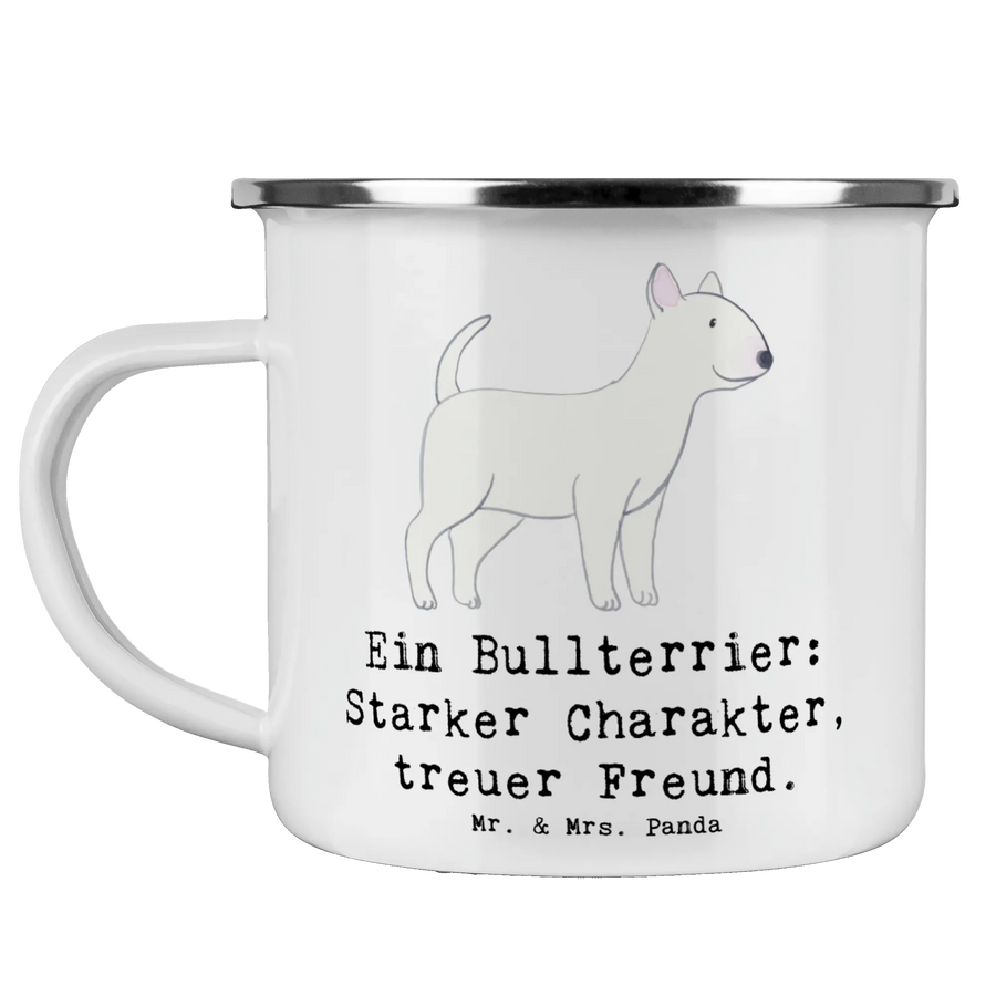 Enamel camping mug Ein Bullterrier: Starker Charakter, treuer Freund. – Mr. & Mrs. Panda