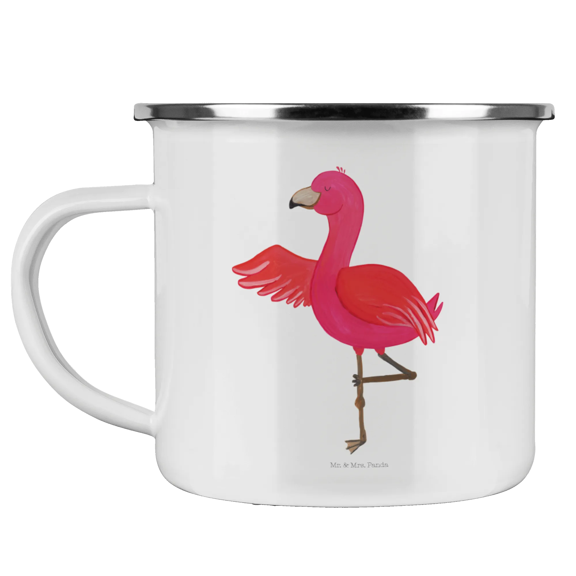 Enamel camping mug flamingo yoga - mit Spruch - White