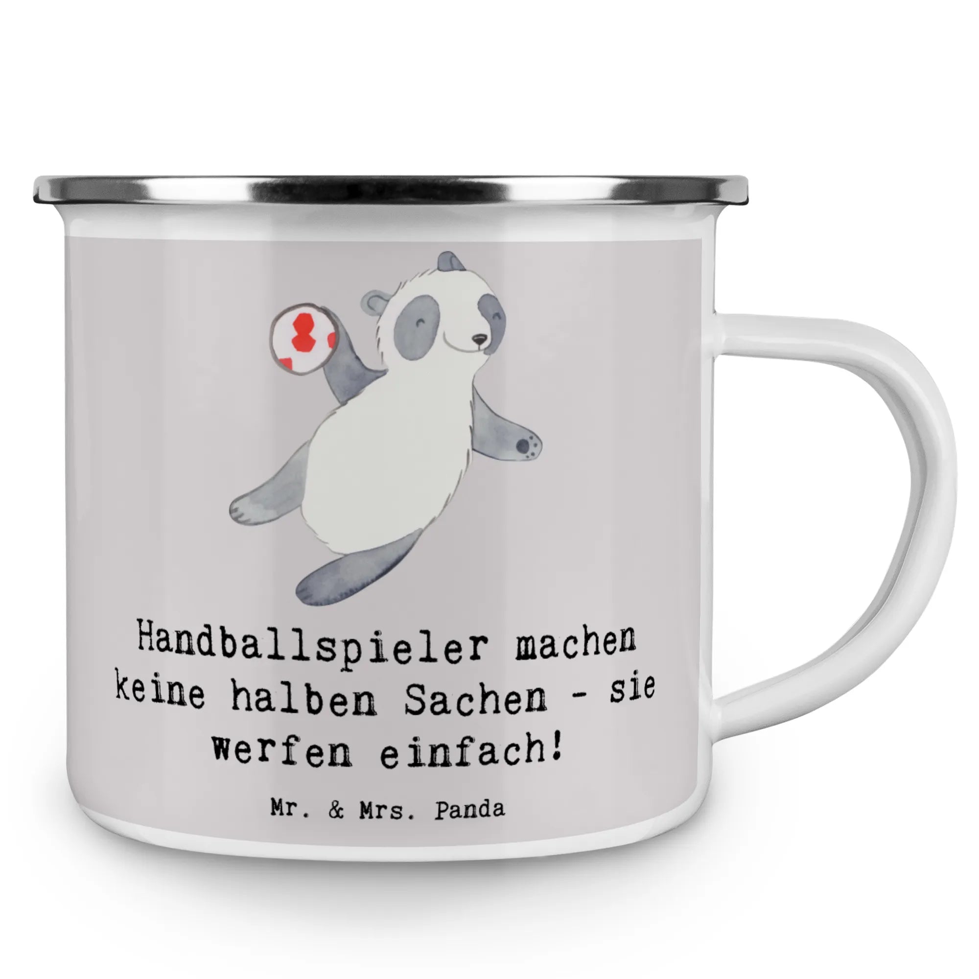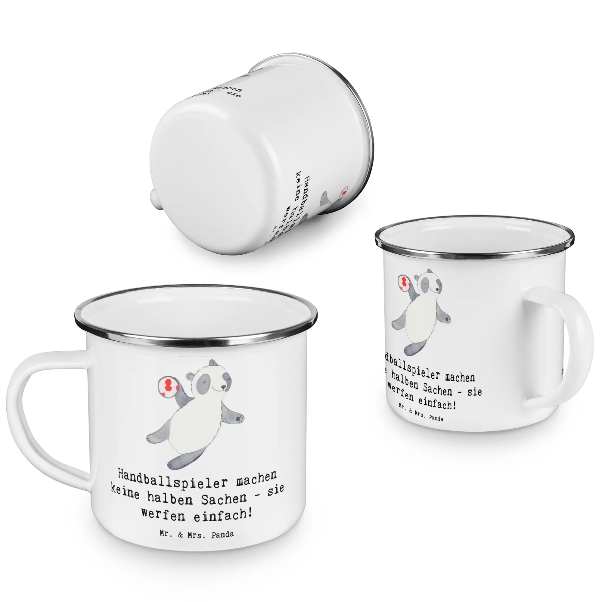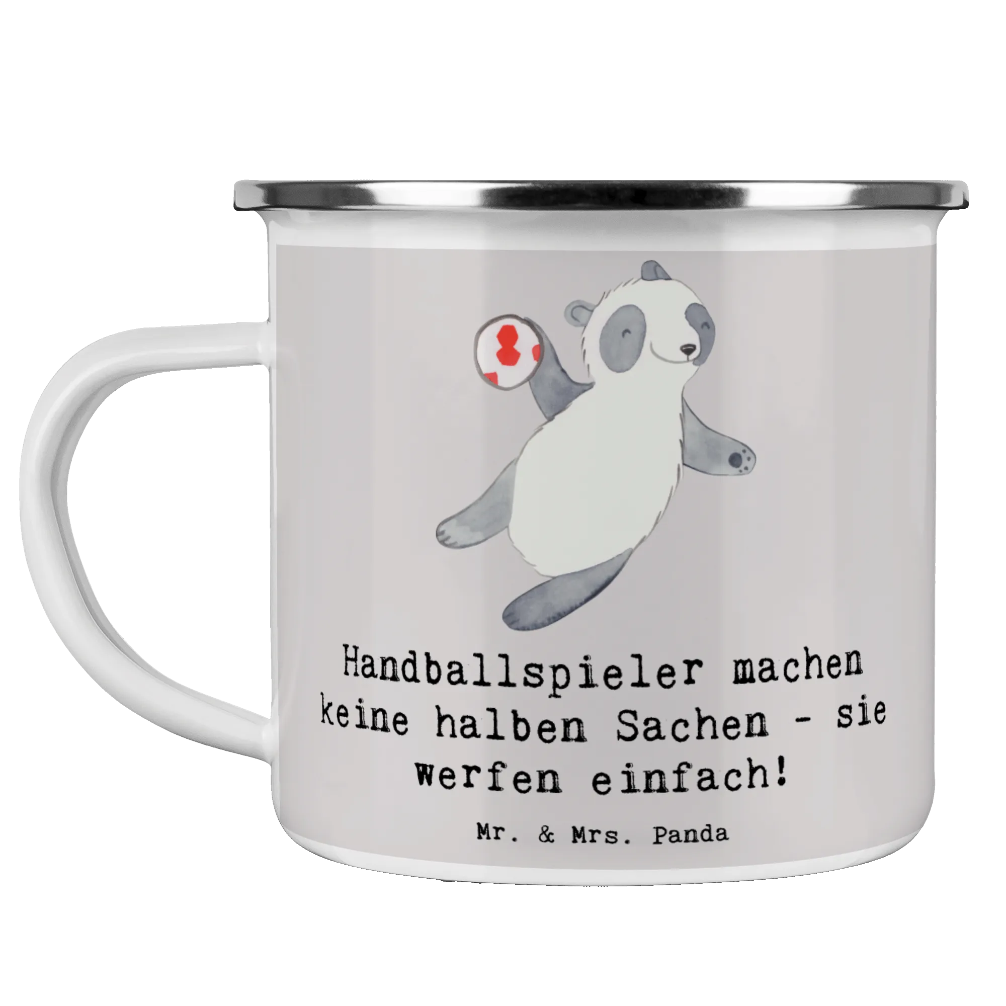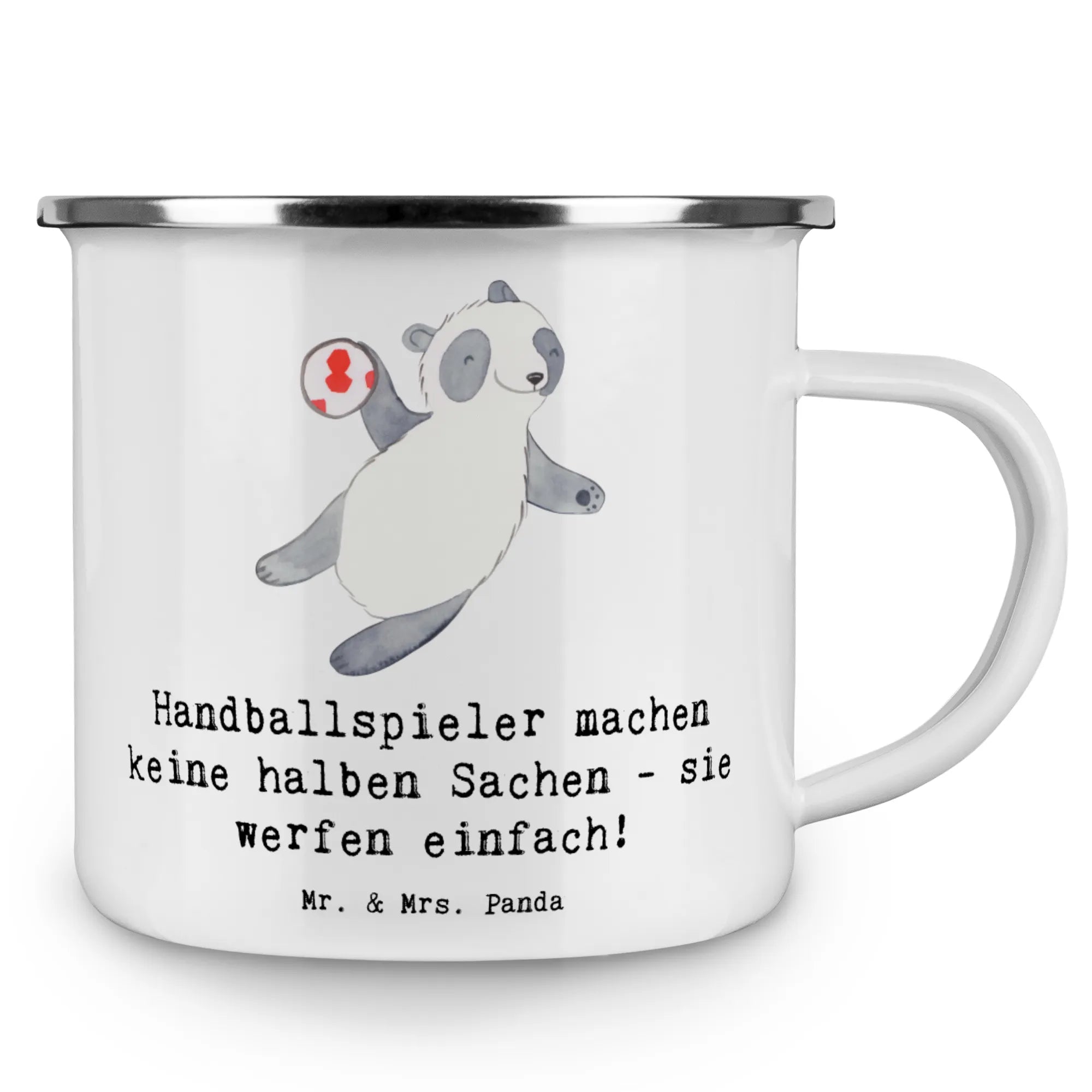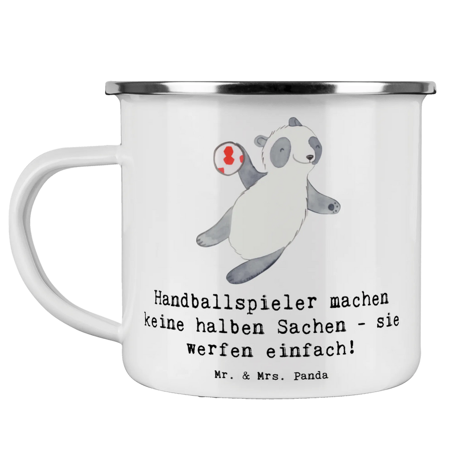 Enamel camping mug Handballspieler machen keine halben Sachen - sie werfen einfach! - White