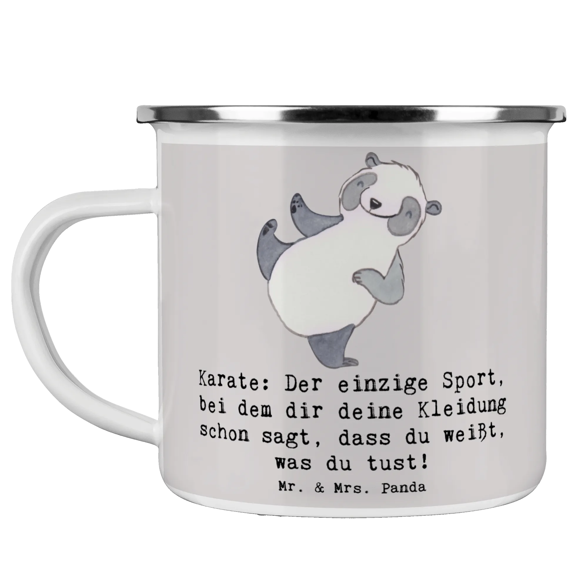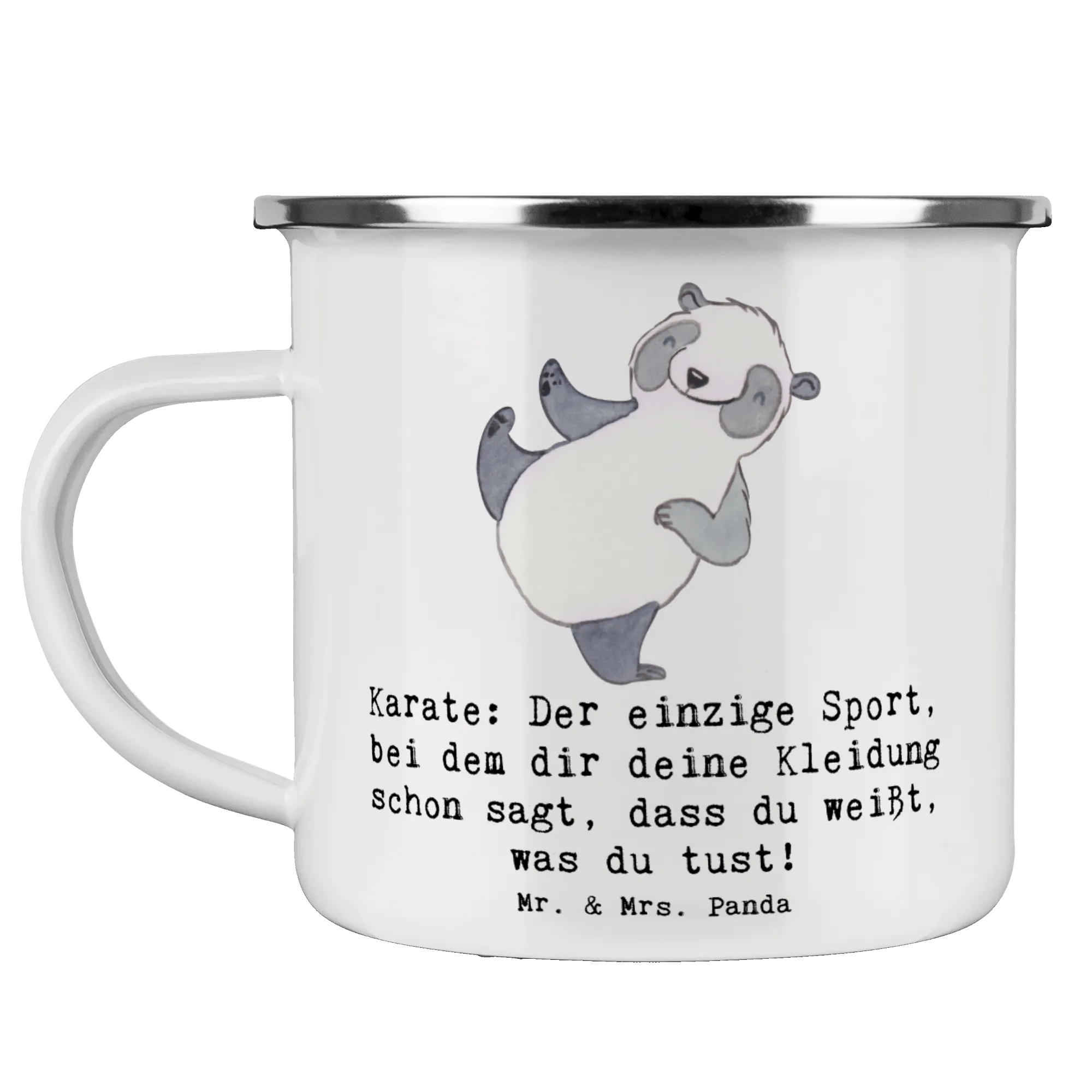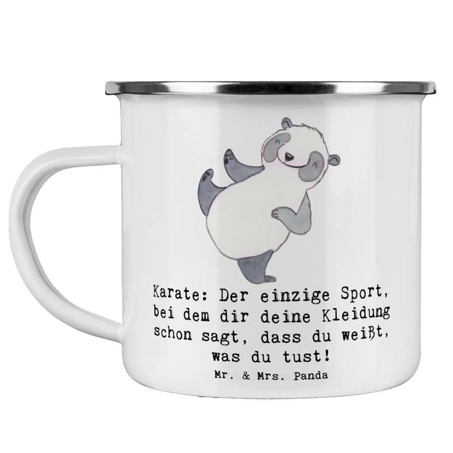 Enamel camping mug Karate: Der einzige Sport, bei dem dir deine Kleidung schon sagt, dass du weißt, was du tust! - White