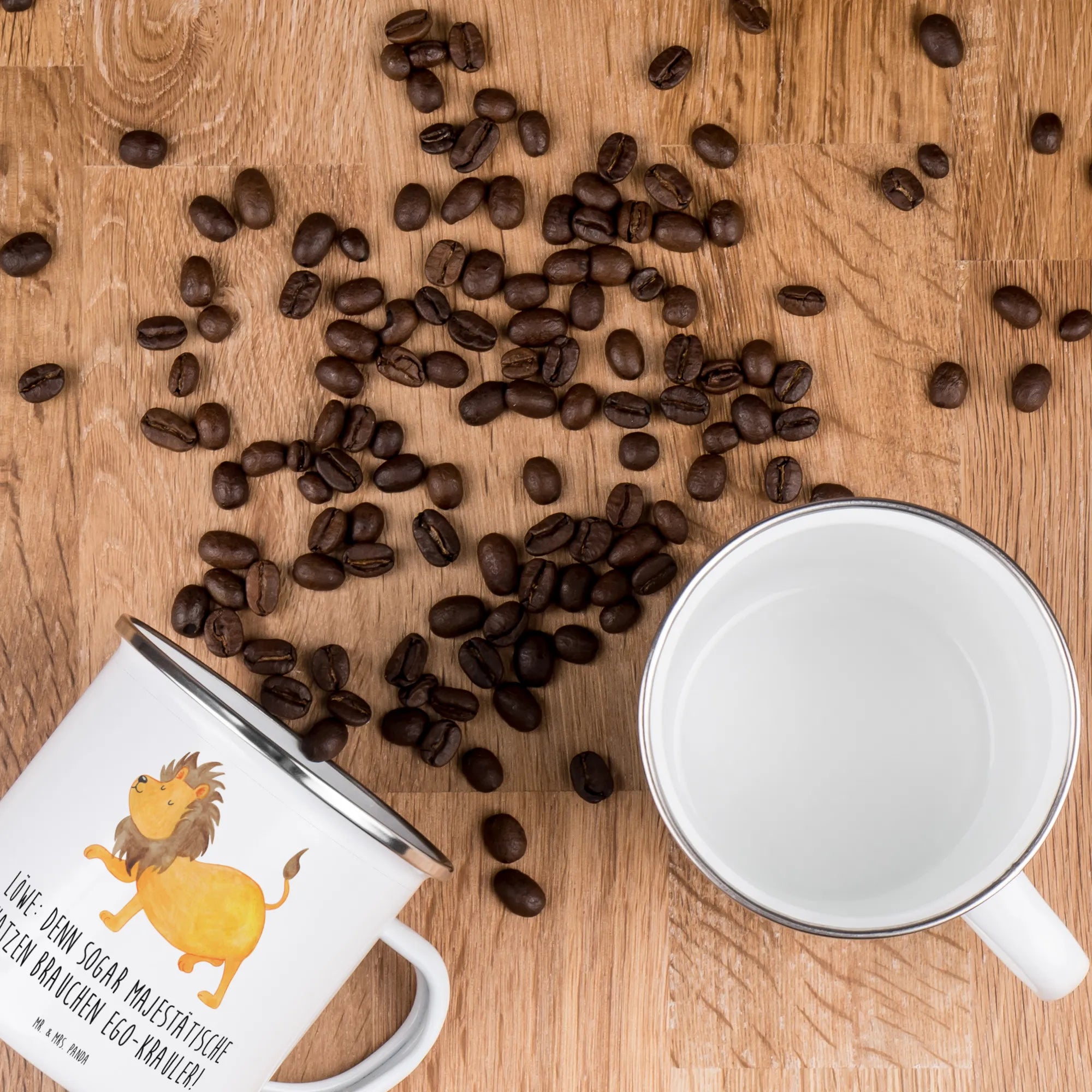Enamel camping mug Löwe: Denn sogar Majestätische Katzen brauchen Ego-Krauler!