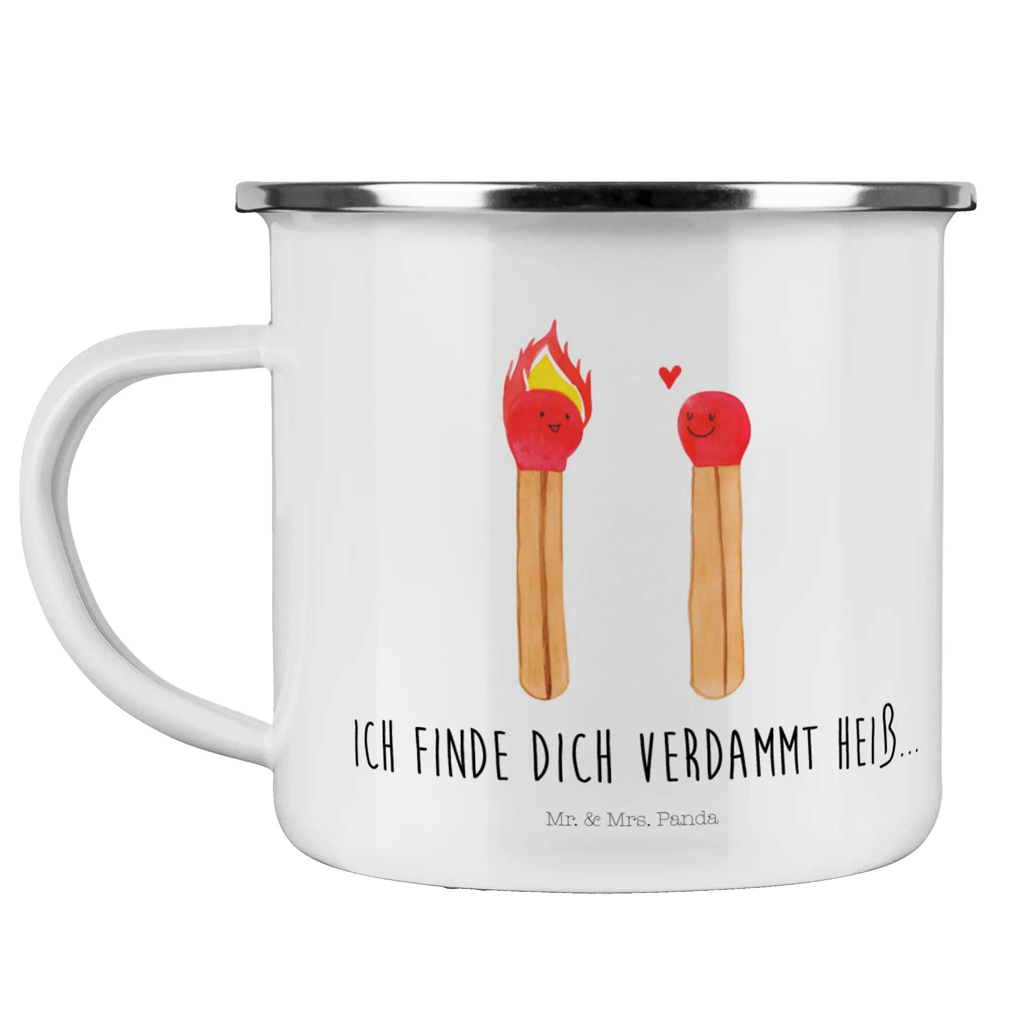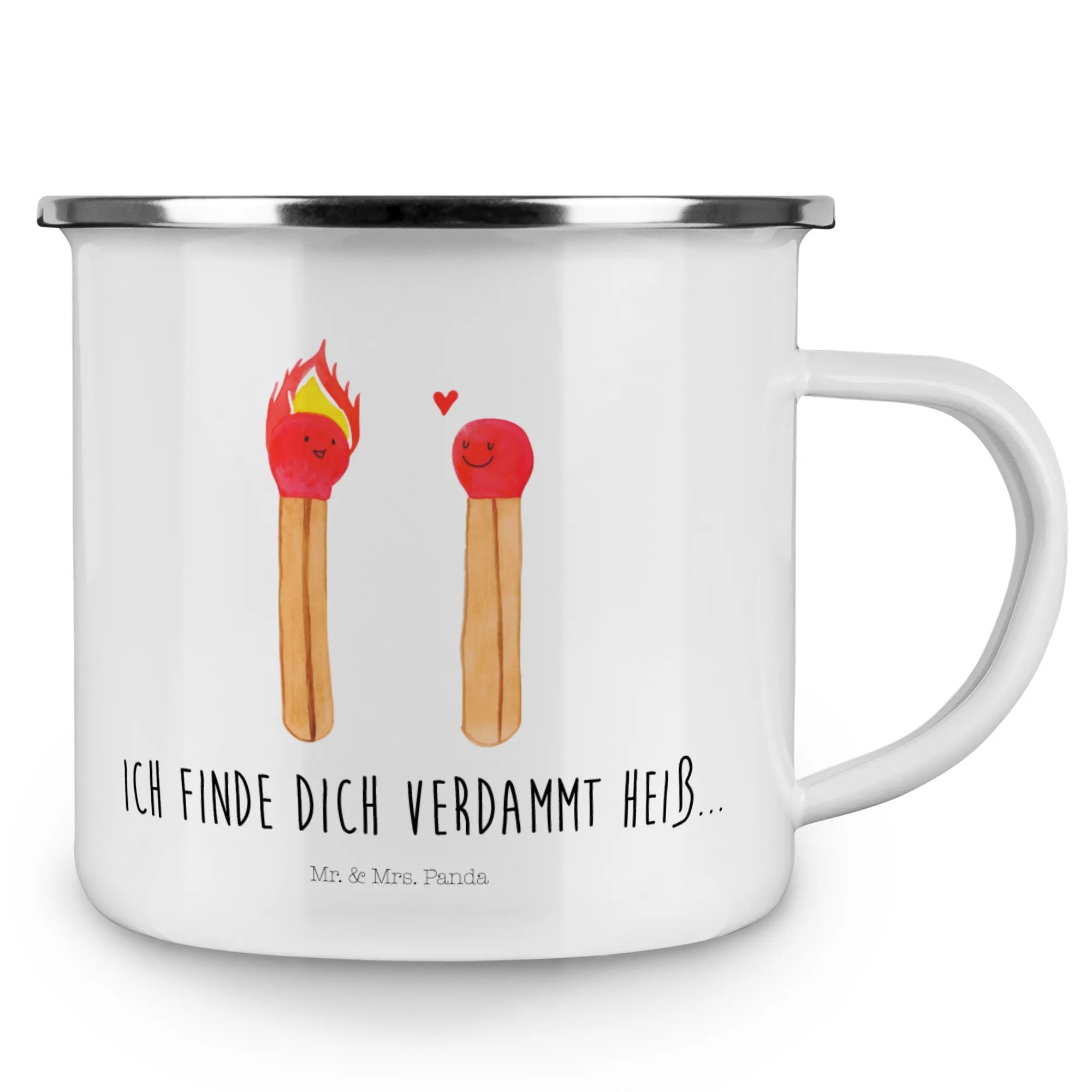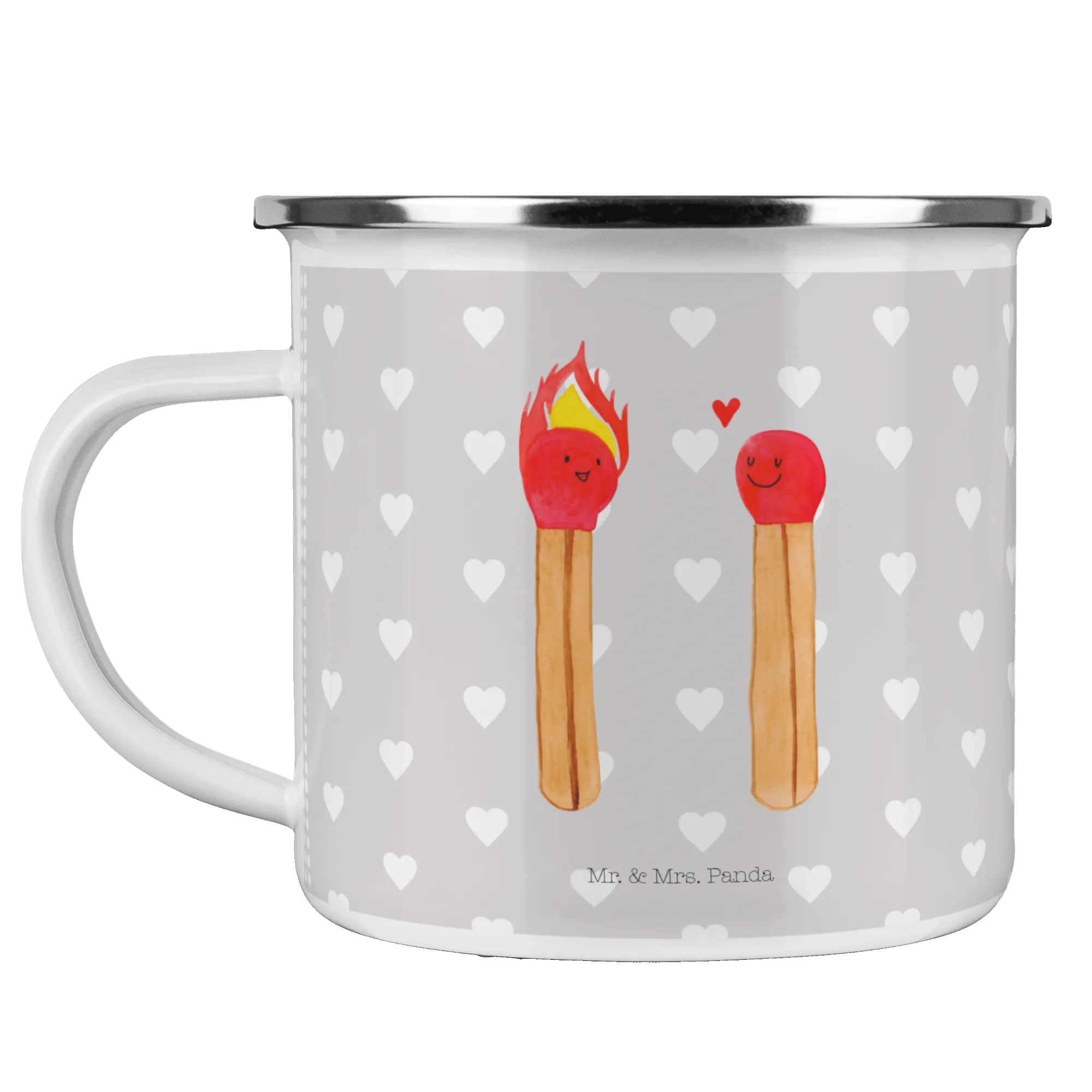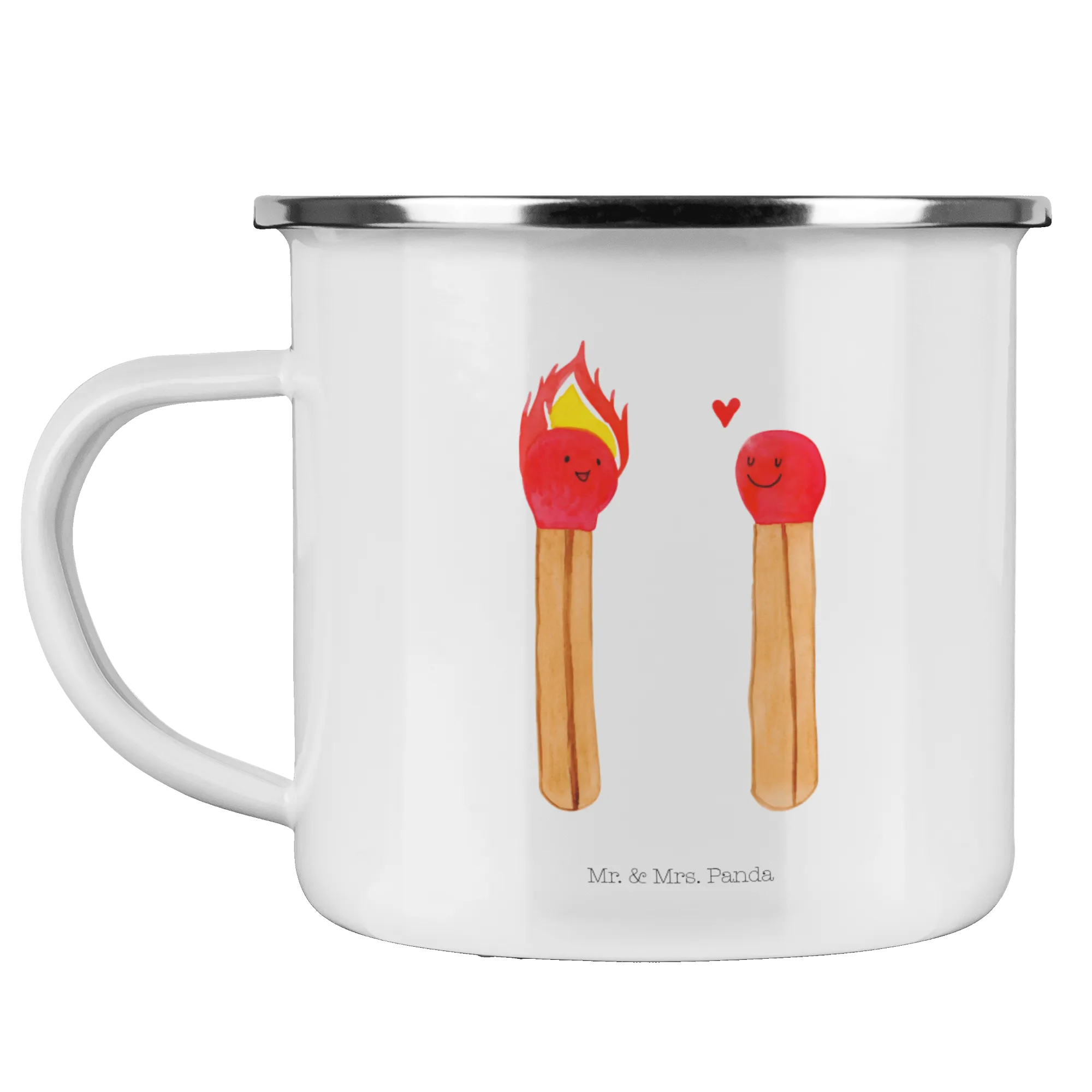 Introducing the lovely Enamel Camping Mug "Matches" from the adorable Love collection by Mr. & Mrs. Panda! This isn't just any ordinary camping mug; it is a charming and playful representation of love, making it the perfect gift for everyone in your life who holds a special place in their heart.