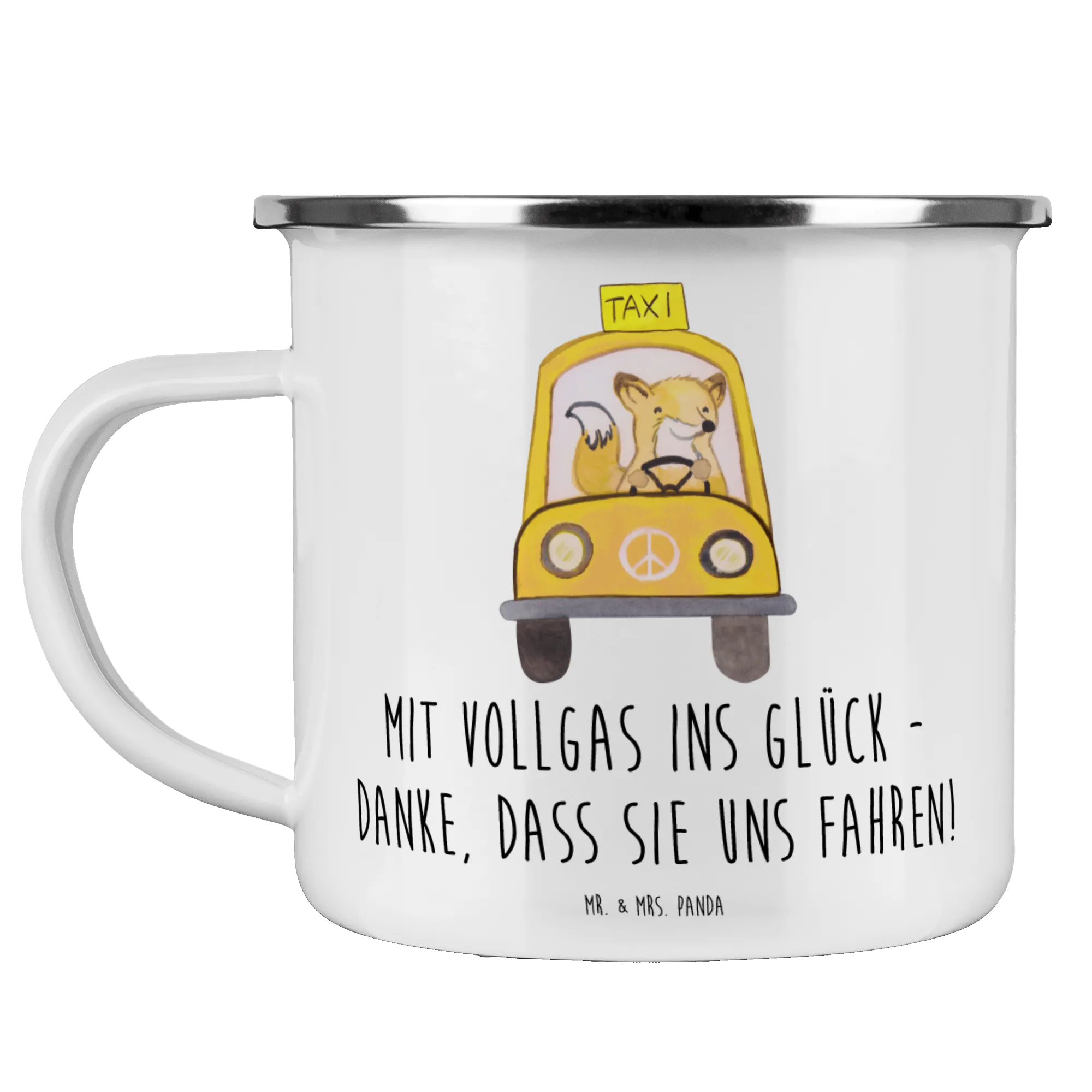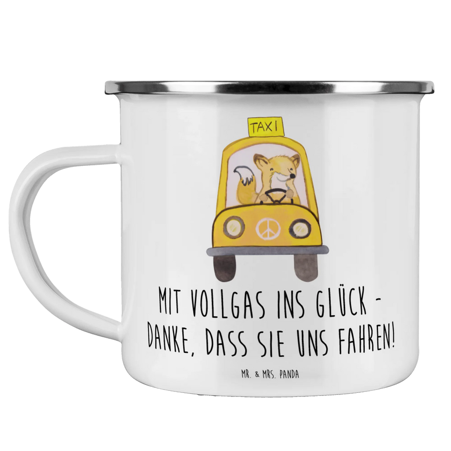 Enamel camping mug Mit Vollgas ins Glück - Danke, dass Sie uns fahren!