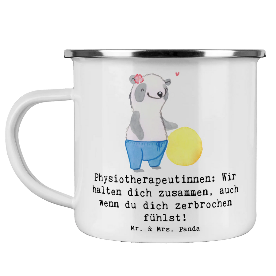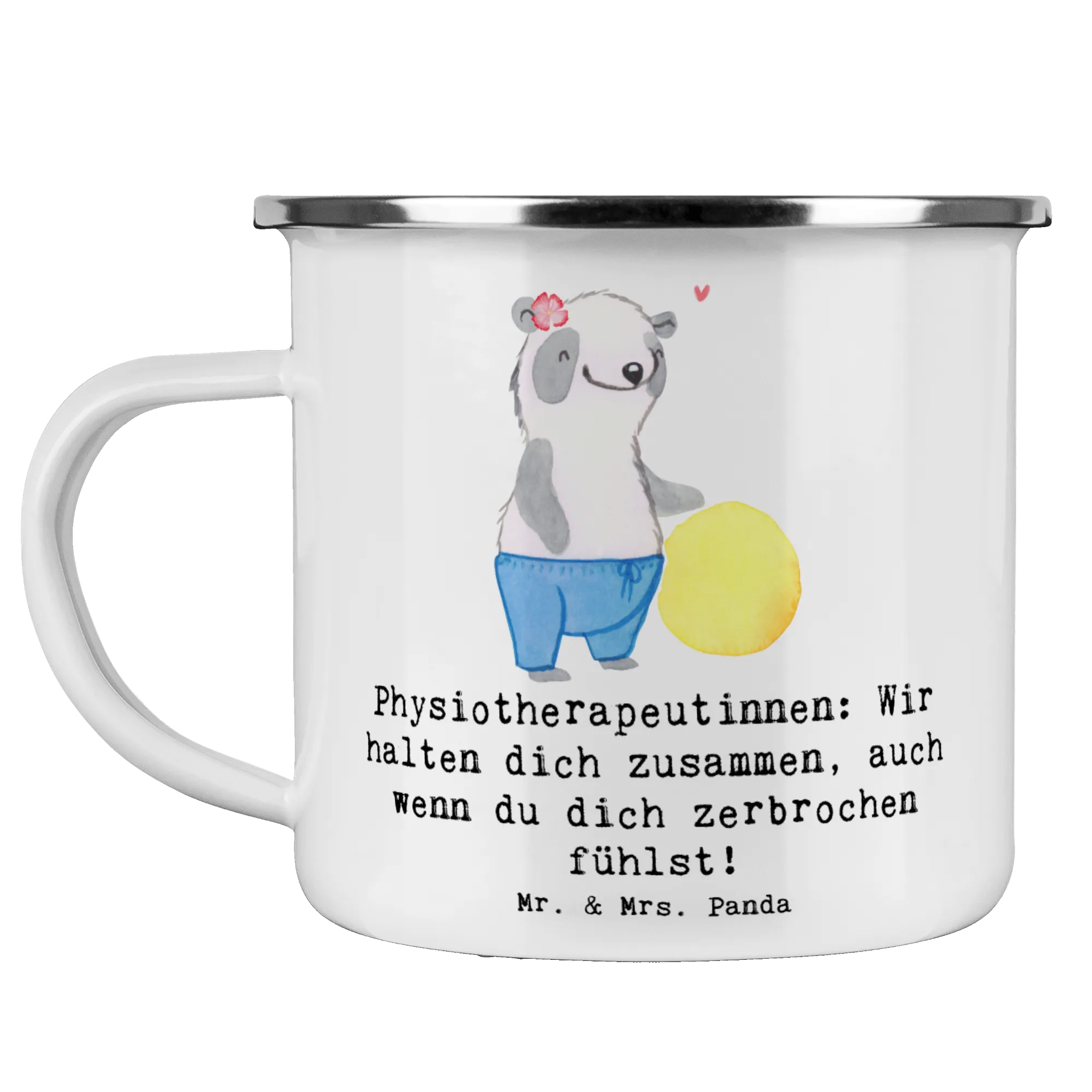 Enamel camping mug Physiotherapeutinnen: Wir halten dich zusammen, auch wenn du dich zerbrochen fühlst! - White