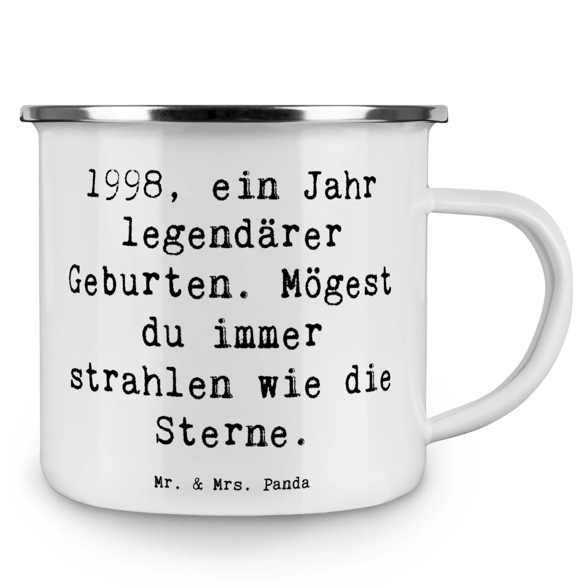 Enamel camping mug Saying 1998, ein Jahr legendärer Geburten. Mögest du immer strahlen wie die Sterne.