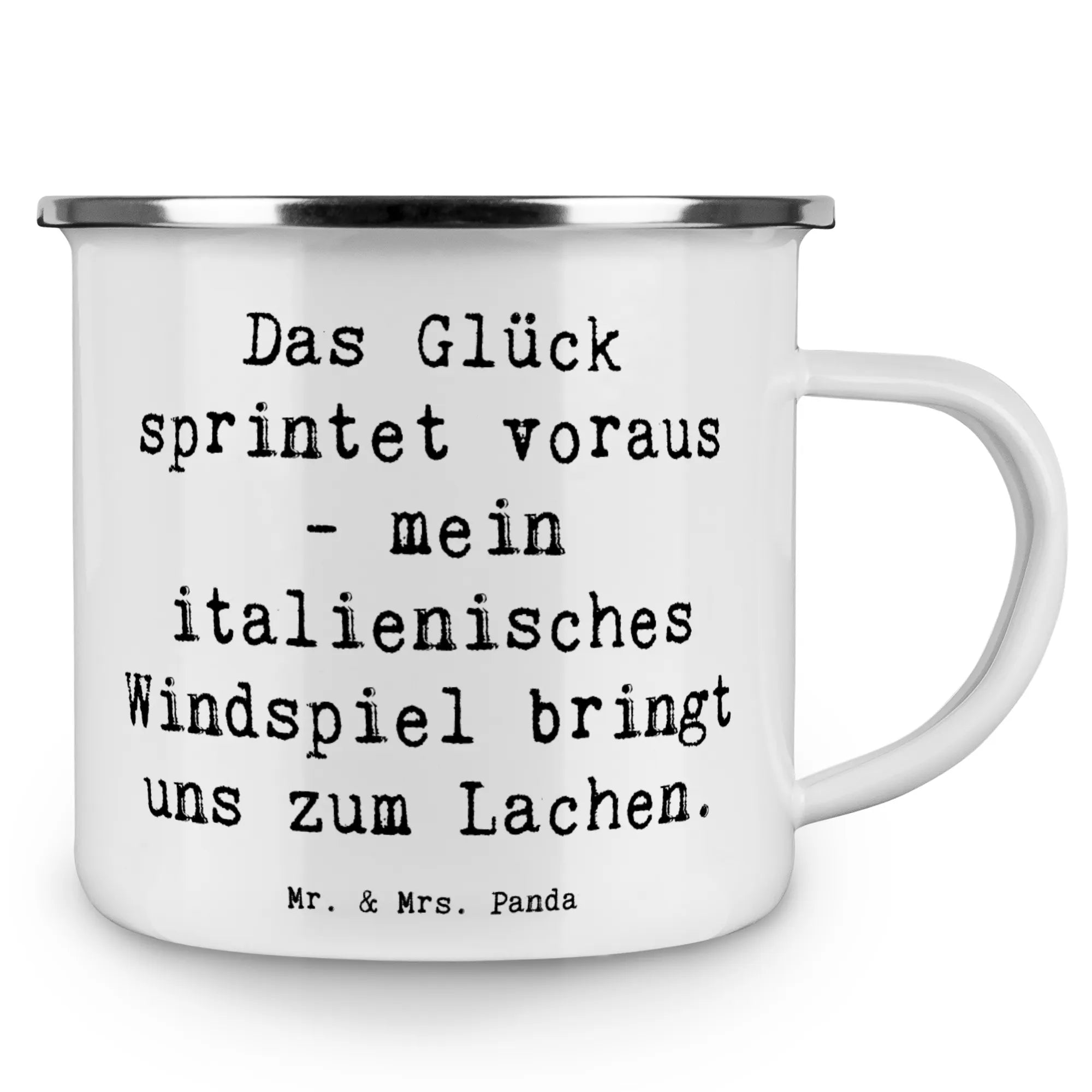 Enamel camping mug Saying Das Glück sprintet voraus - mein italienisch – Mr. & Mrs. Panda